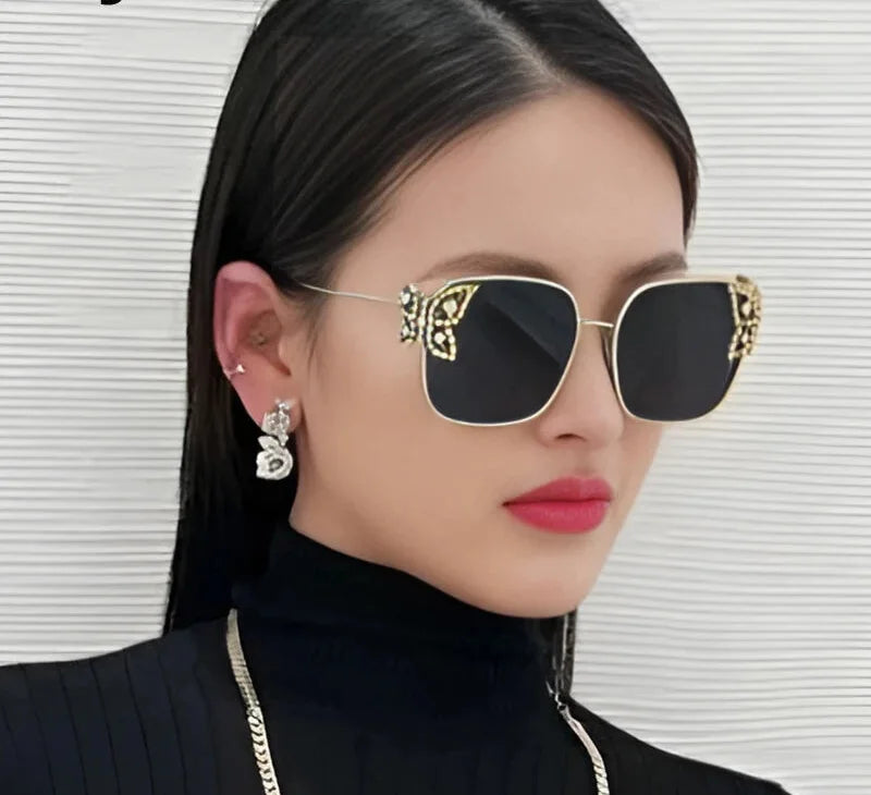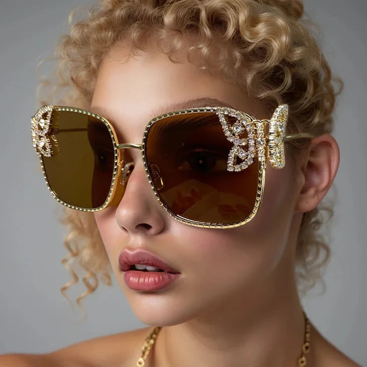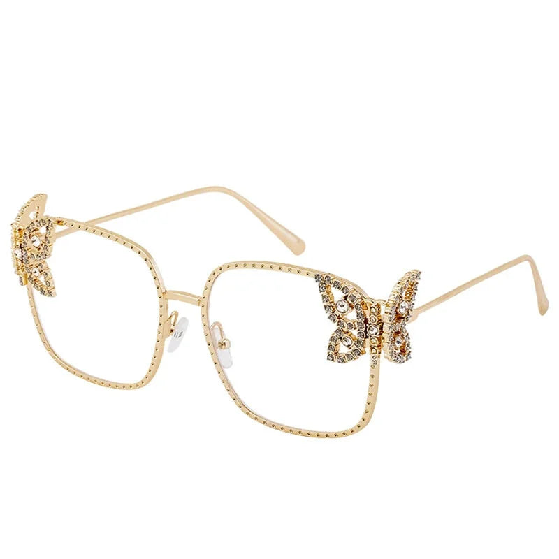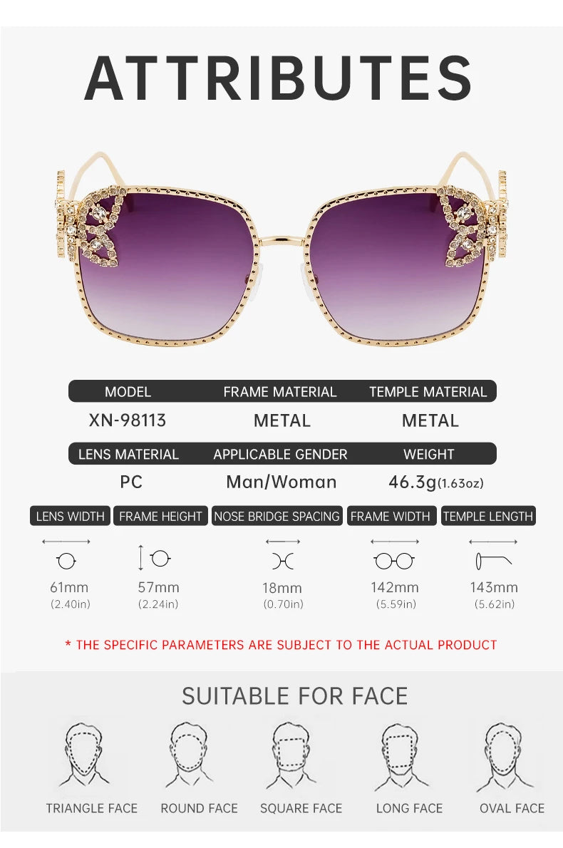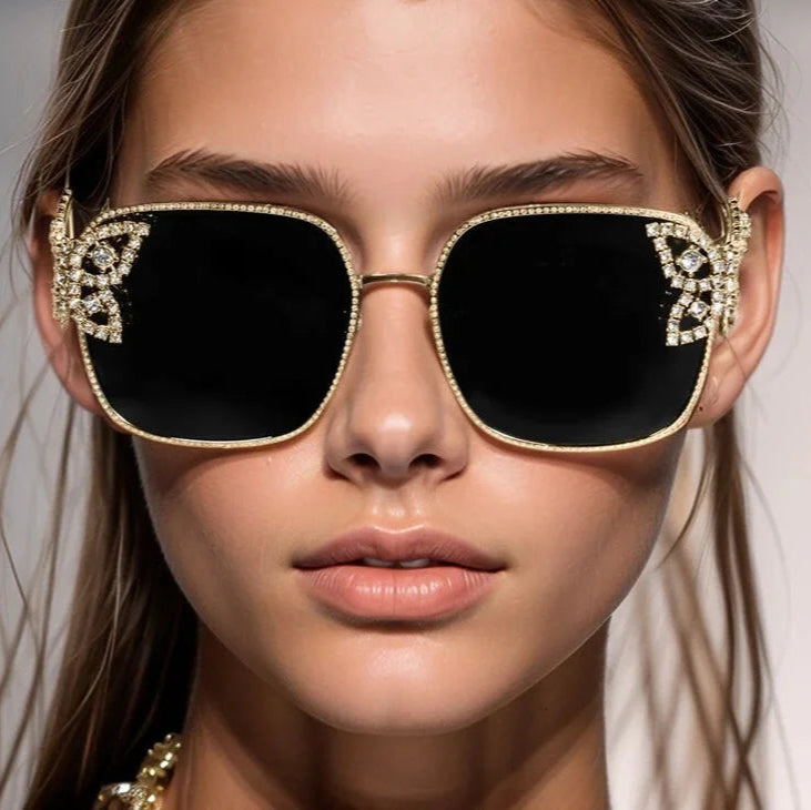 Oversized Rhinestone Butterfly Square Frame UV400 Protection Sunglasses for Women