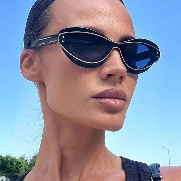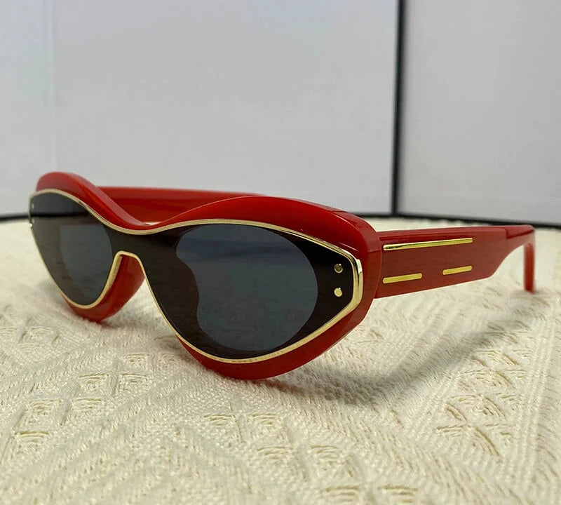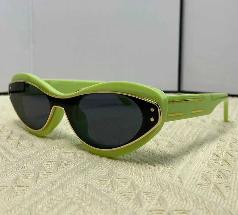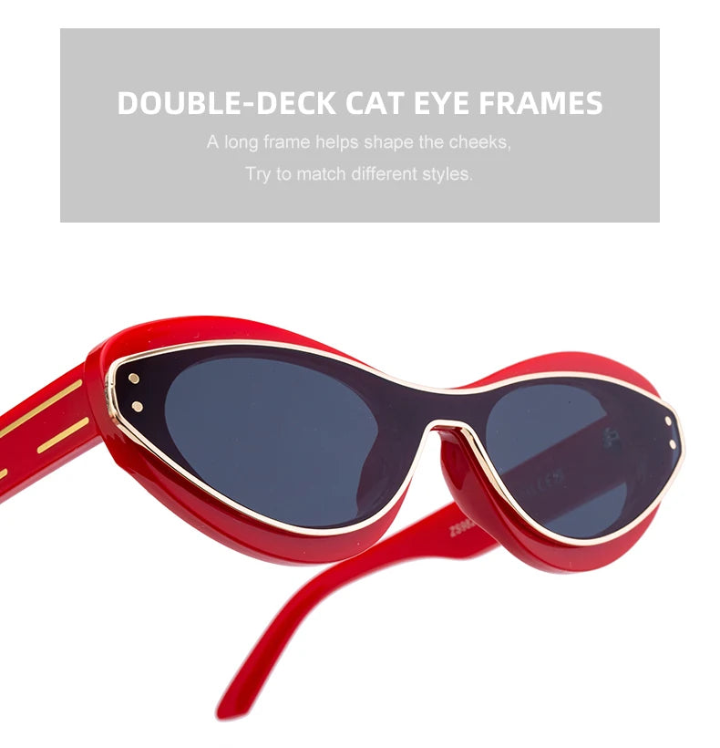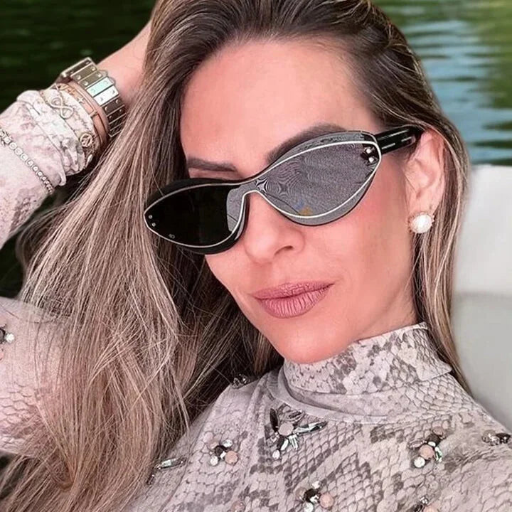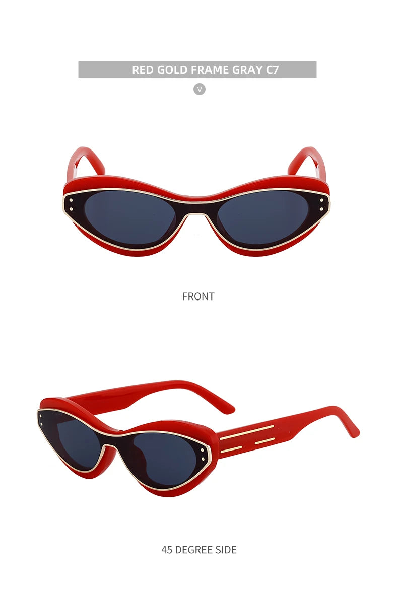 Sexy Cat Eye Punk Small Frame One-Piece Luxury UV400 Sunglasses for Women