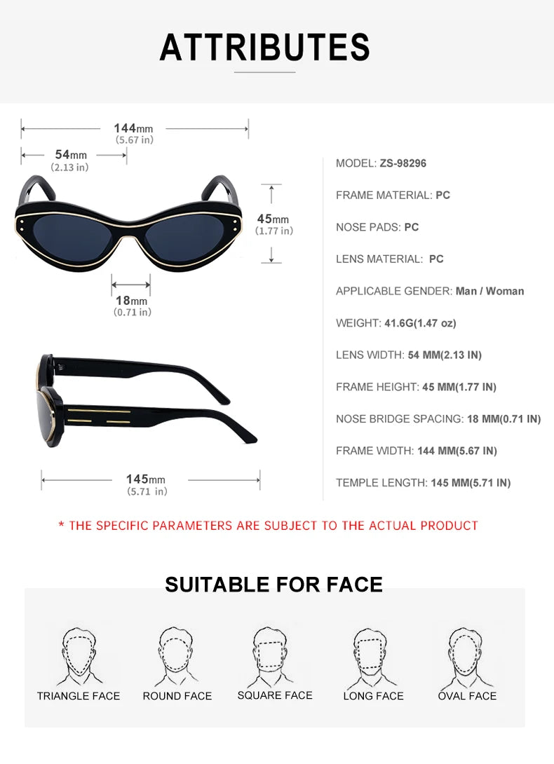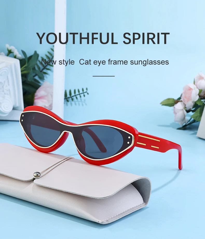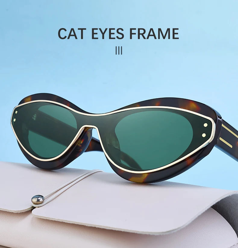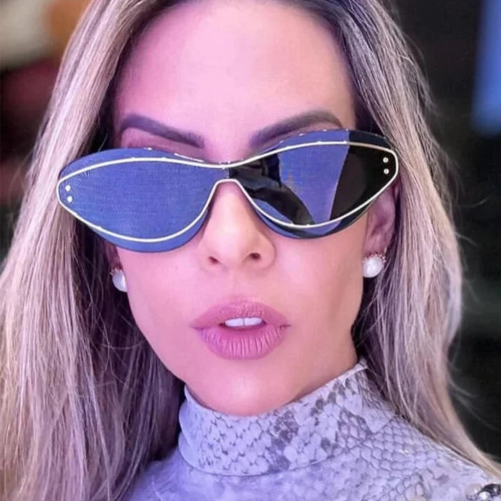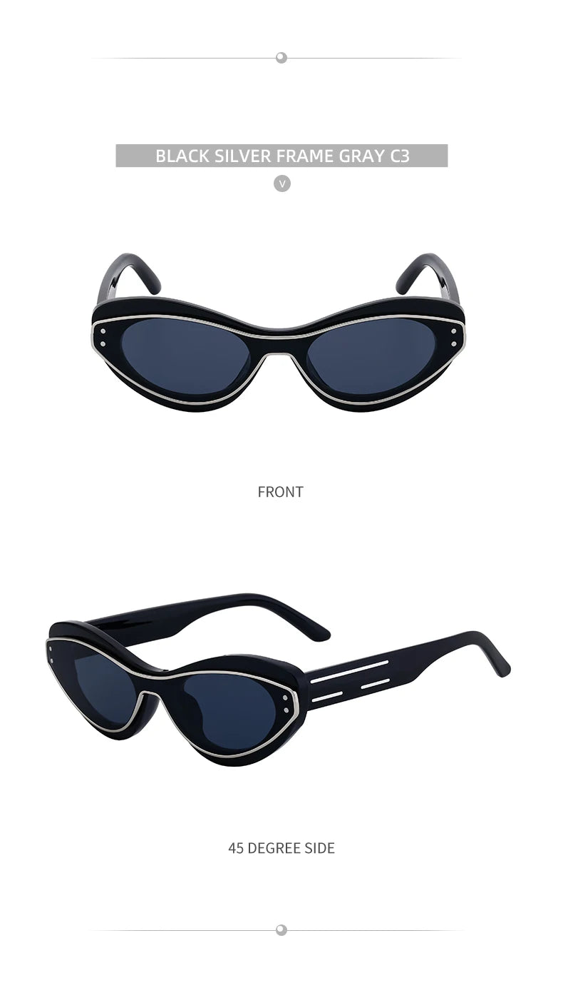 Sexy Cat Eye Punk Small Frame One-Piece Luxury UV400 Sunglasses for Women