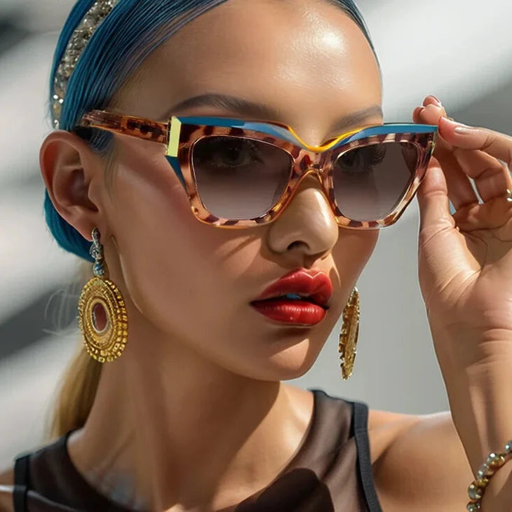 Sexy Cateye Punk Luxury Designer Leopard Pattern UV400 Sunglasses for Women