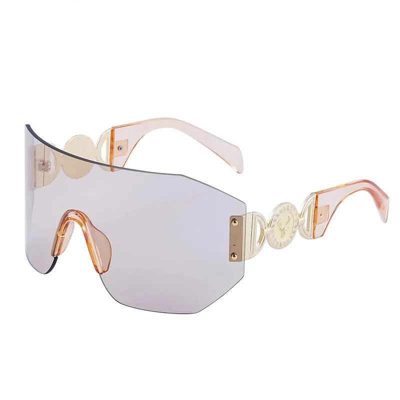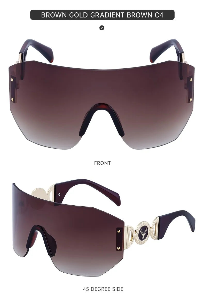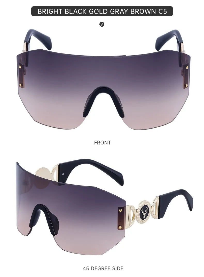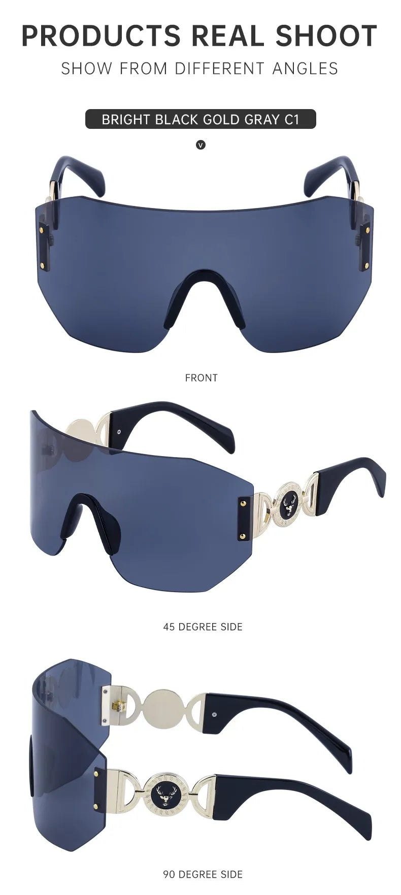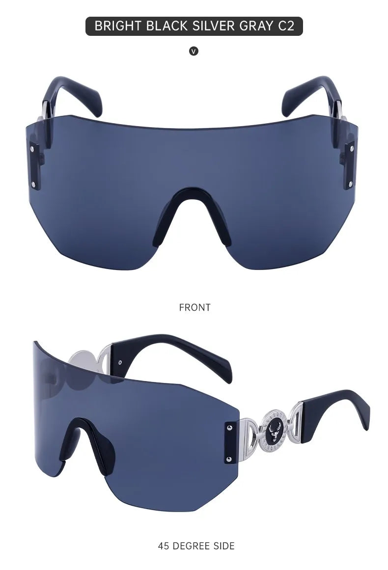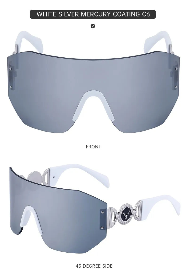 Women's Luxury Oversized Shield Rimless Winged Punk UV400 Sunglasses