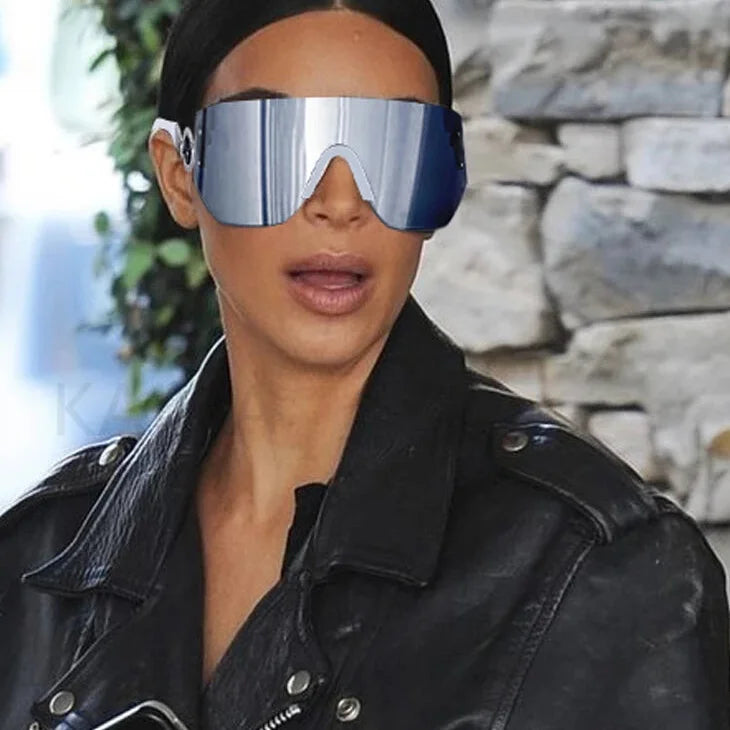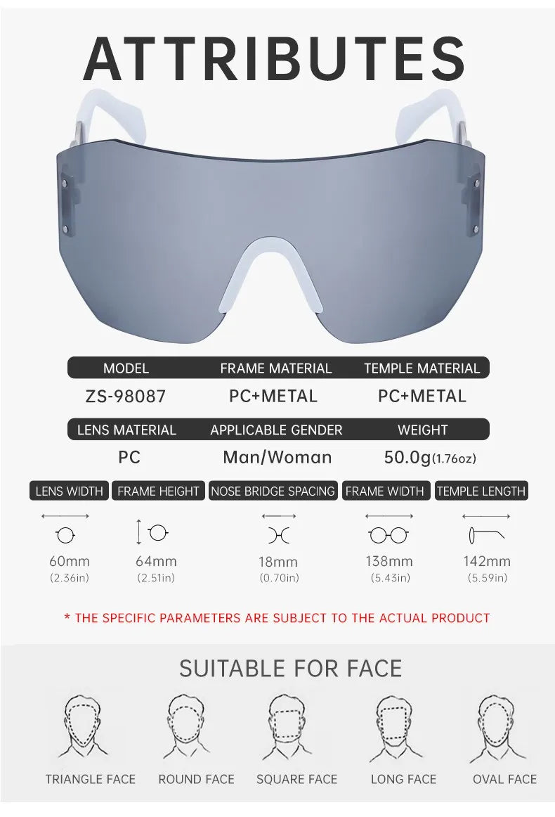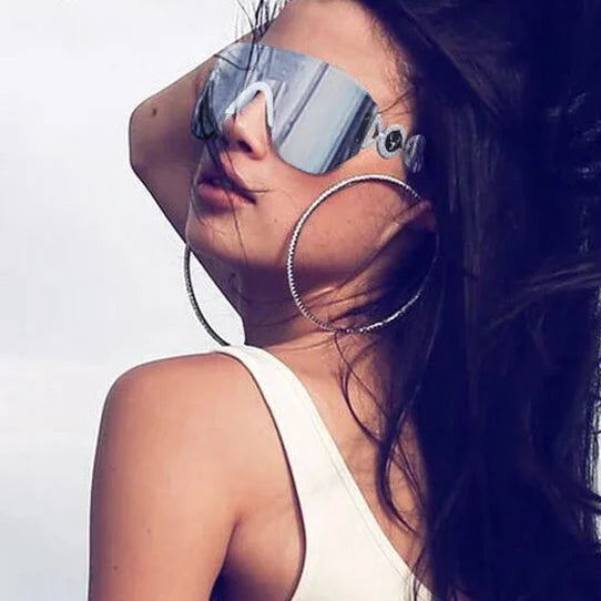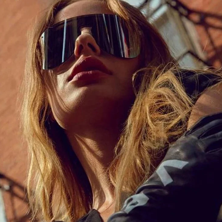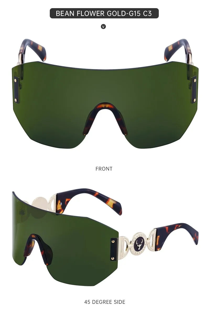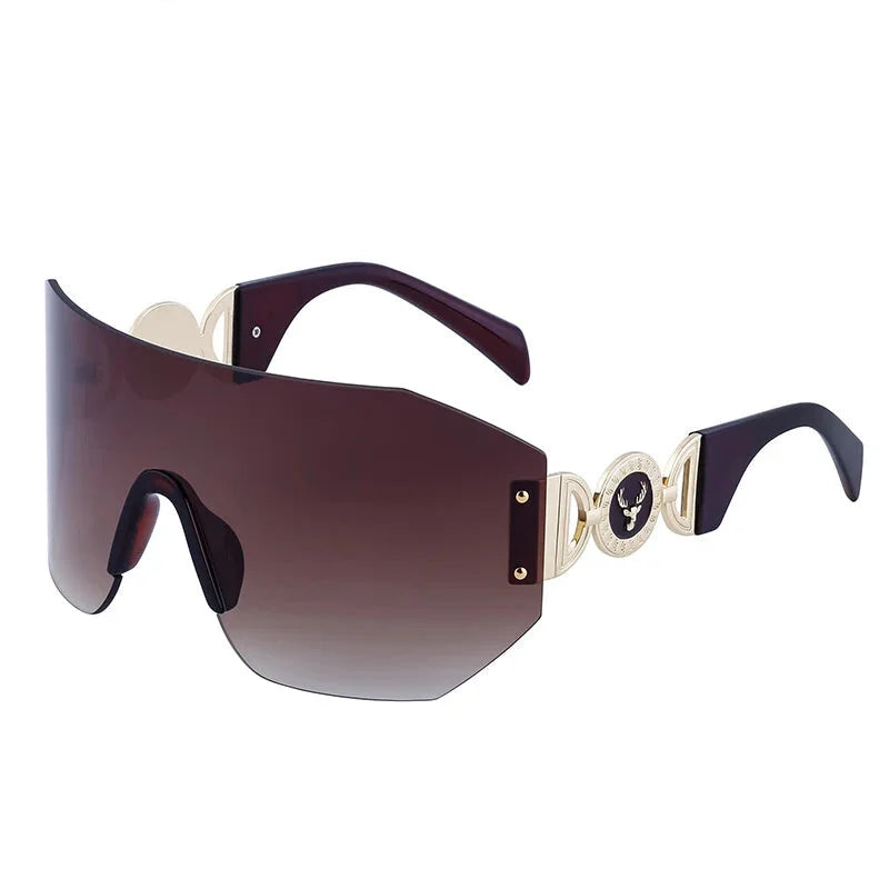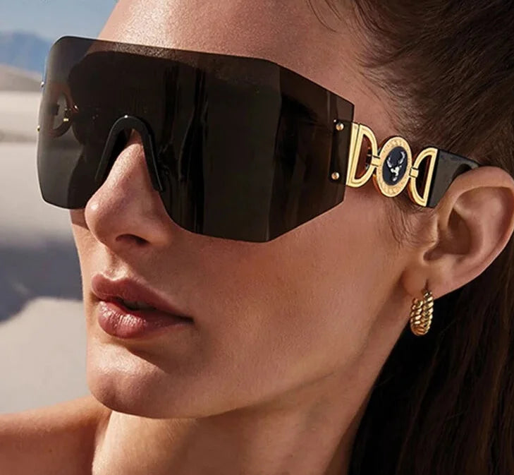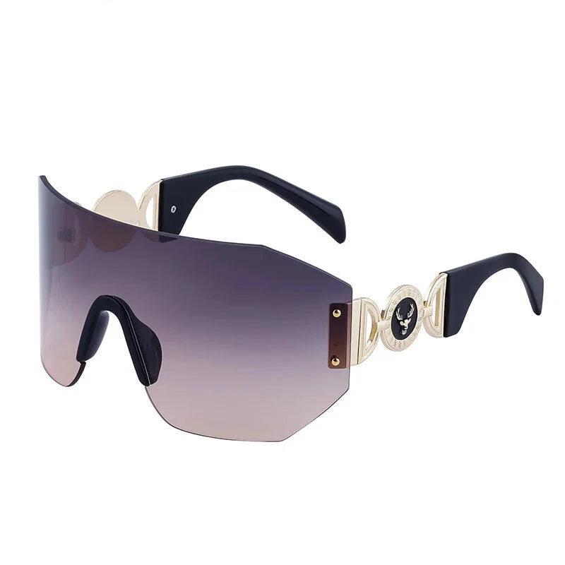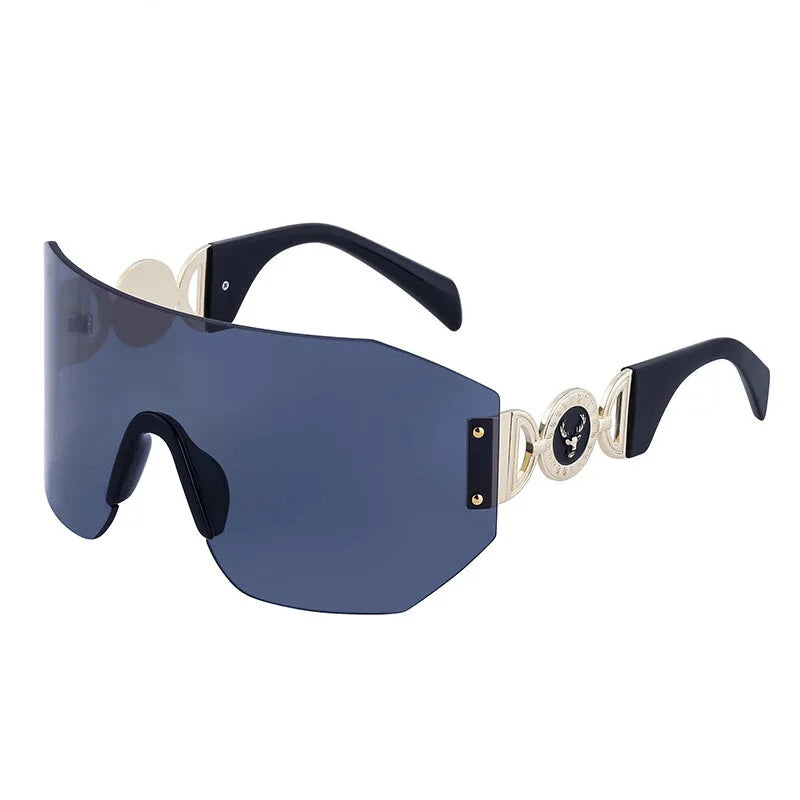 Women's Luxury Oversized Shield Rimless Winged Punk UV400 Sunglasses