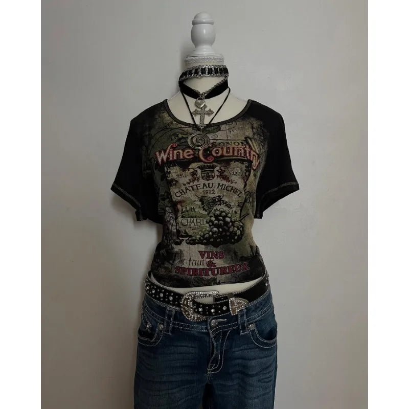Gothic Letters Print Cotton Slim Short-sleeved T-shirts for Women