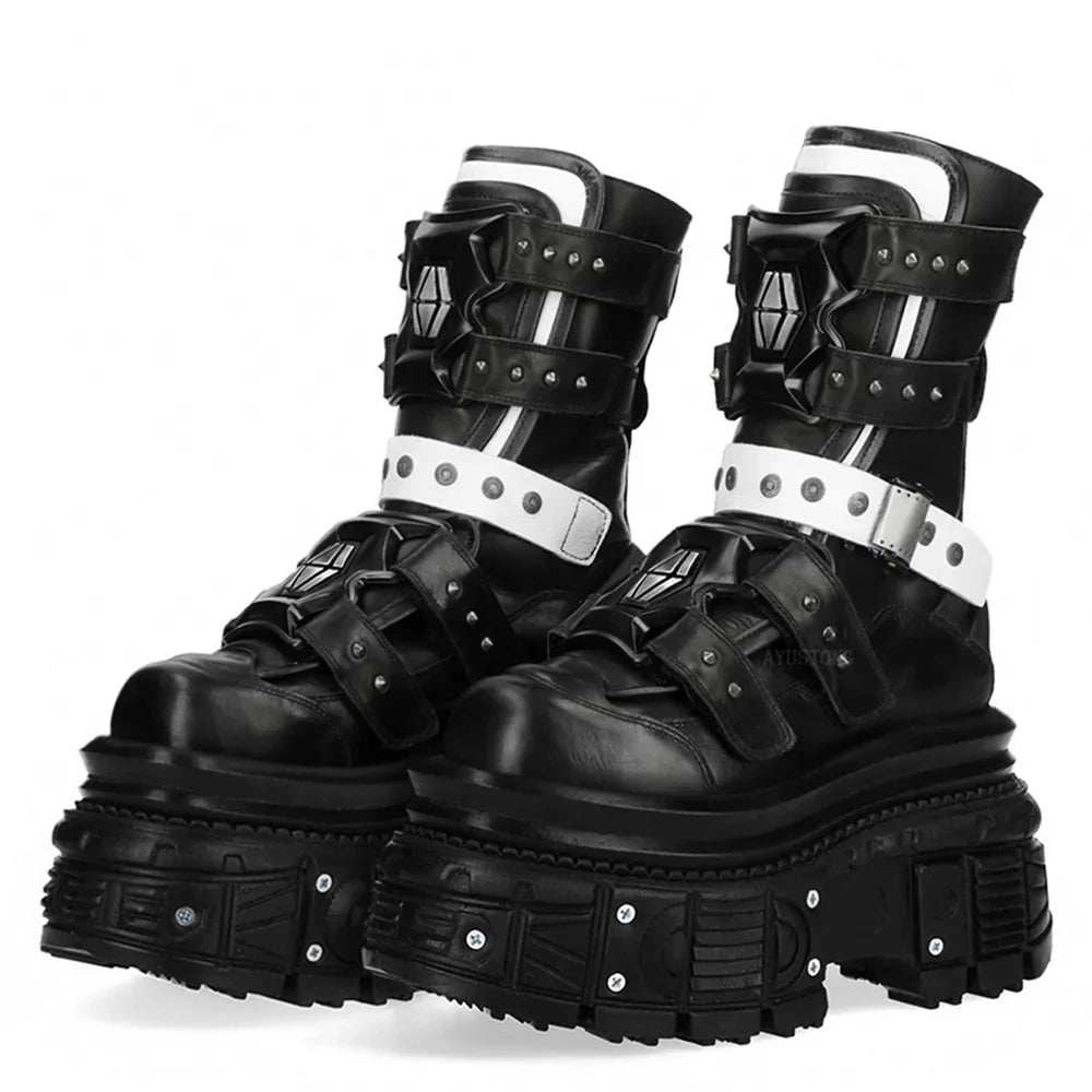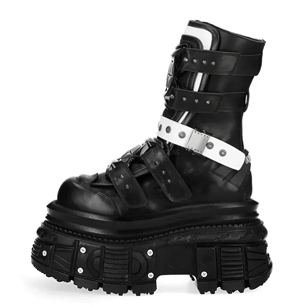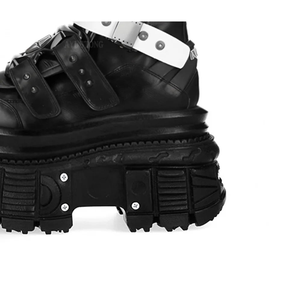 product: Punk Thick Sole Belt Buckle Rivet Motorcycle Boots