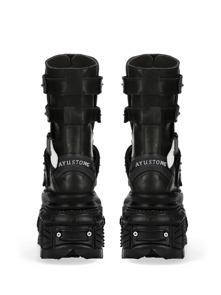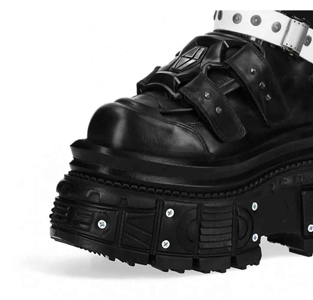 Looking for punk-style footwear in a black finish? Then this is for you. These women's boots are designed with thick soles and belts for a punk style. The leather makes it perfect for long-time wear. Wear it to look more stylish and walk more comfortably. Shop now!