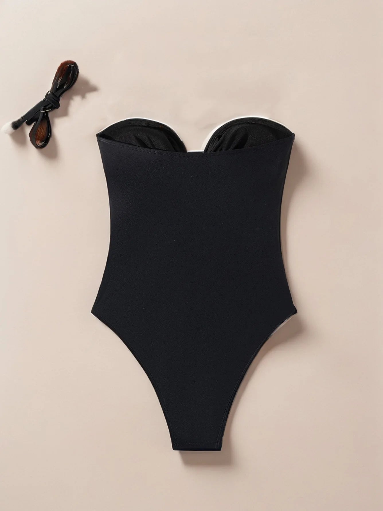 Sexy Bandeau Hollow One Piece Bathing Monokini Swimwear for Women