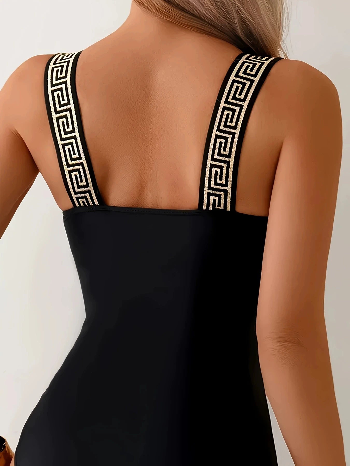 Summer Brazilian Solid Black Print Patchwork Monokini Swimwear for Women