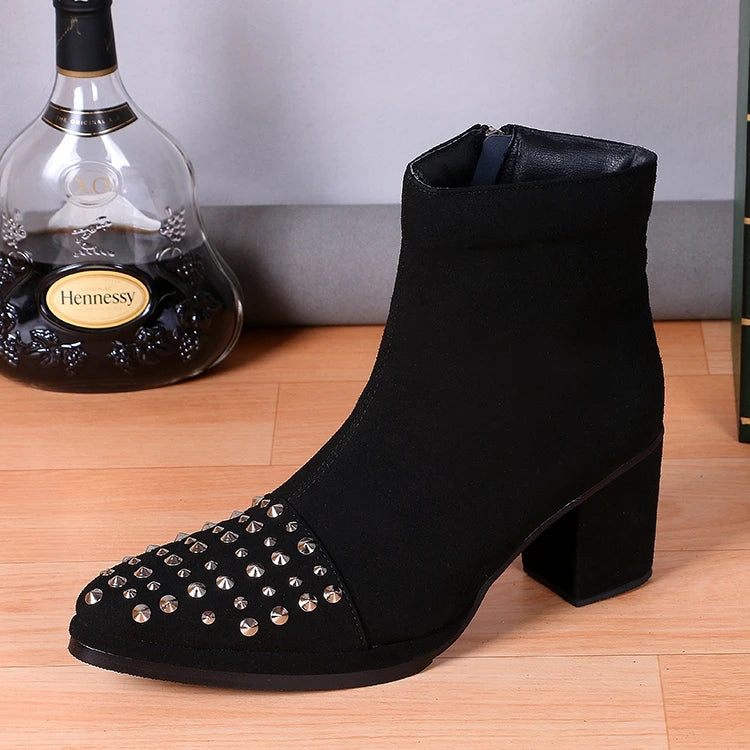 Looking for elegant Italian-style men's boots? Then this is for you. The genuine leather upper and rubber outsole not only look elegant and stylish, but are also comfortable to wear. The pointed toes and metal rivets create a fashionable and neat classic look. Buy now!
