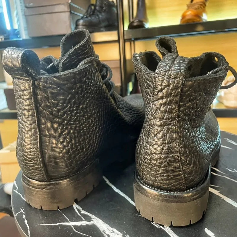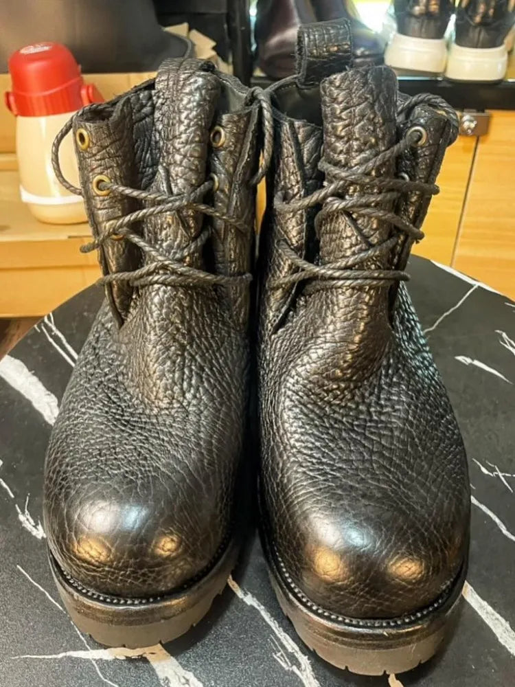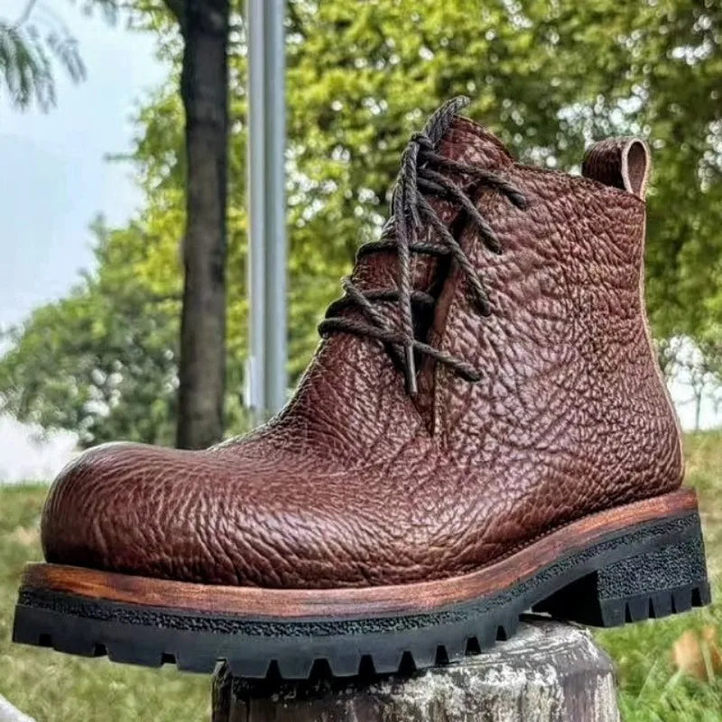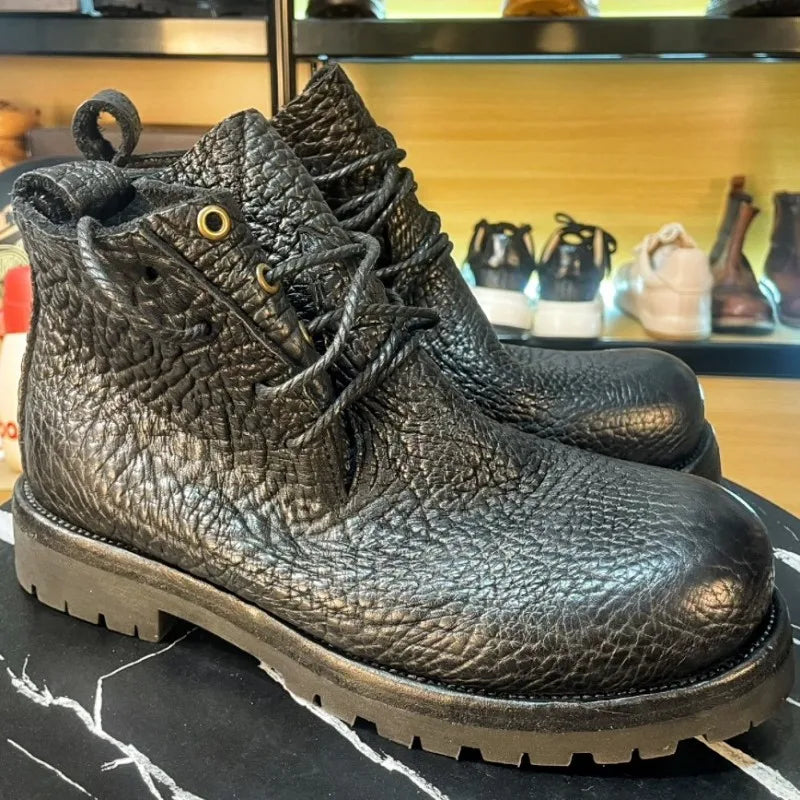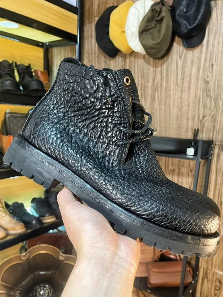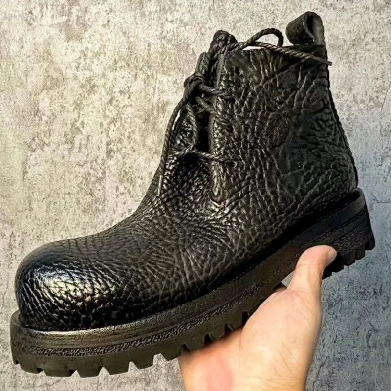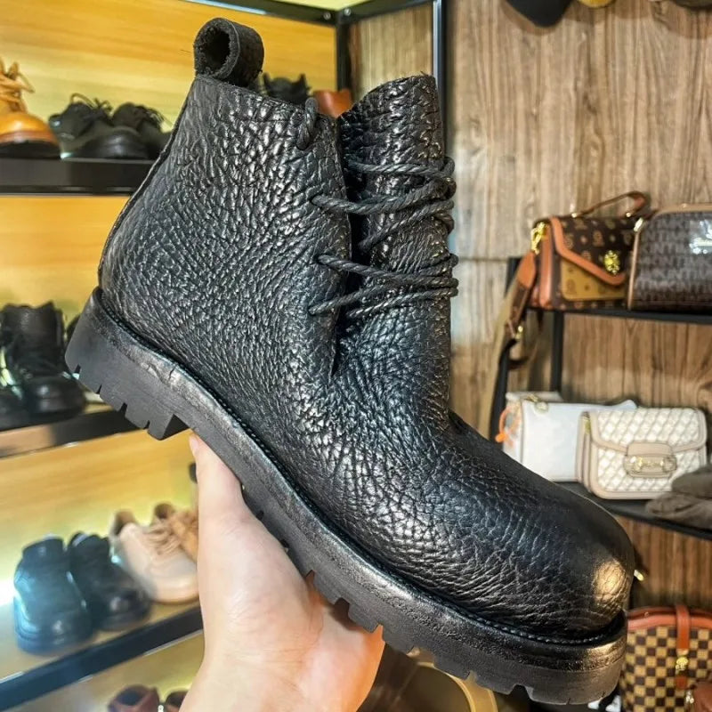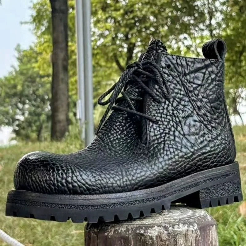 Designed with a genuine leather upper, offering both durability and style, these men's ankle boots are handmade and are perfect for hard wear. It is styled with a round toe shape and retro style to impress retro style lovers. Buy now!