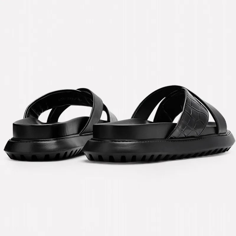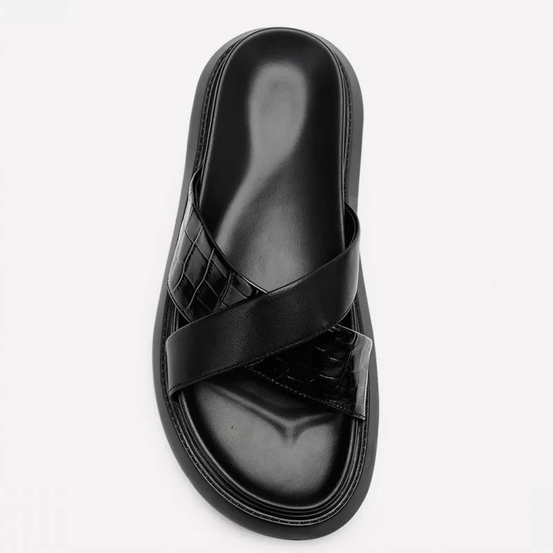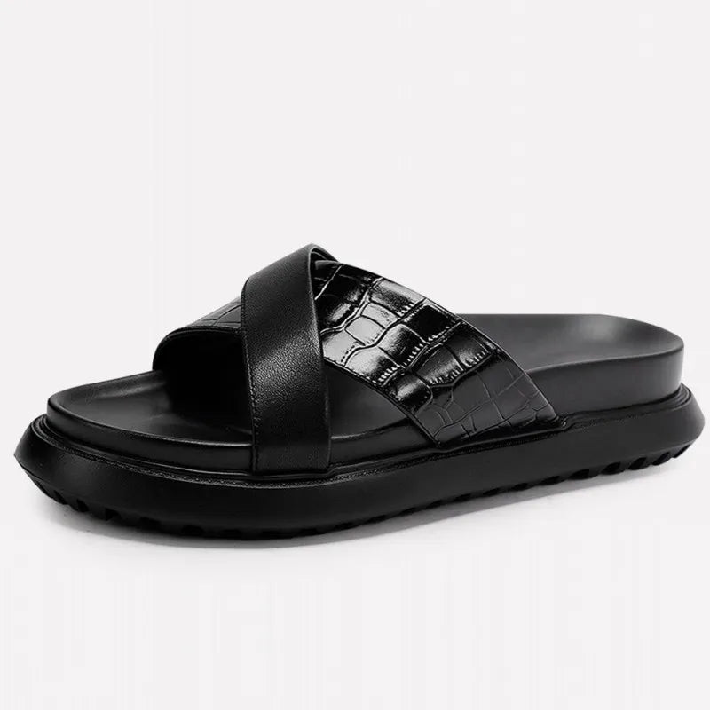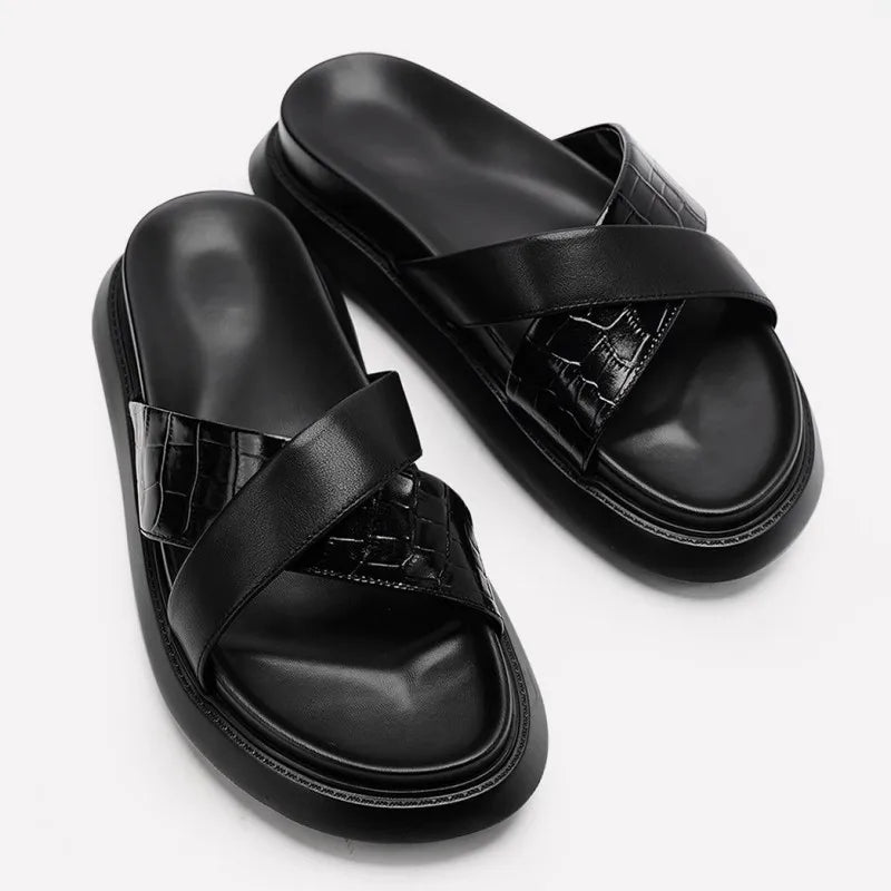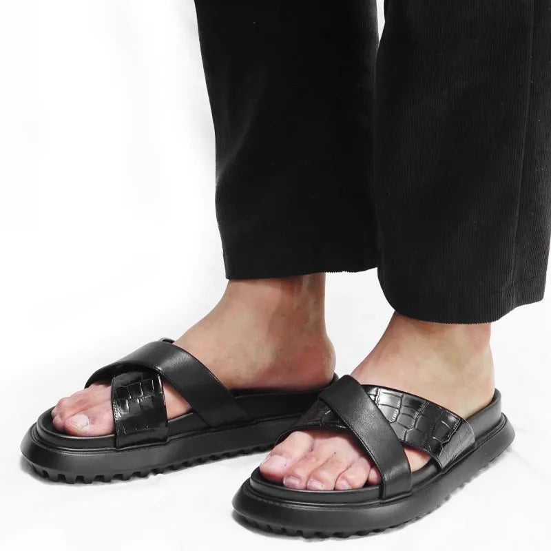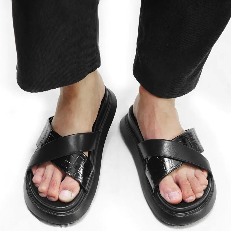 Beach Fashion Men's Cowhide Platform Breathable Open Toe Slipper Sandals