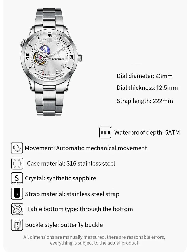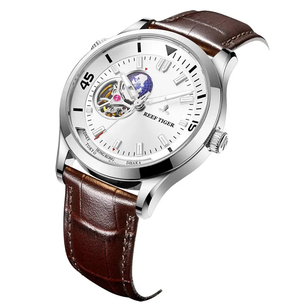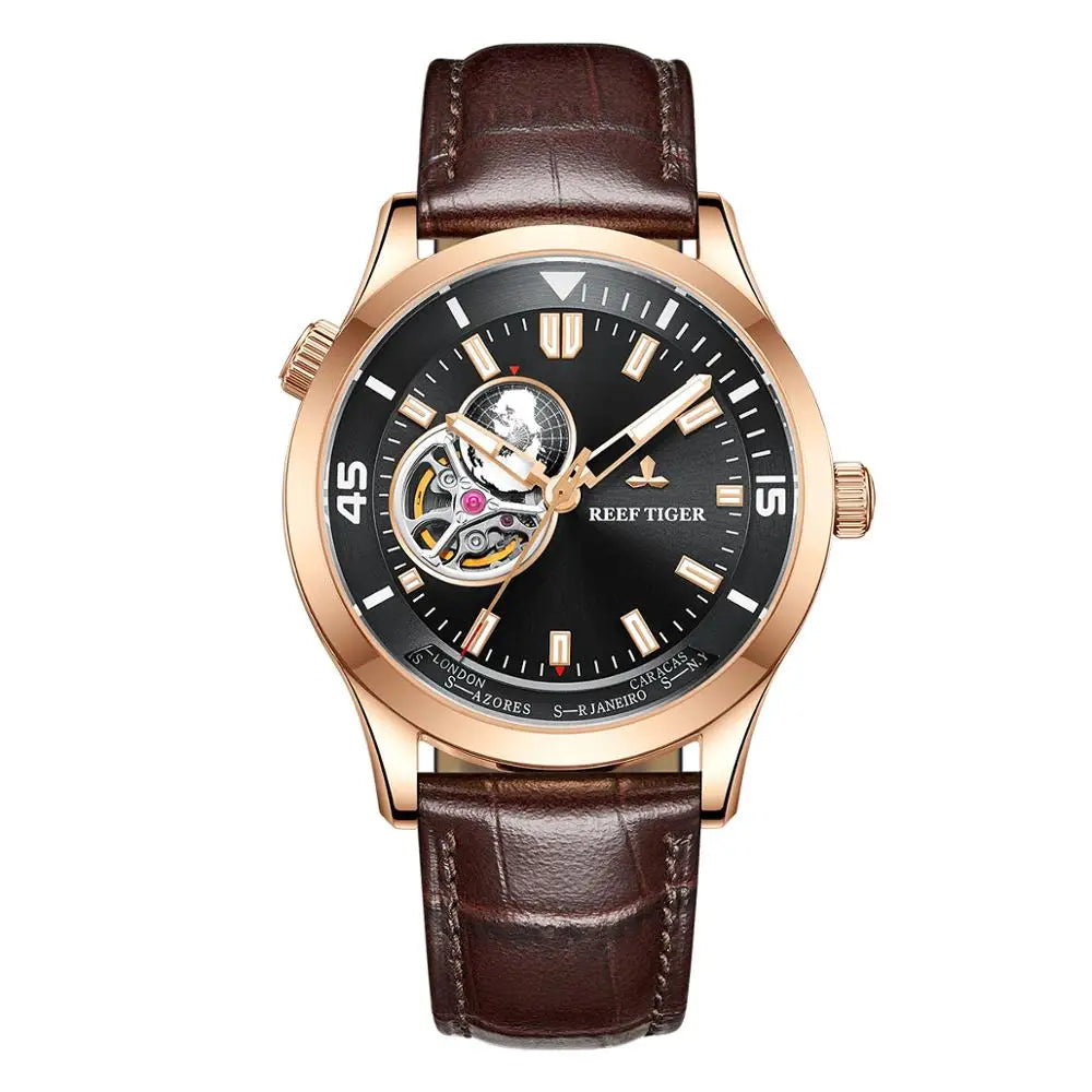 Luxury Automatic Luminous Tourbillon Waterproof Leather Watch for Men