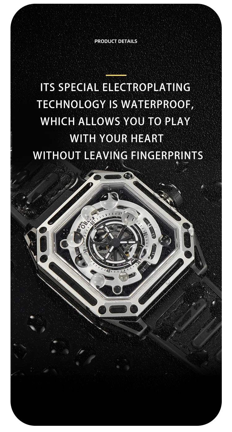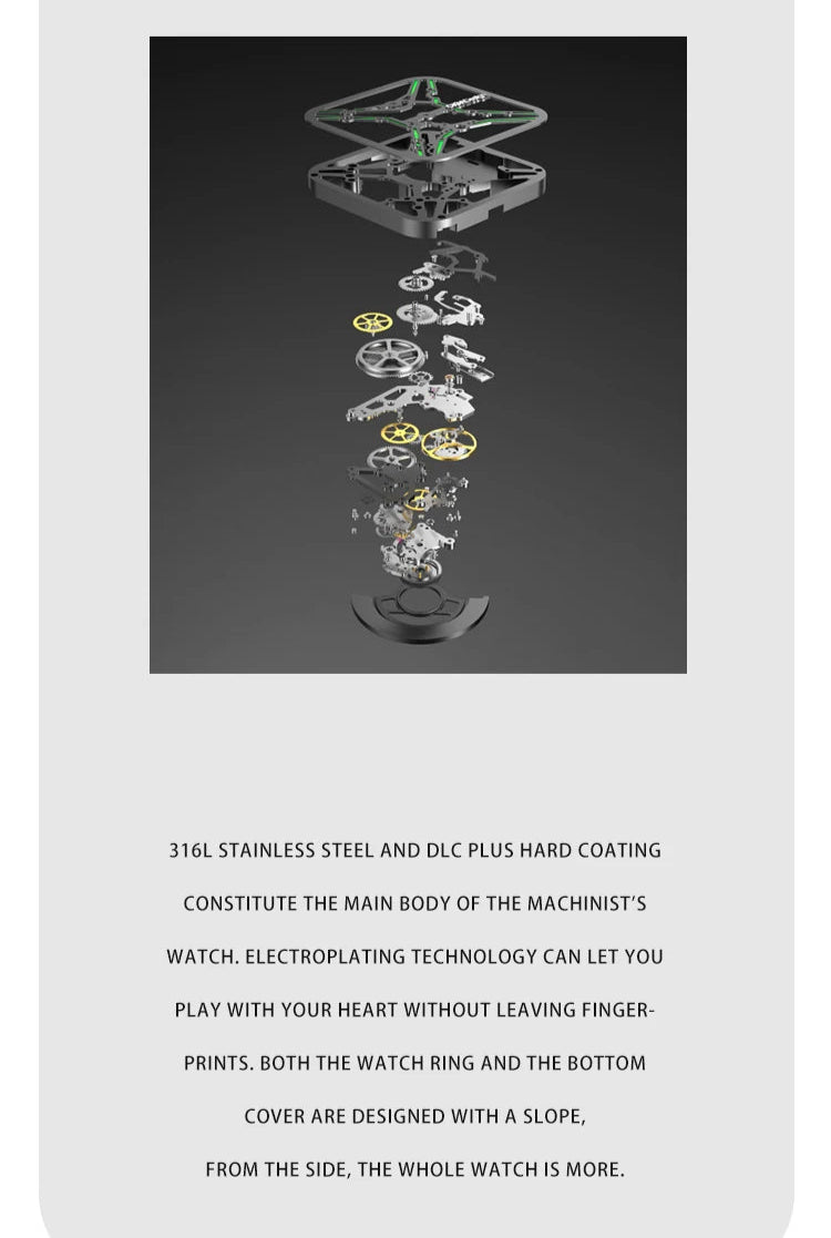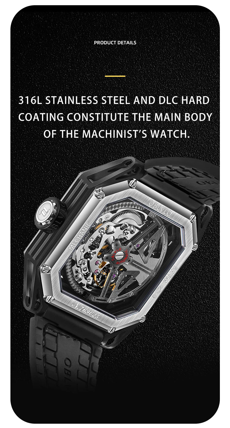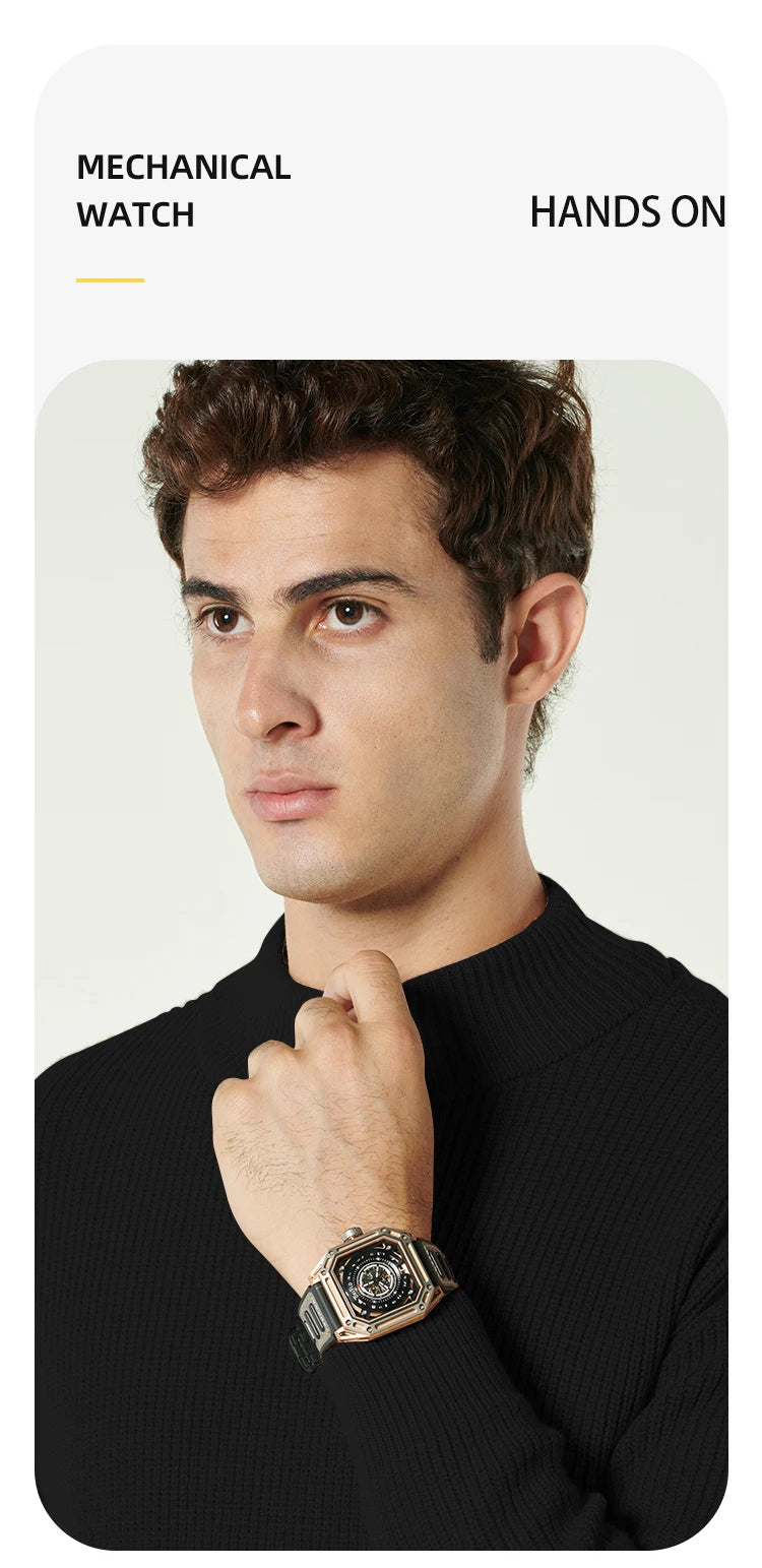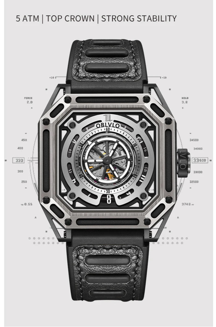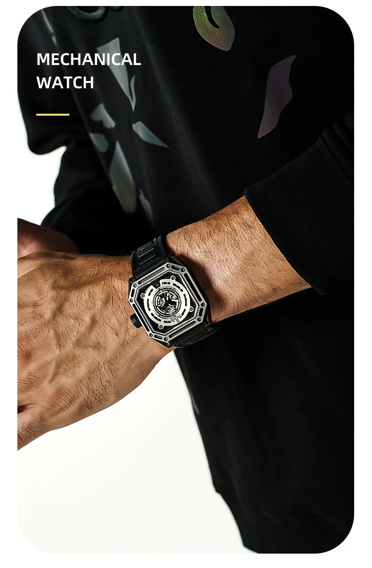 Luxury Full Steel Square Self-wind Mechanical Automatic Waterproof Sports Watch For Men