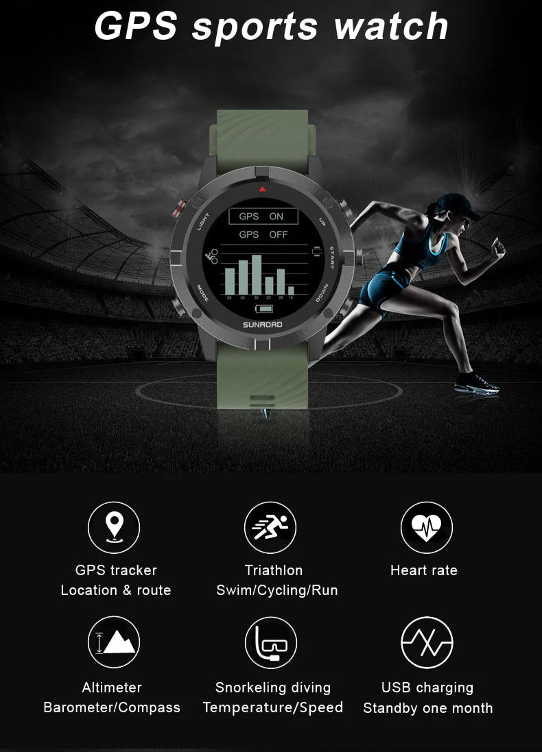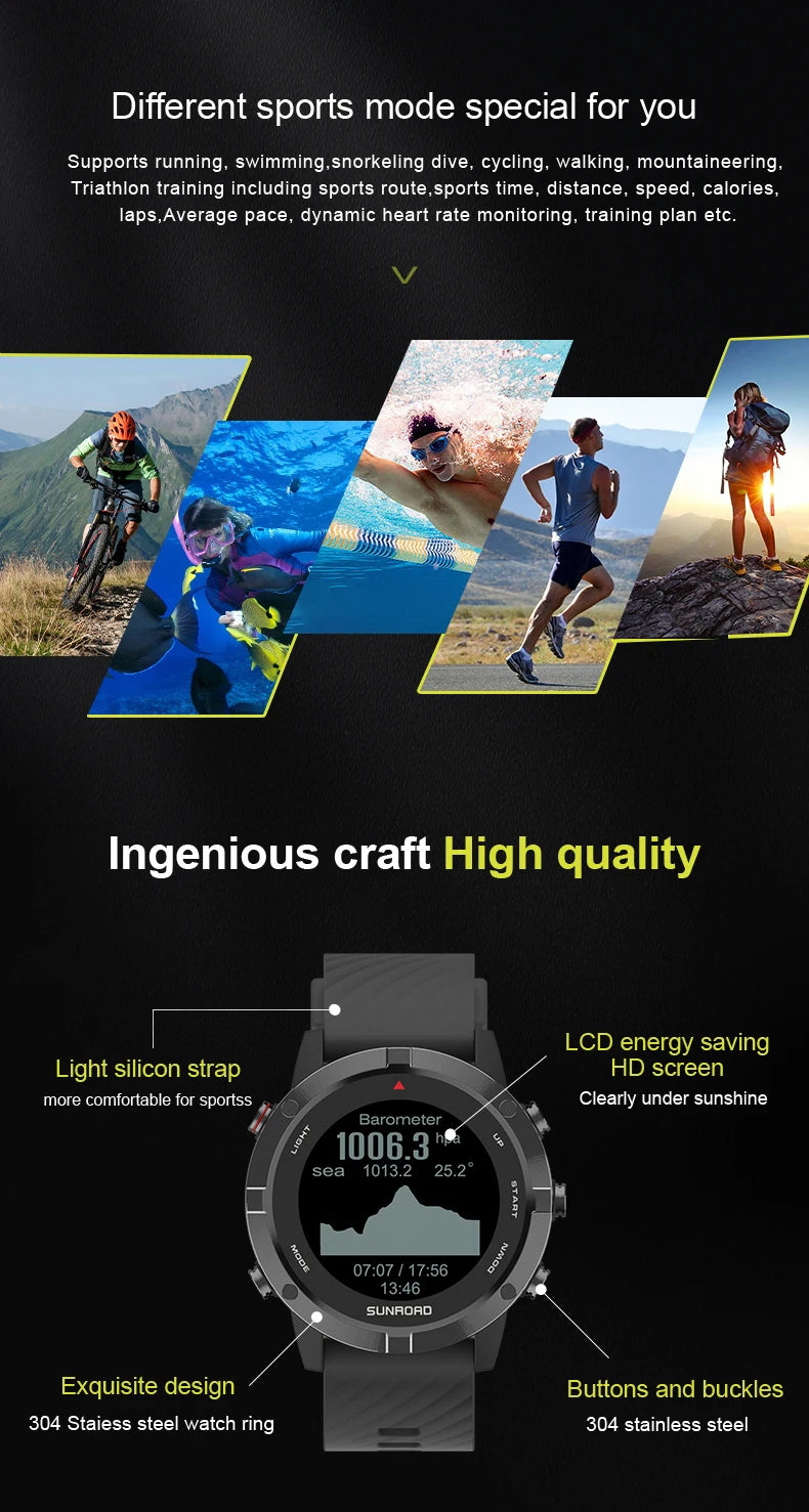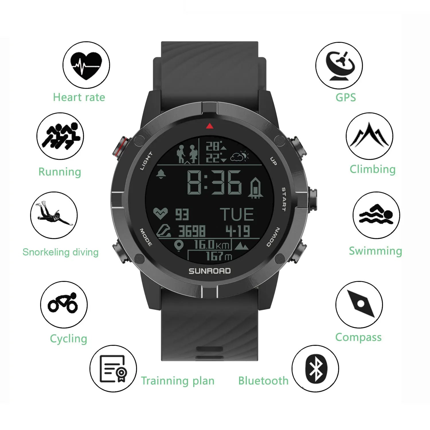 Men's Compass Barometer Waterproof Fitness Tracker Sports Watch for Swim Run Climb