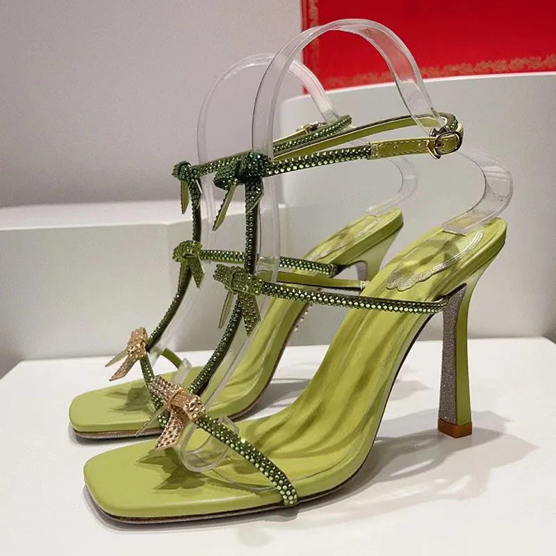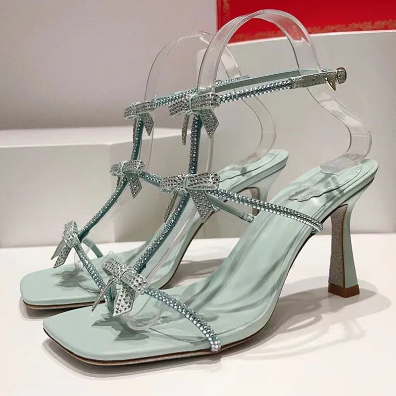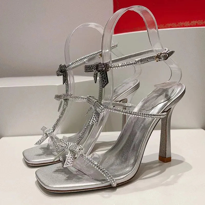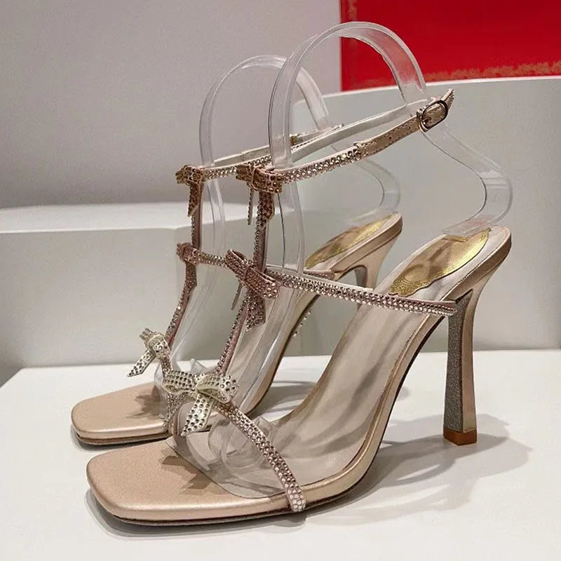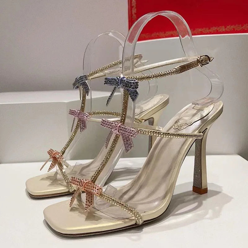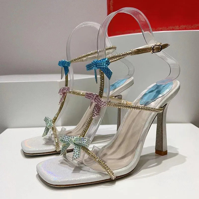 Summer High Heels Butterfly-knot Rhinestone Ankle Strap Gladiator Sandals for Women