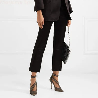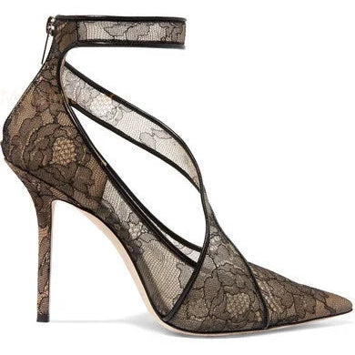 Women's Black Lace Strap High Heels Pointed Toe Stiletto Pumps