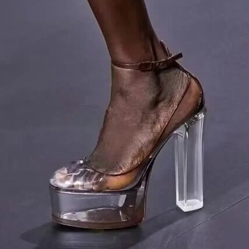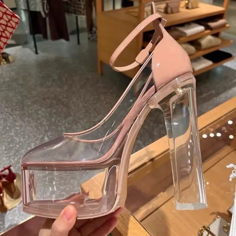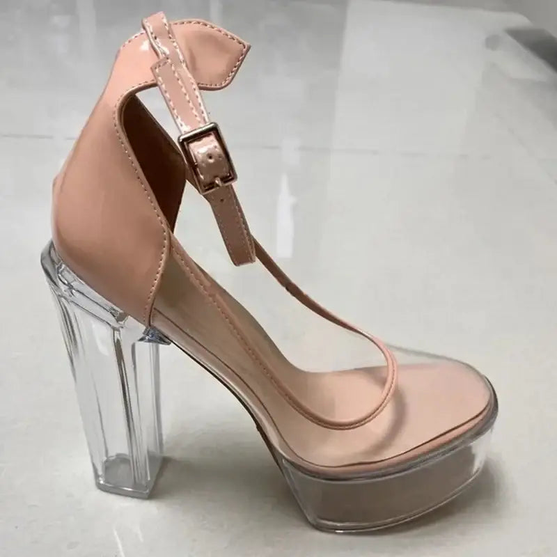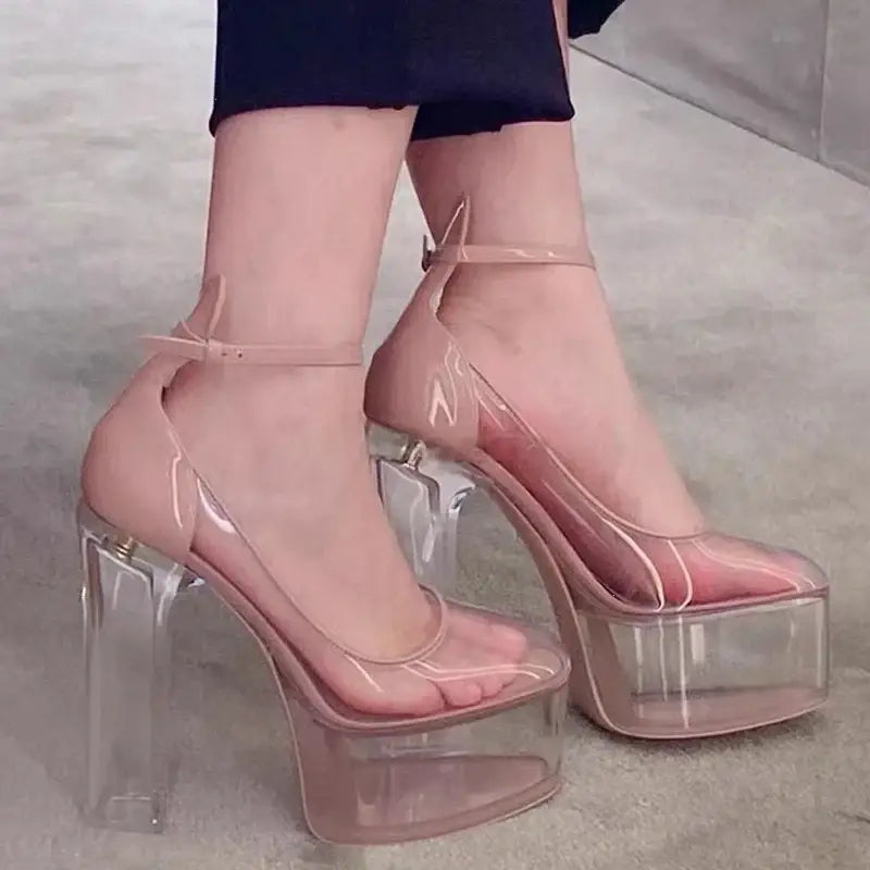 Women's Pointed Toe Ankle Straps Clear High Square Heel Platform Sandals