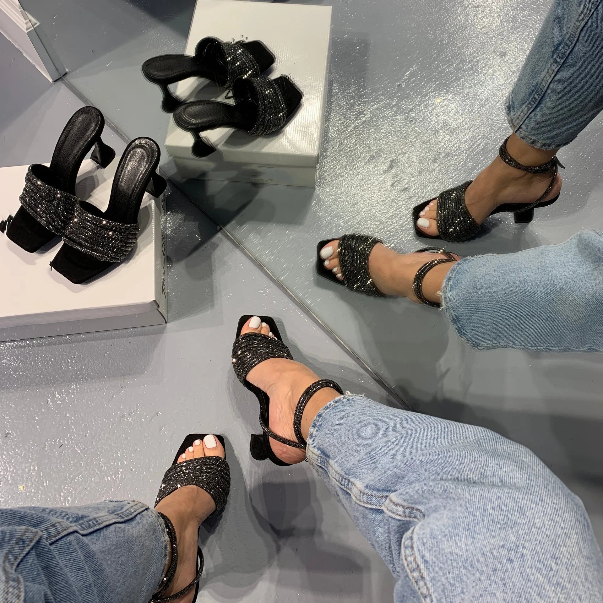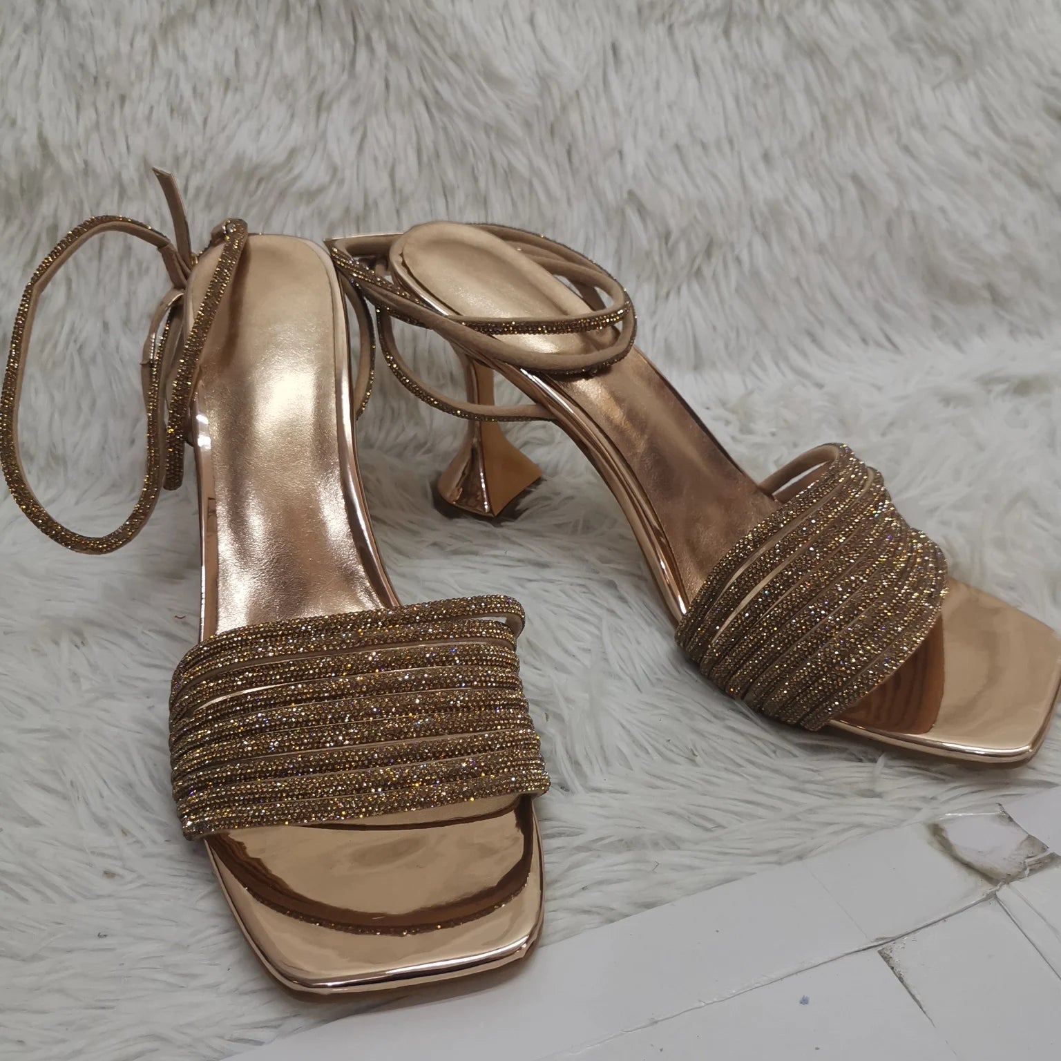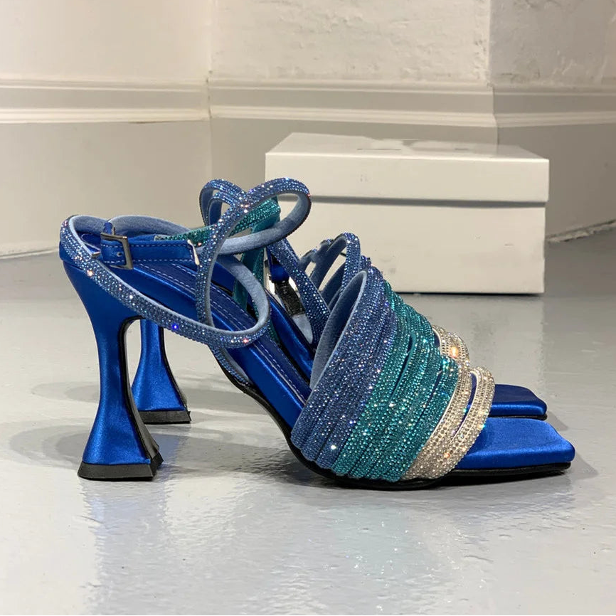 Women's Gradient Rhinestone Strange Heels Sandals with Ankle Strap