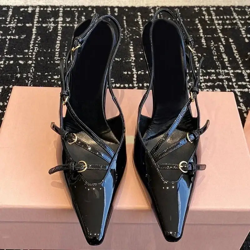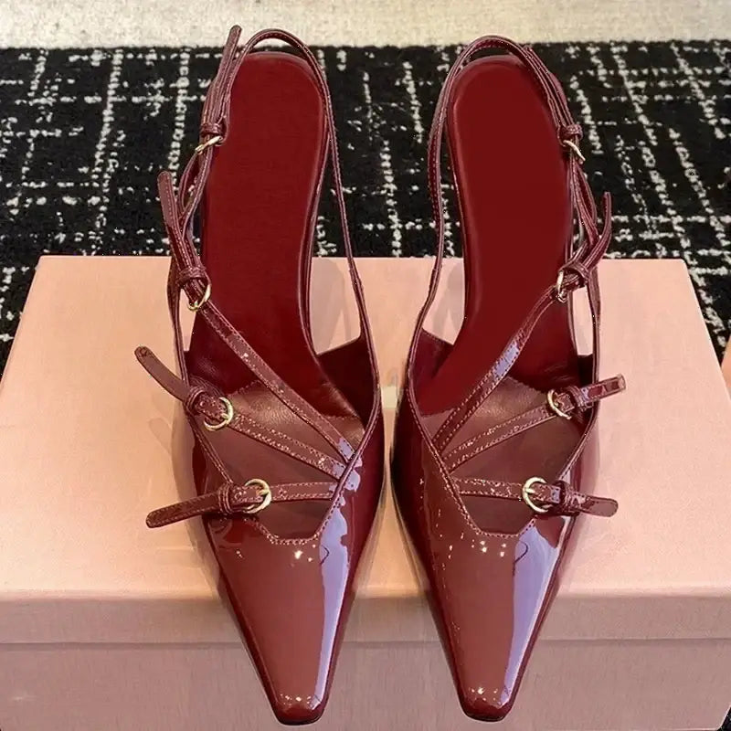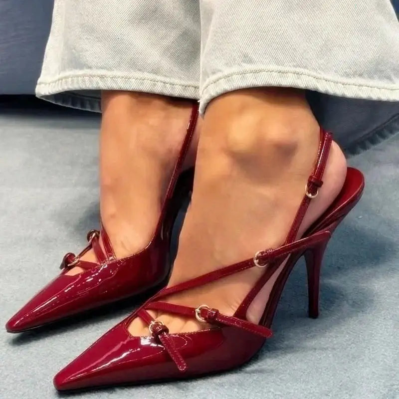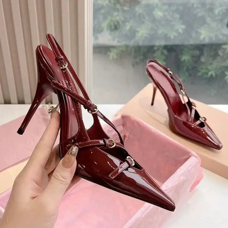 Model Number : Cherry Buckle Strap Stiletto Pumps