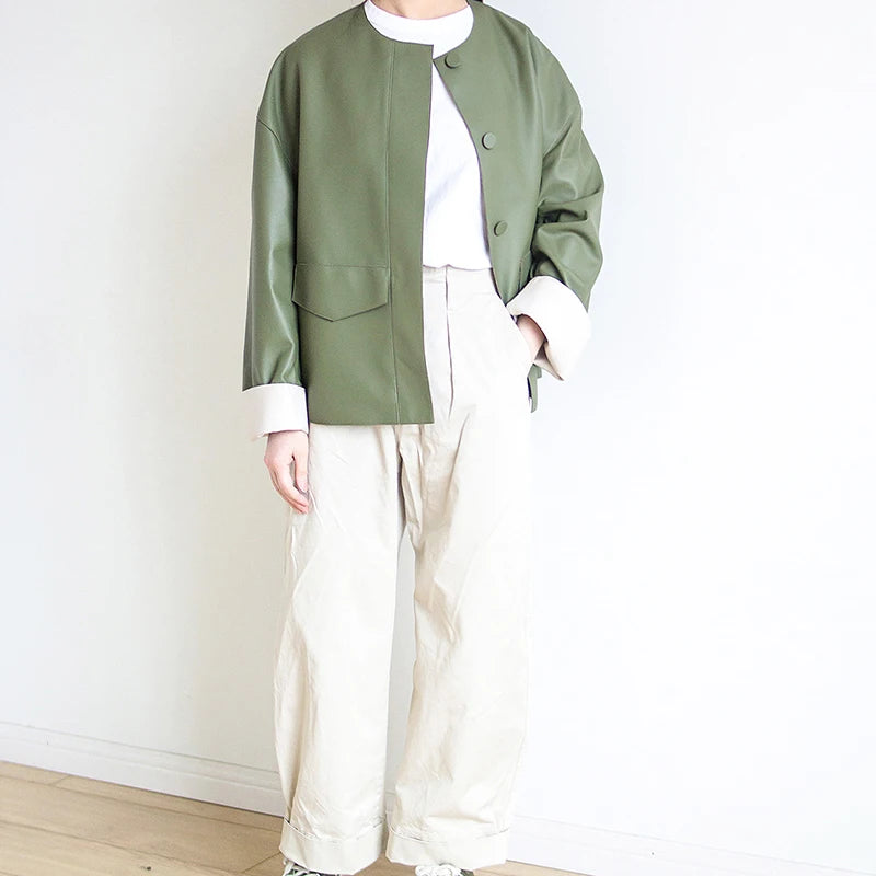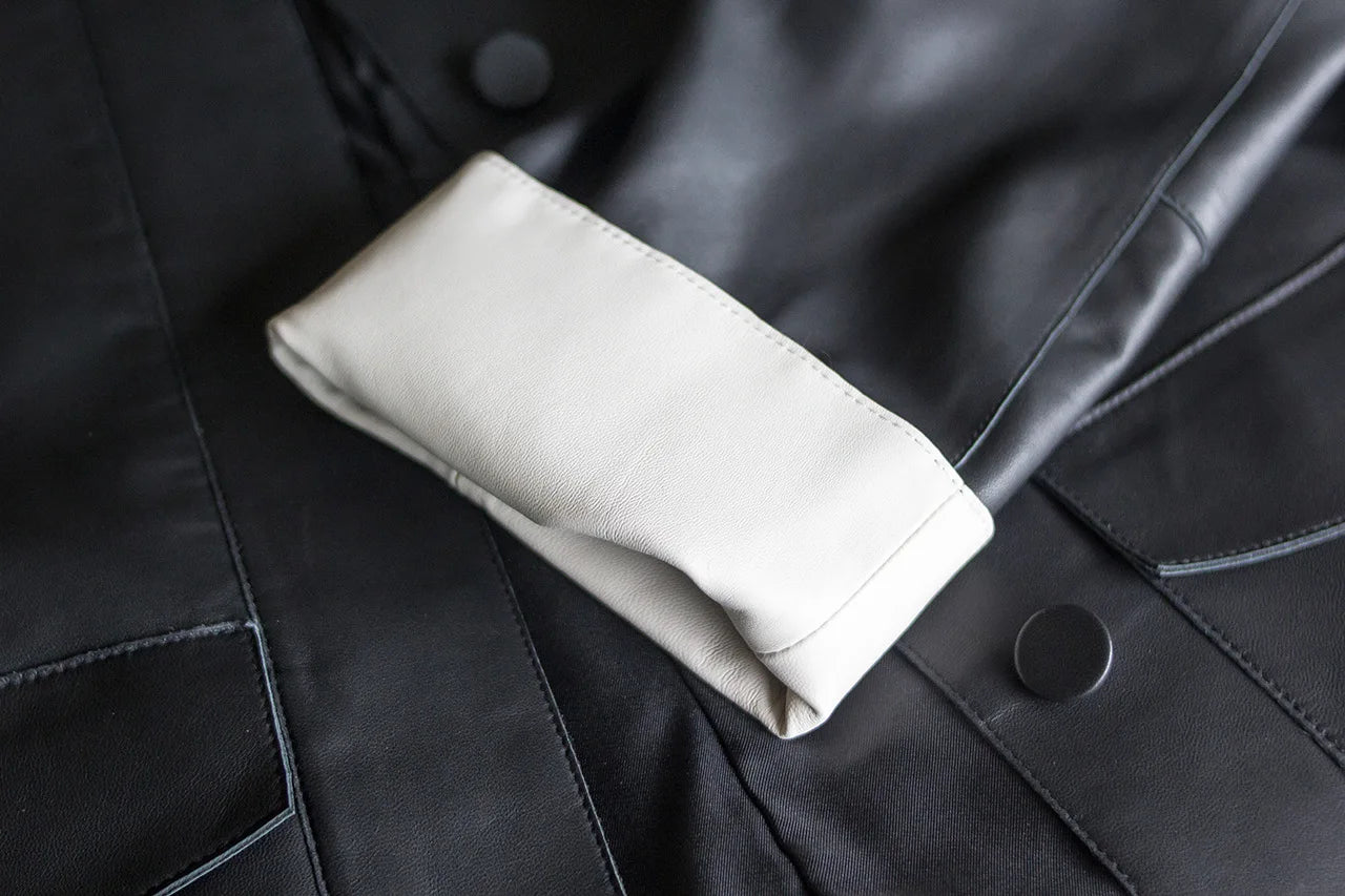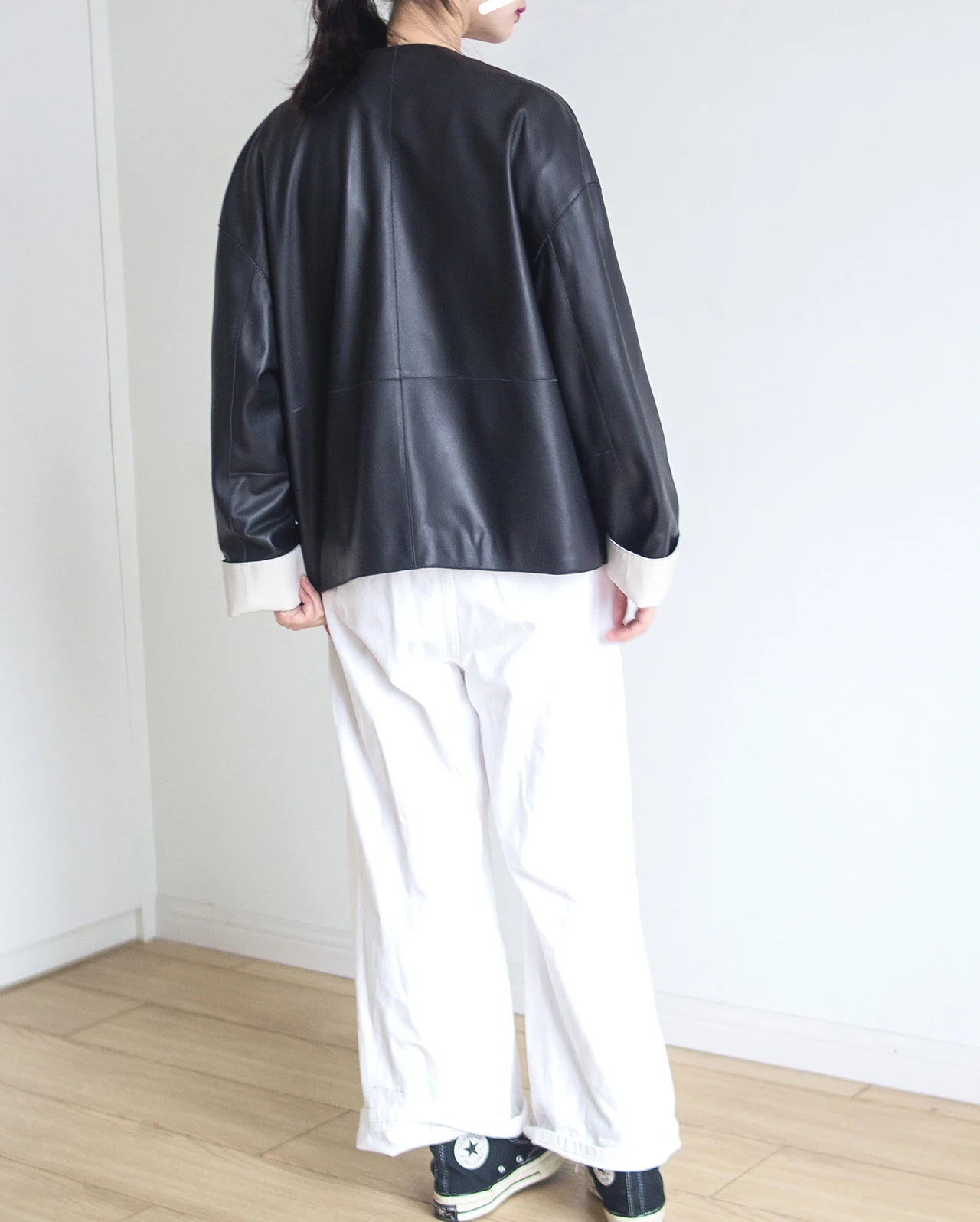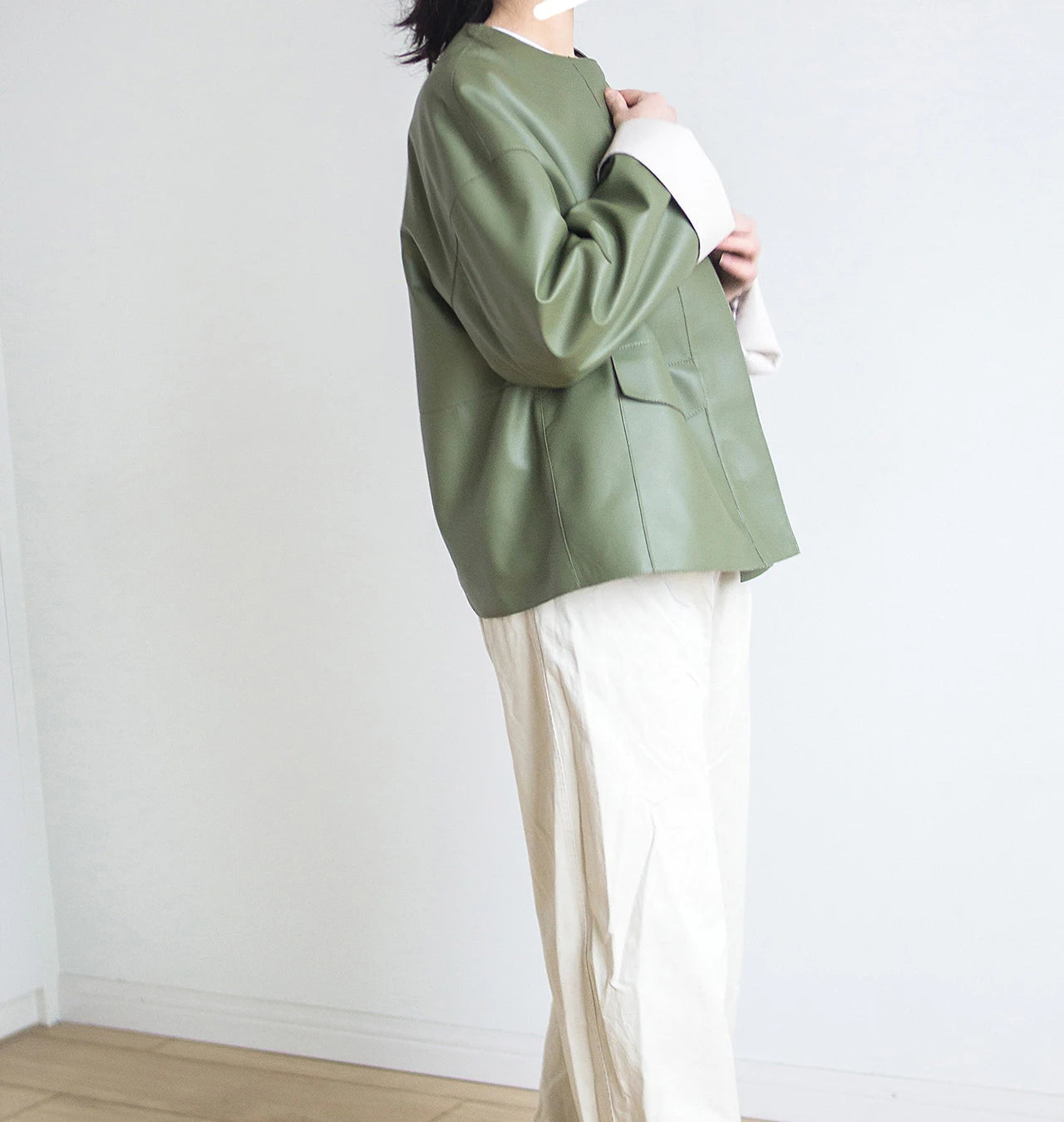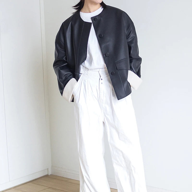 Women's Sheepskin Leather O-Neck Single Breasted Pocket Retro Loose Casual Jacket