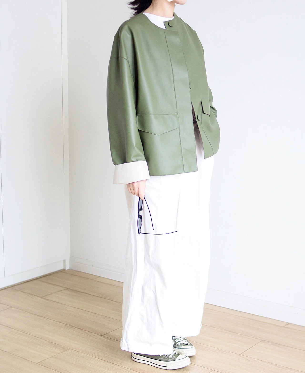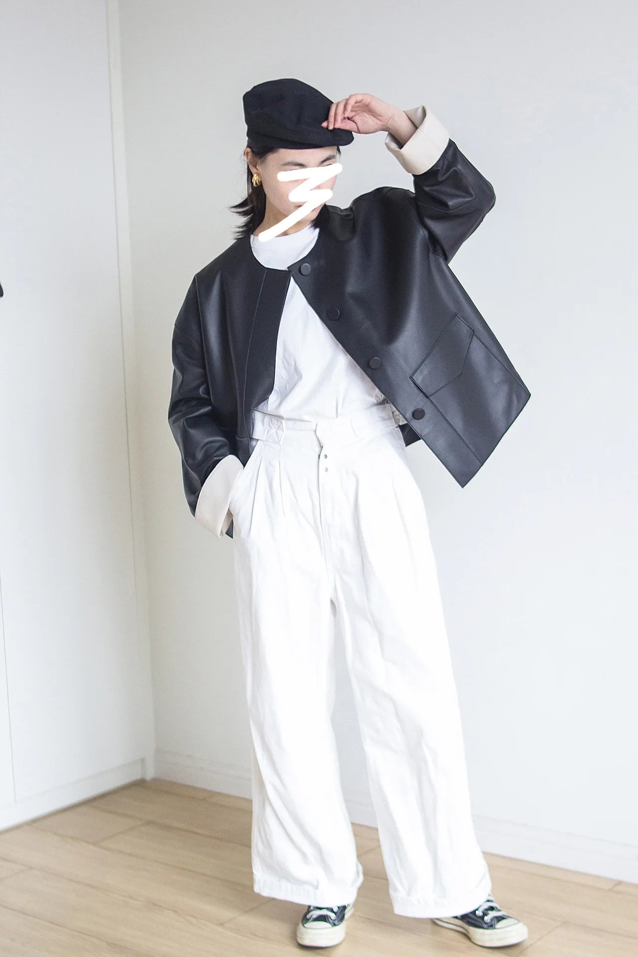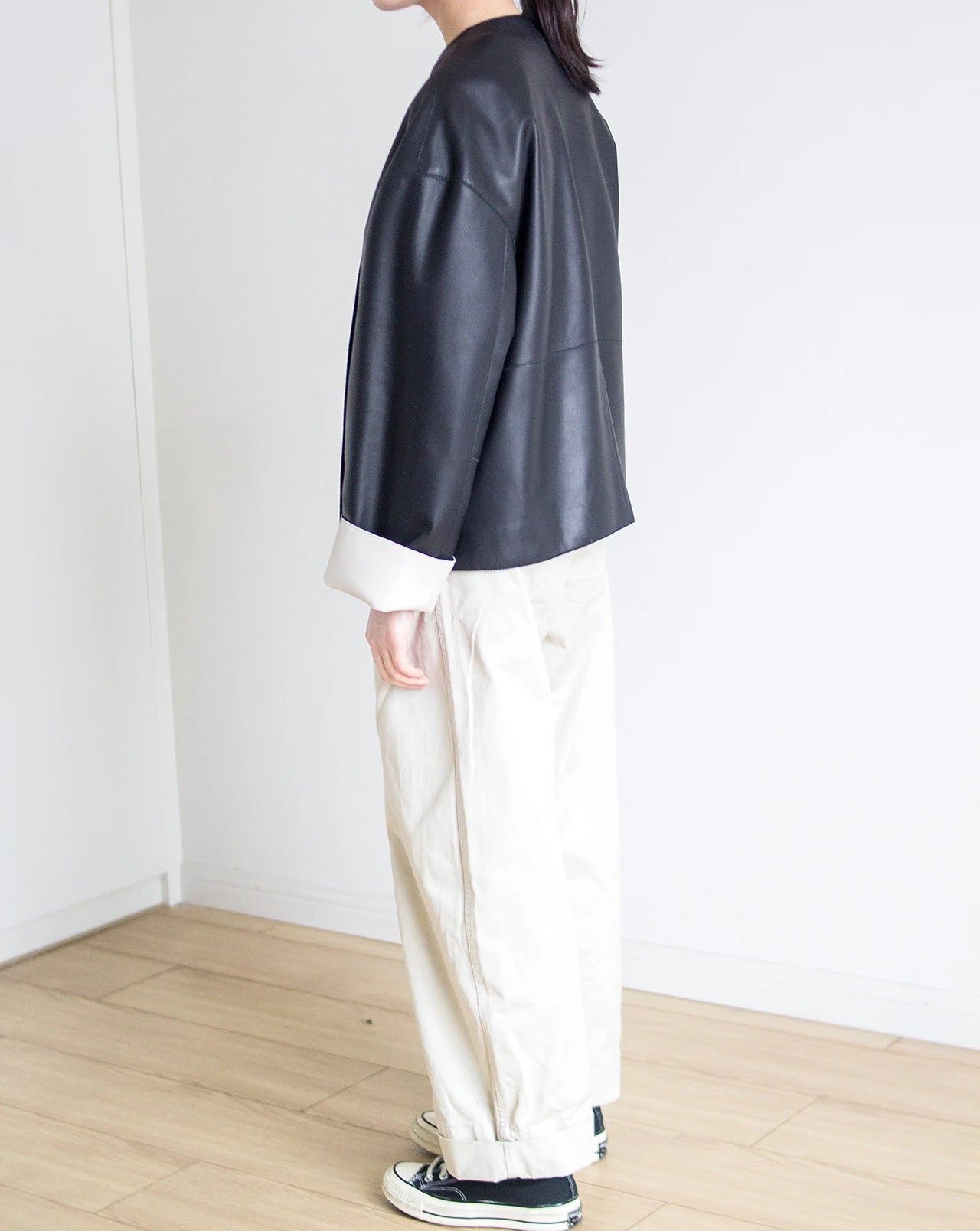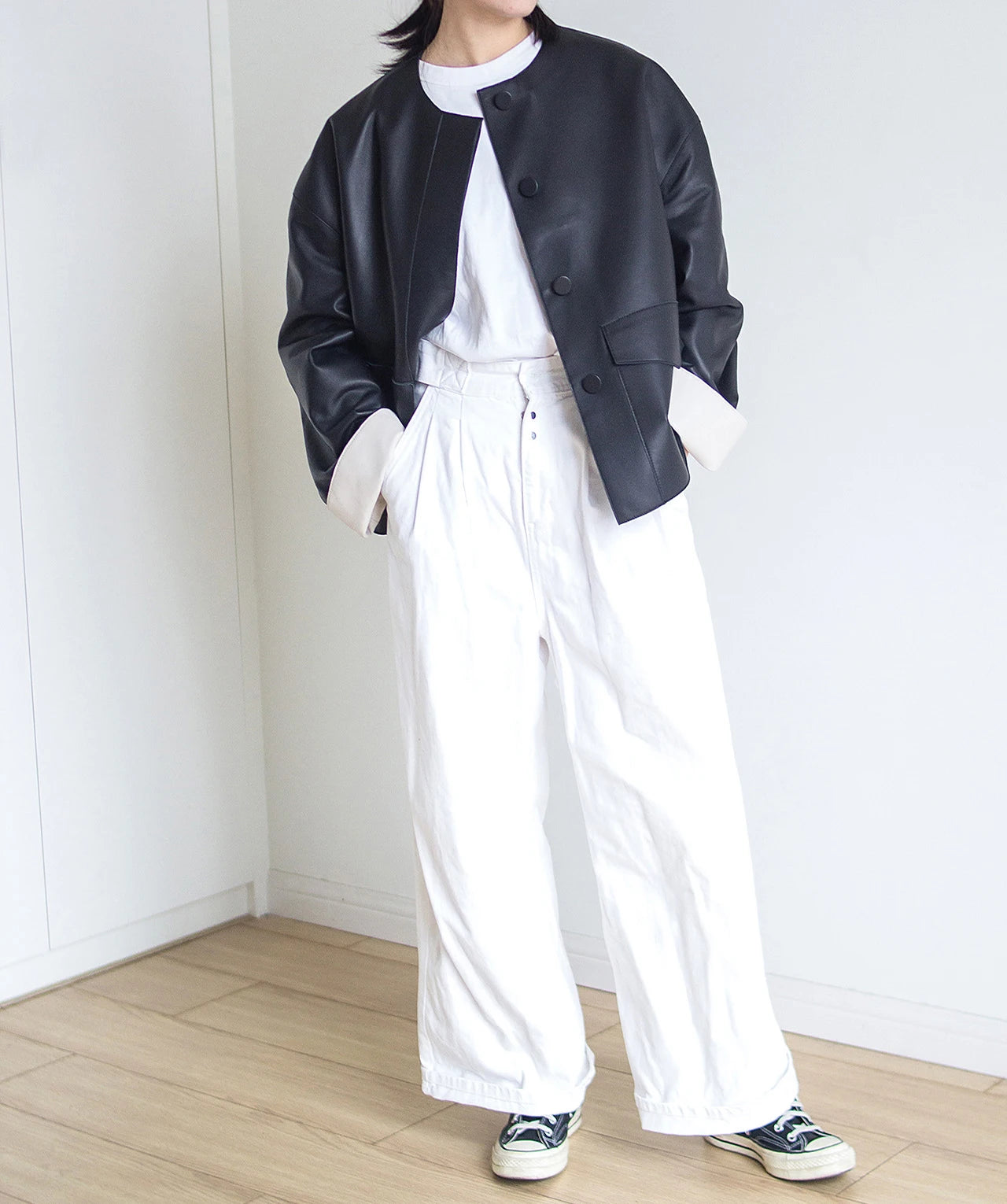 Women's Sheepskin Leather O-Neck Single Breasted Pocket Retro Loose Casual Jacket