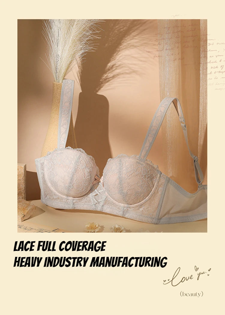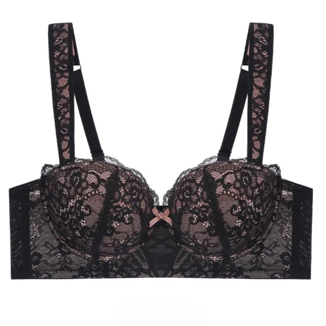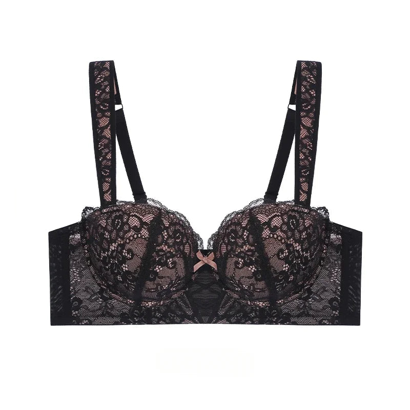 Black Sexy Thin Lace Top Up Push-up Big Chest Revealing Small Bra Underwear