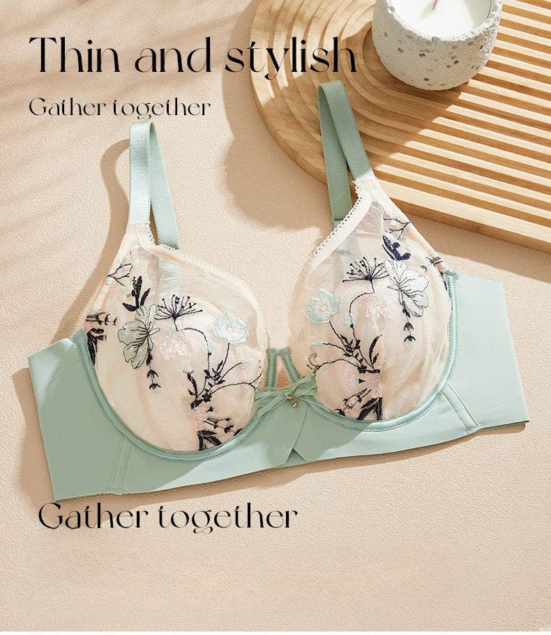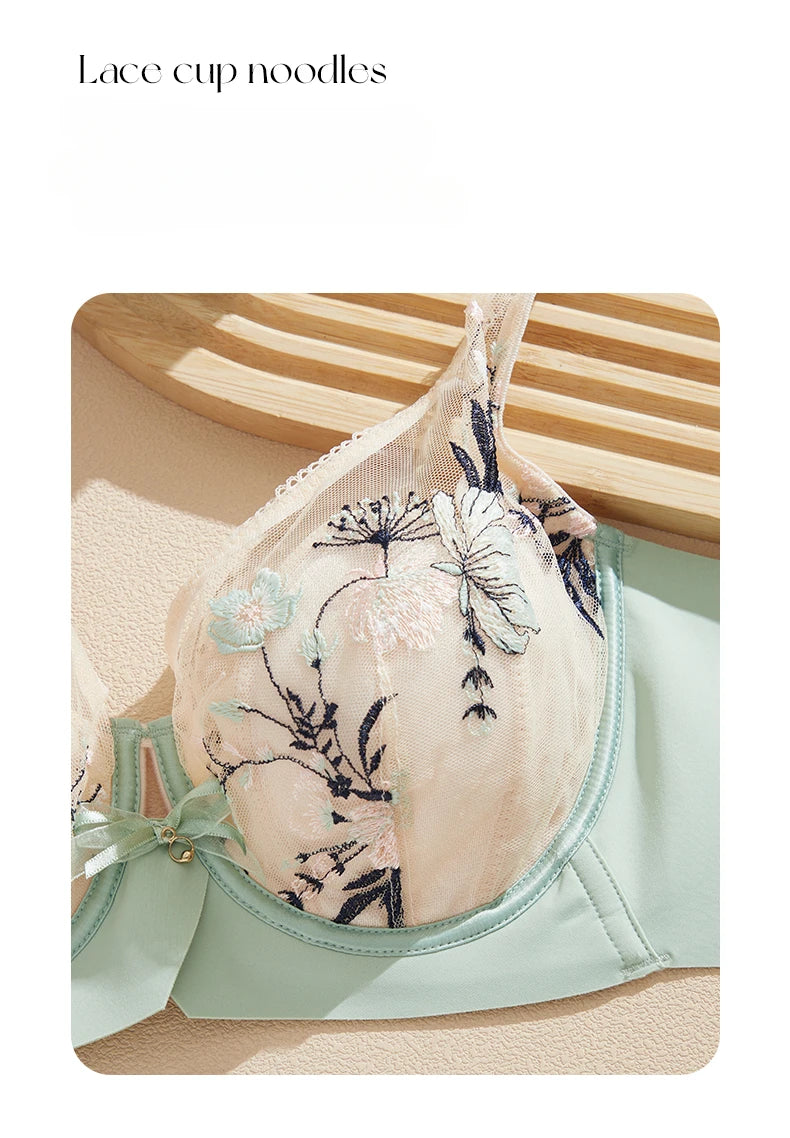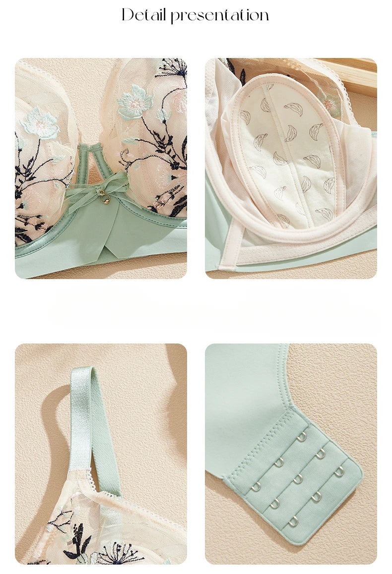 Sexy Embroidered Lace Three-Quarter Cup Plunging Underwire Everyday Bra