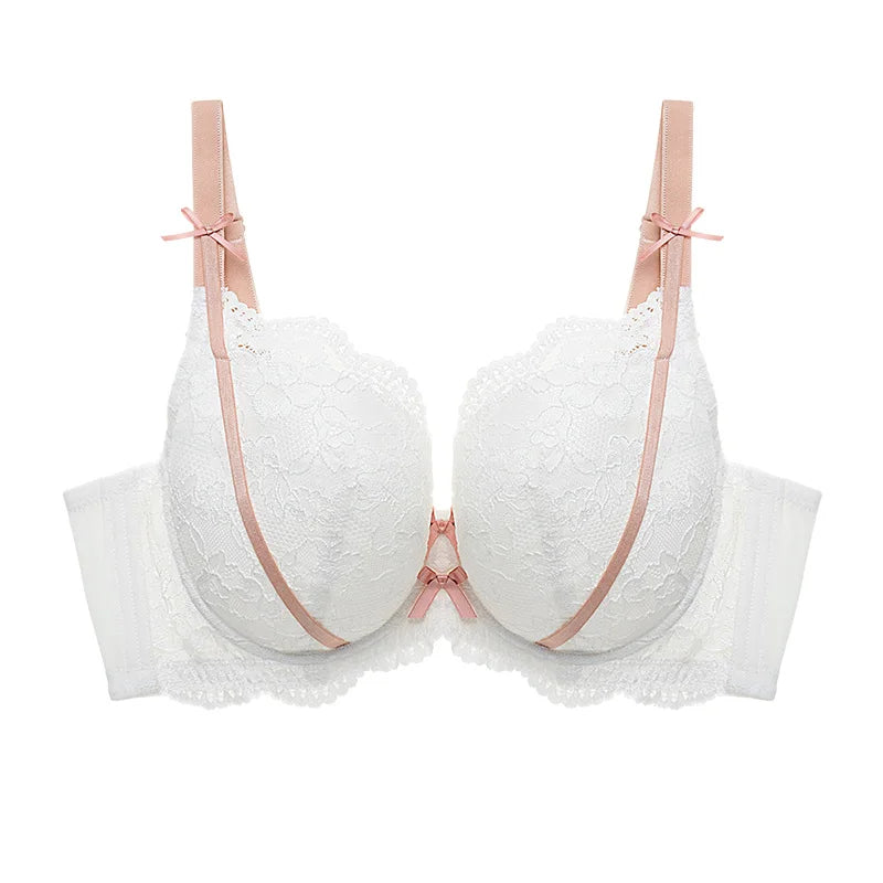White Anti-Sagging Top Support Thin Mold Cup Minimizer Lace Bras for Women