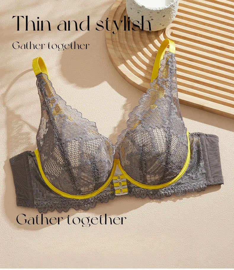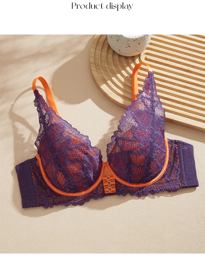 Women's Sexy Three Quarter Cup Plunge Unlined Underwire Lace Bra