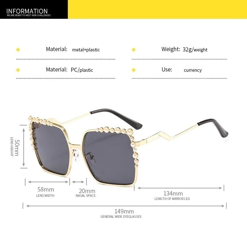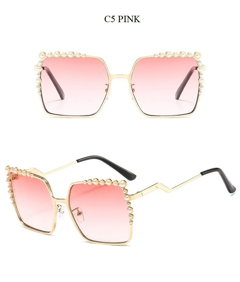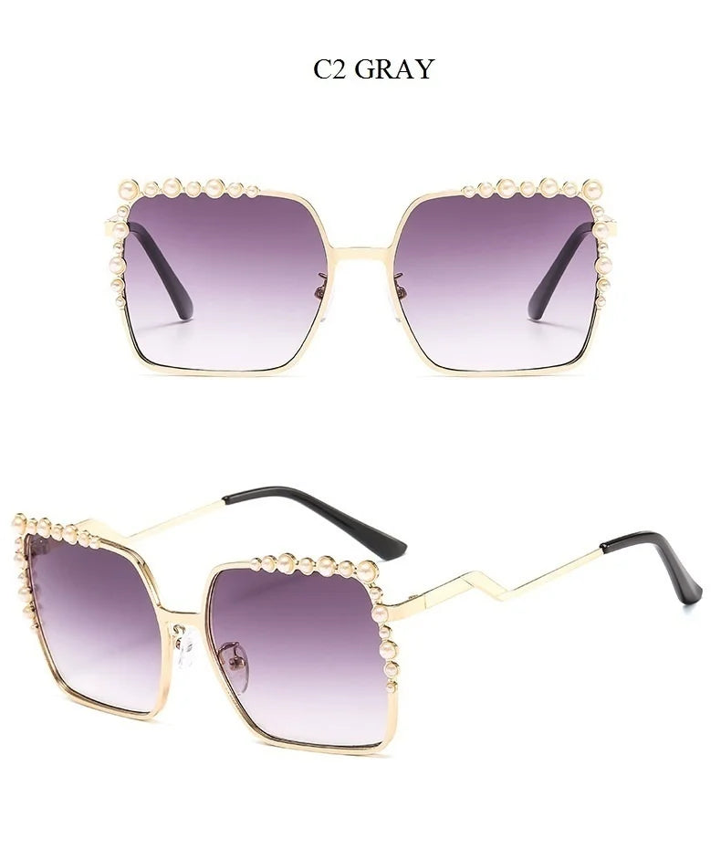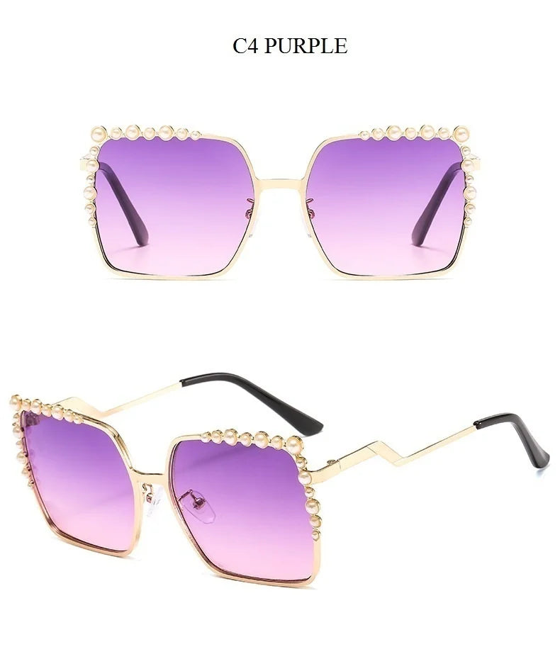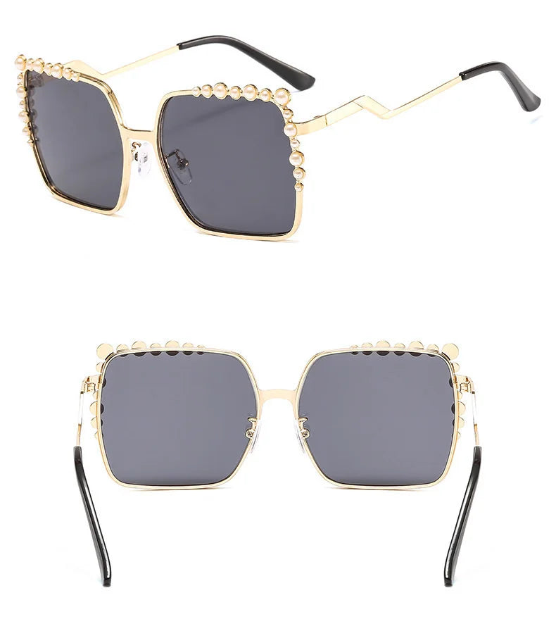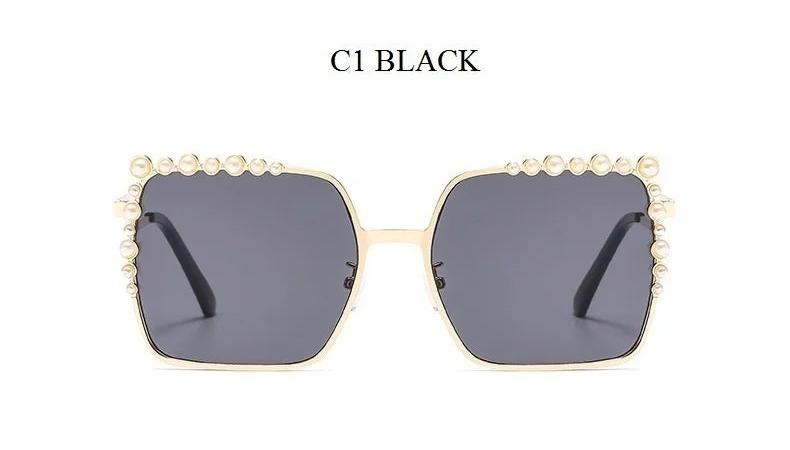 Designer Style Luxury Pearl Oversized Square Sunglasses for Women