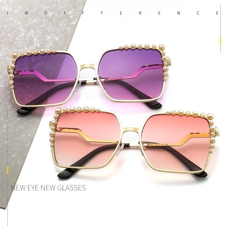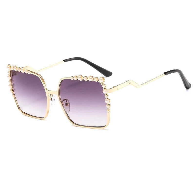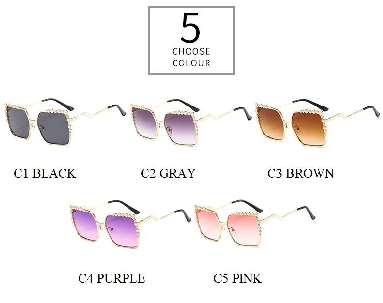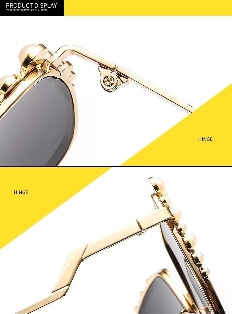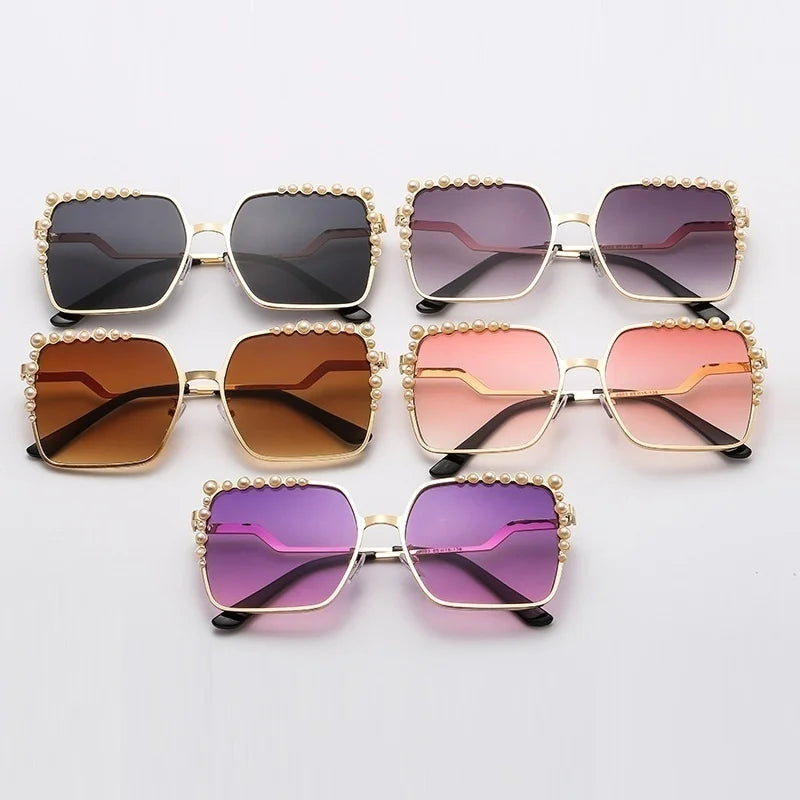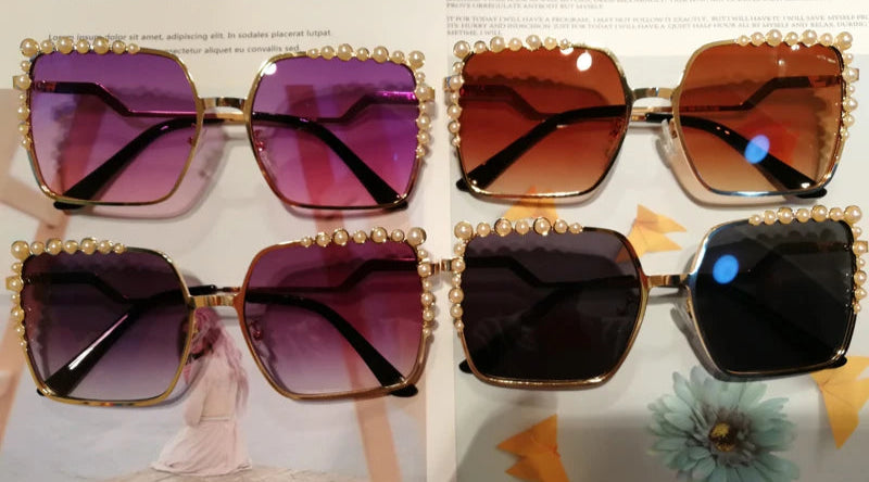 Designer Style Luxury Pearl Oversized Square Sunglasses for Women