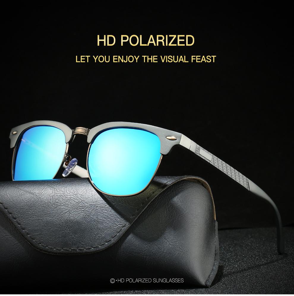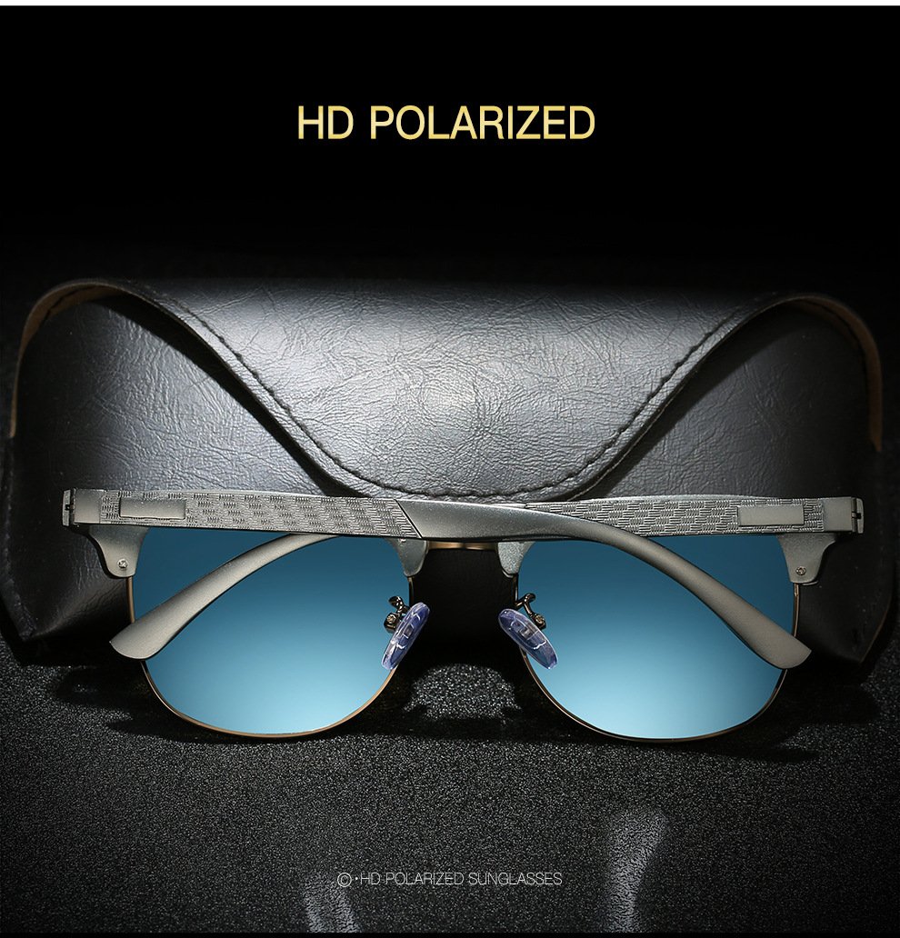 Semi-Rimless Polarized Retro-Styled Designer Sunglasses for Men