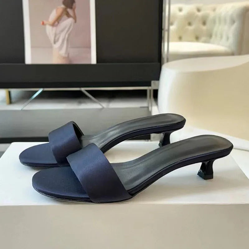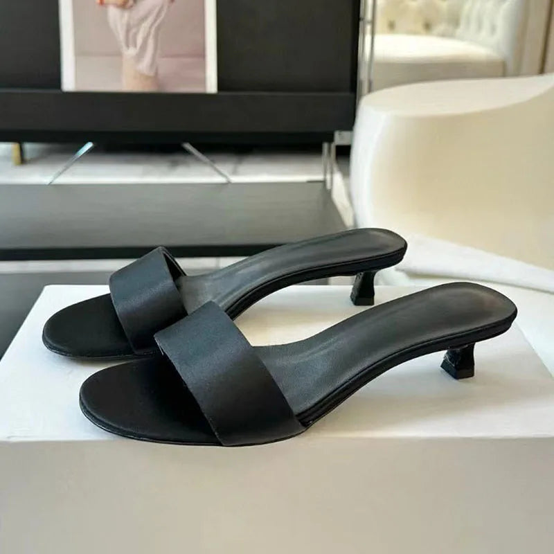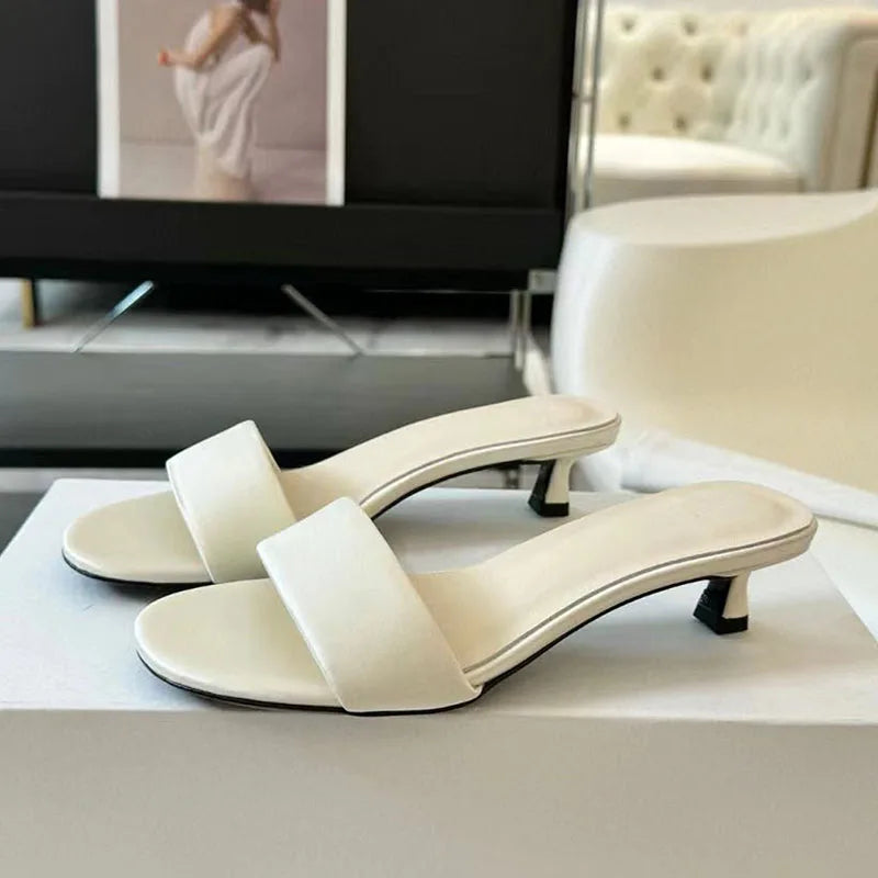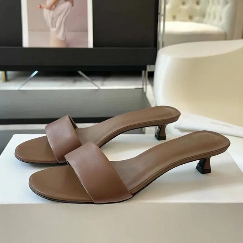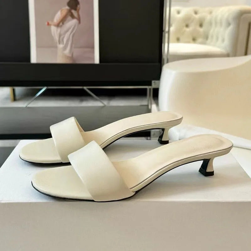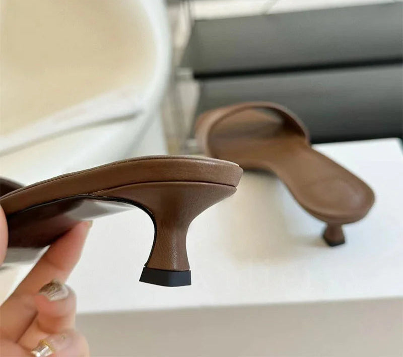 Genuine Leather One-Strap Low Kitten Heels Runway Slippers for Women