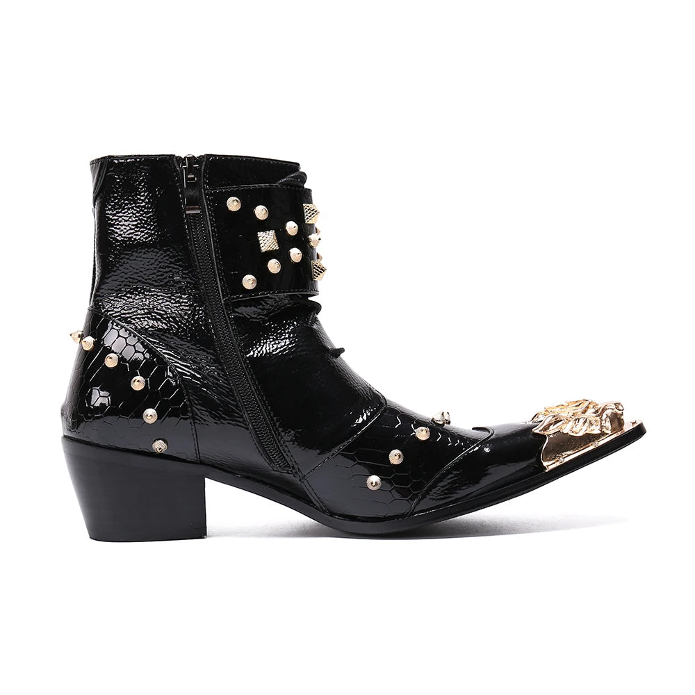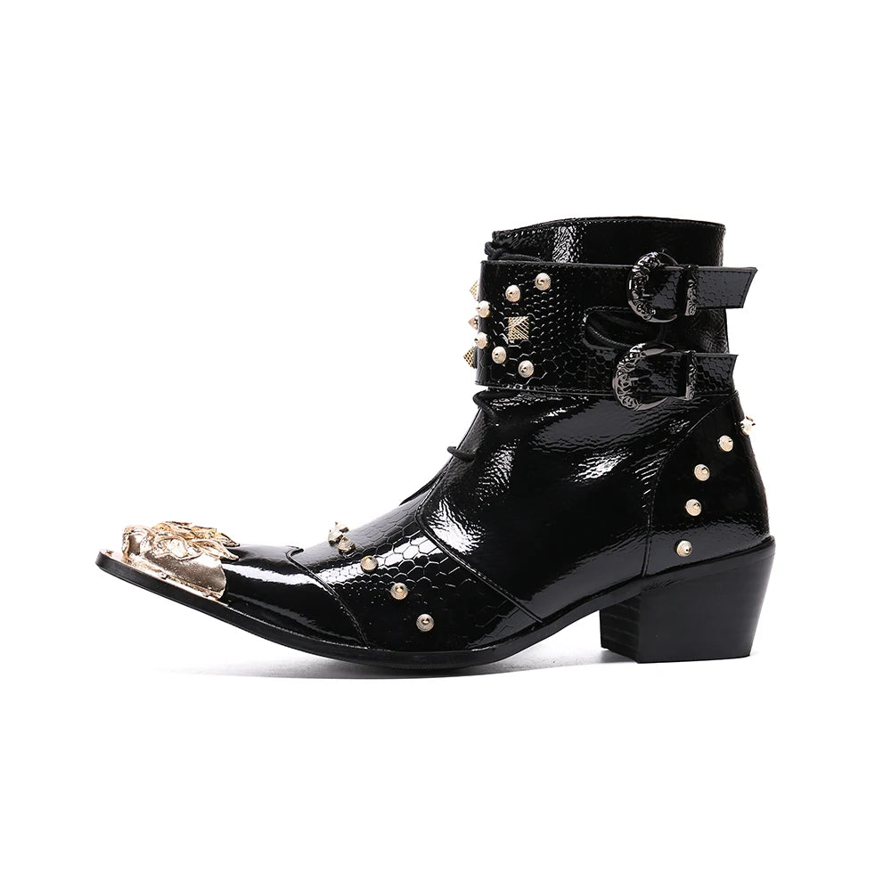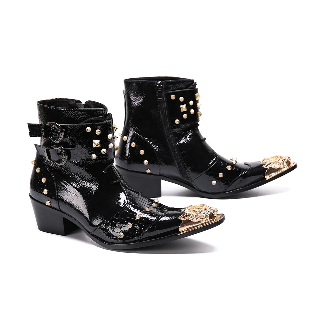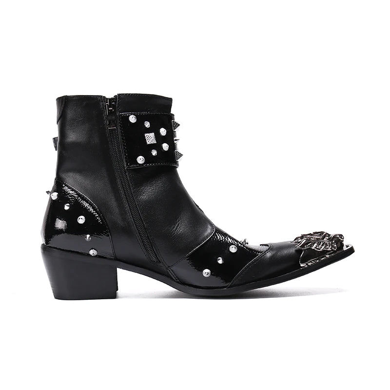 Italian Style Real Leather Pointed Toe Buckle Rivets Ankle Dress Boots
