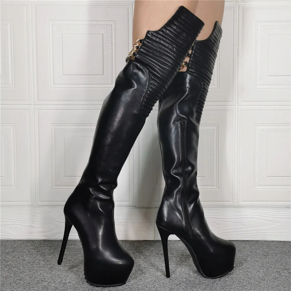 Women's Gold Chain Super High Thin Heel Platform Thigh High Boots
