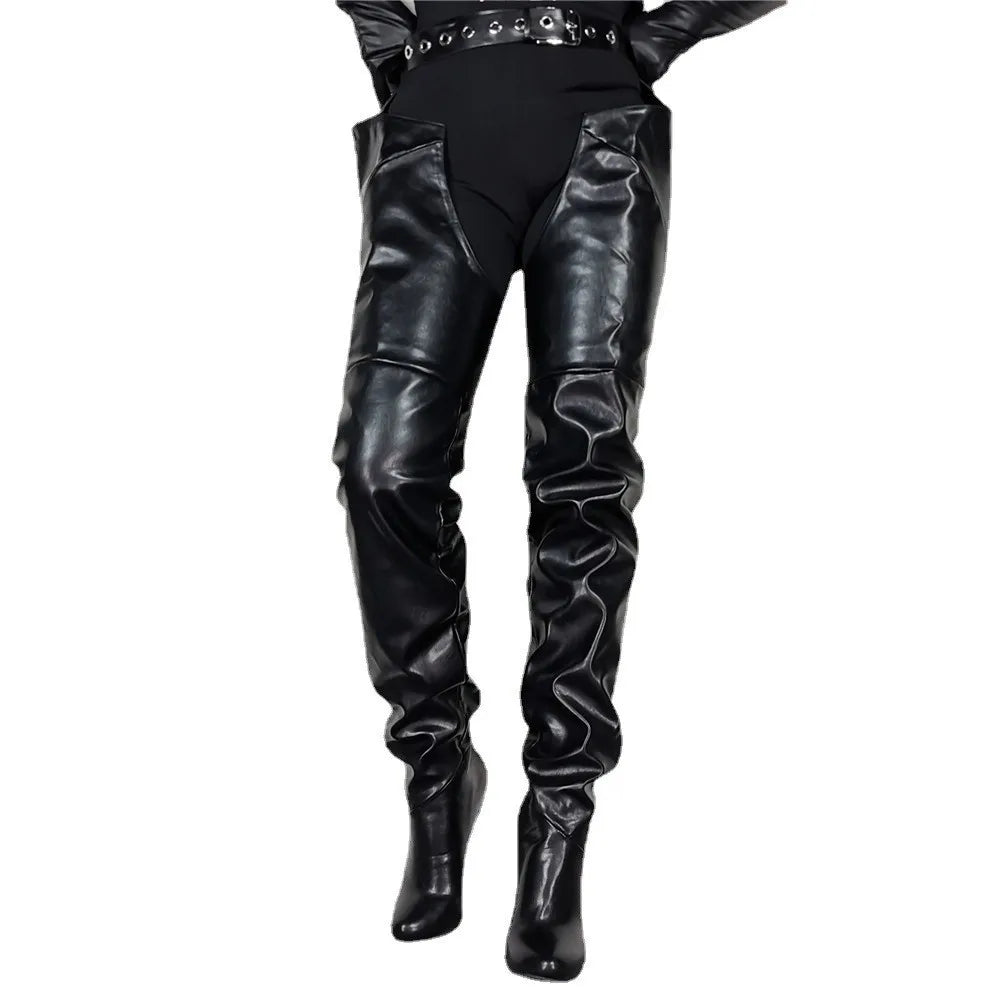 Women's Plus Size Black High Heels Thigh High Wide Top Boots