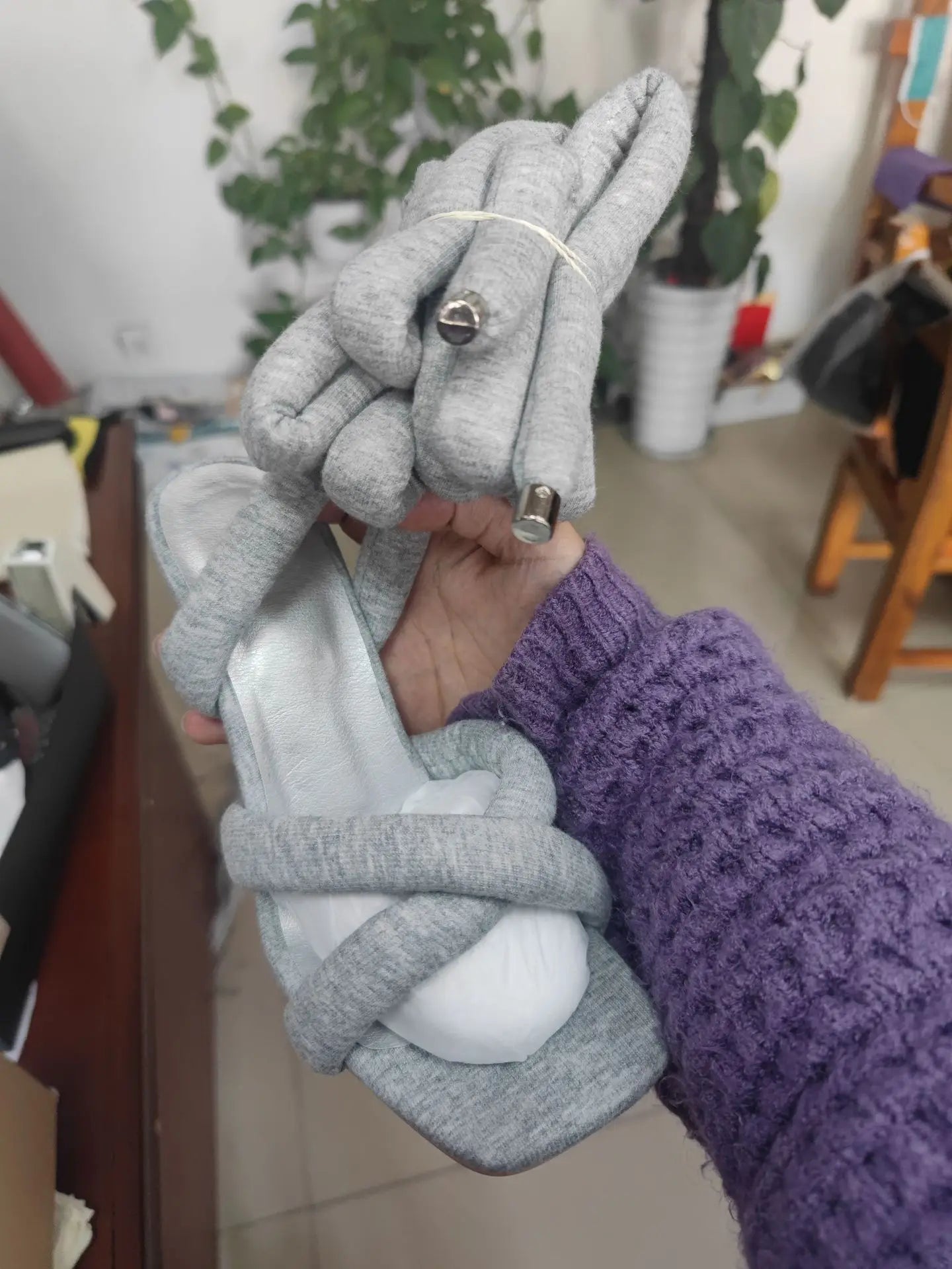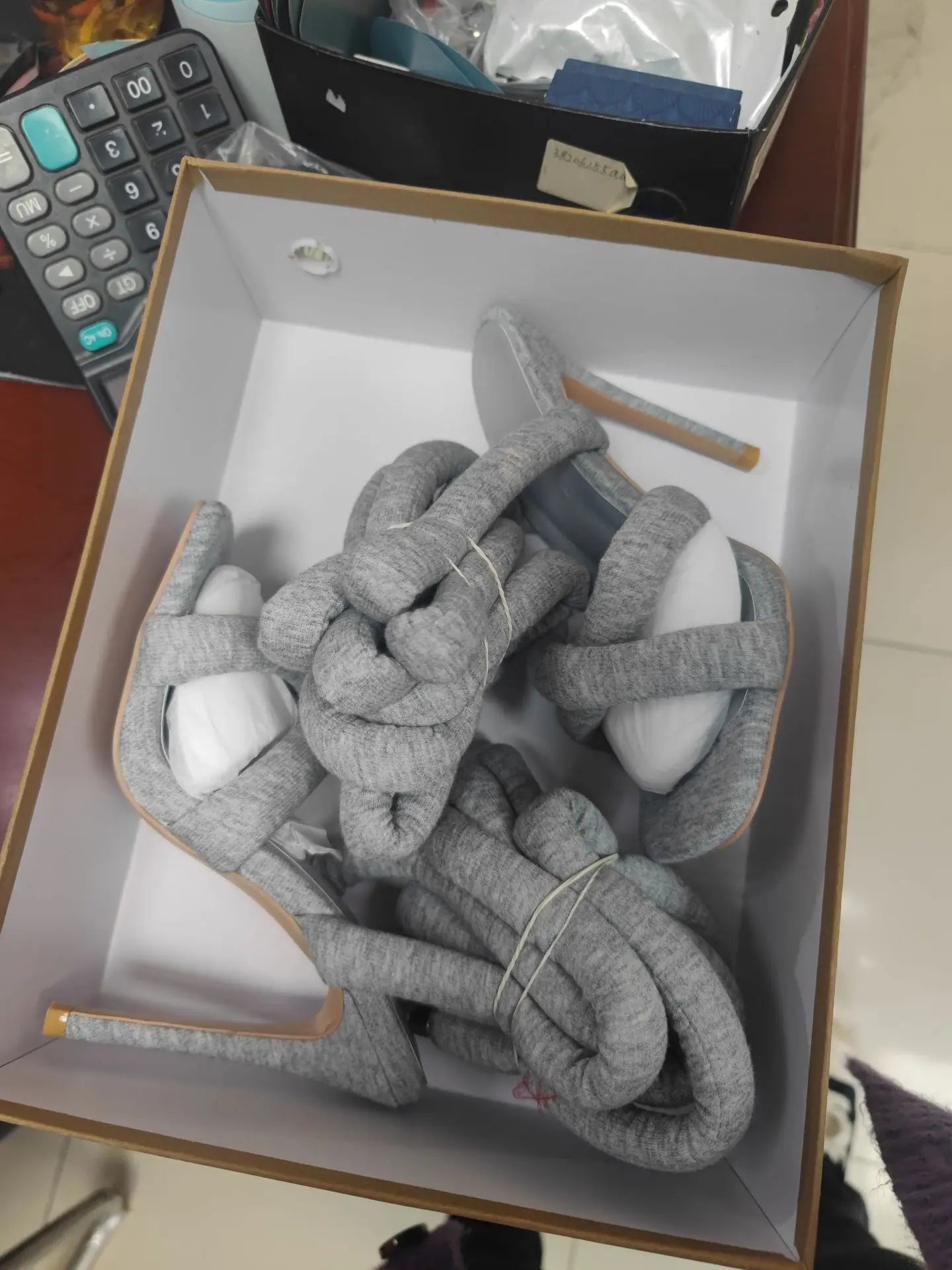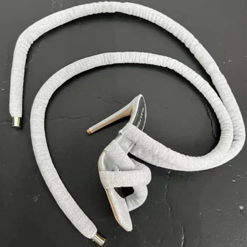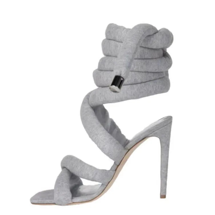 Women's Square Toe Cloth Rope Stiletto Super High Heel Cross Ankle Strap Sandals
