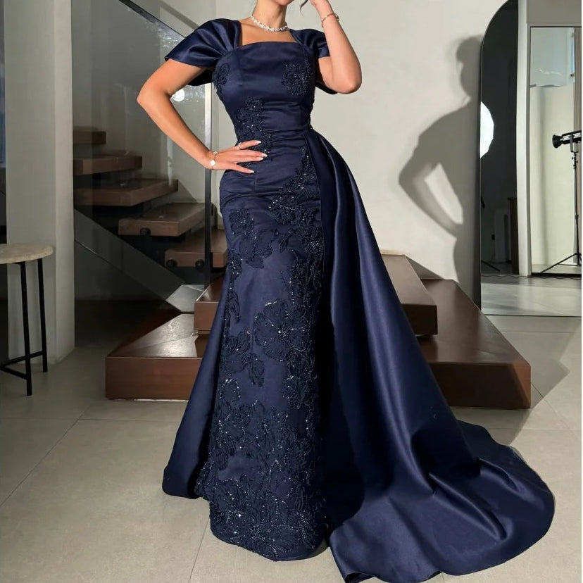 Looking for a fashionable prom dress? Then this is for you. The sleek design with polyester satin fabric makes it comfortable and perfect for party wear. The floral patterns make a style statement while the mermaid silhouette gives a flattering look. Order now!
