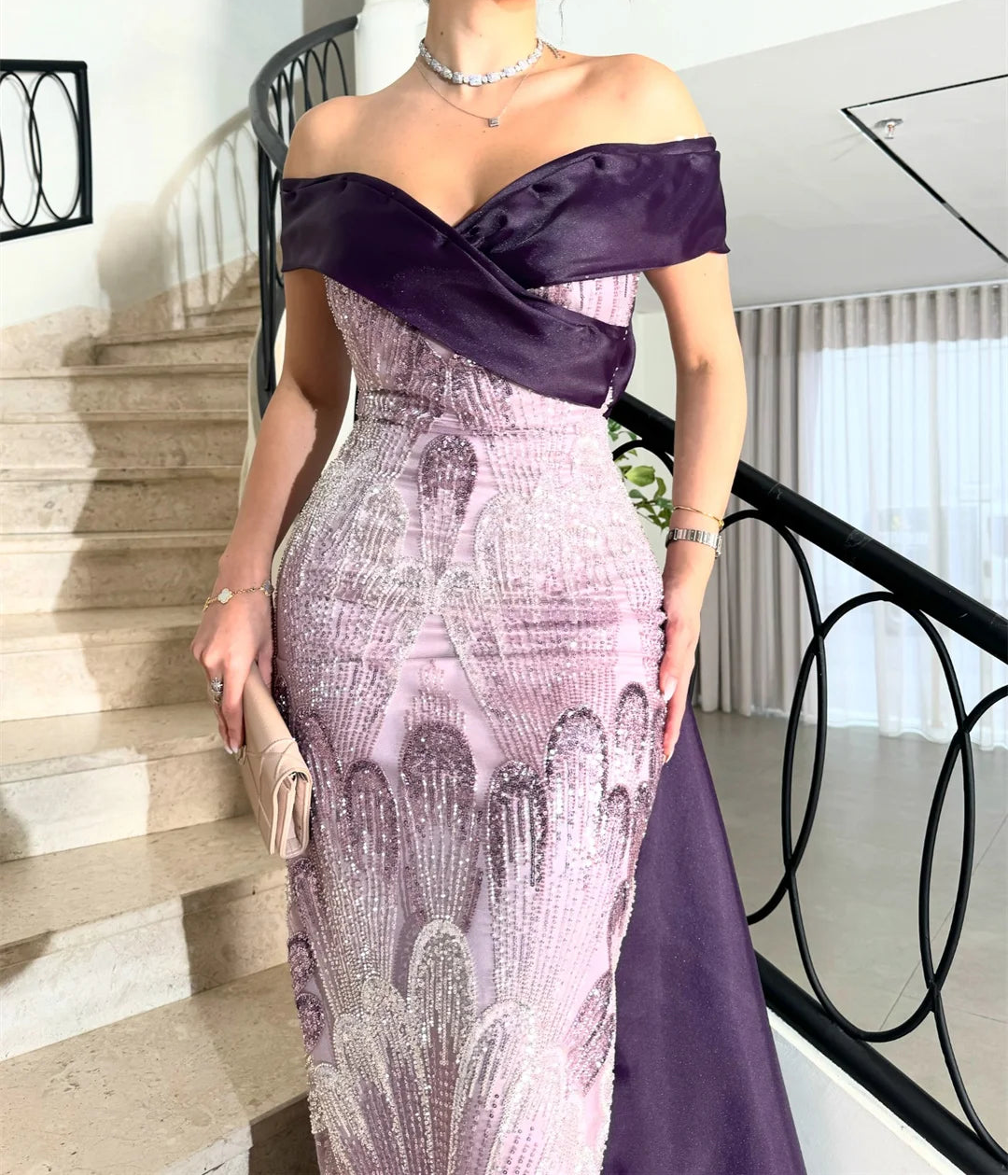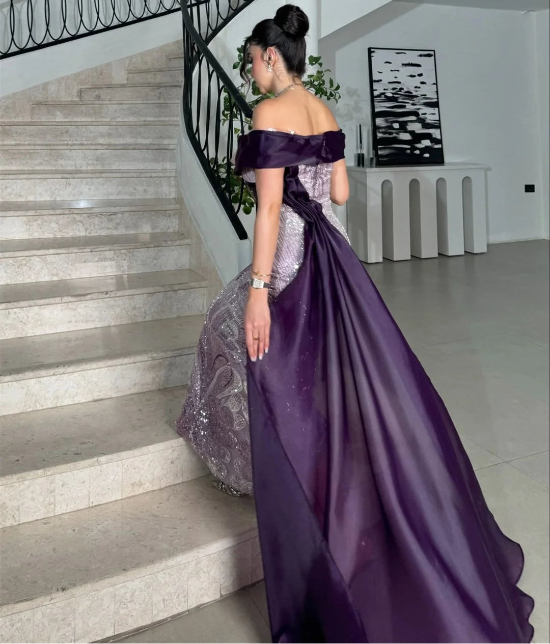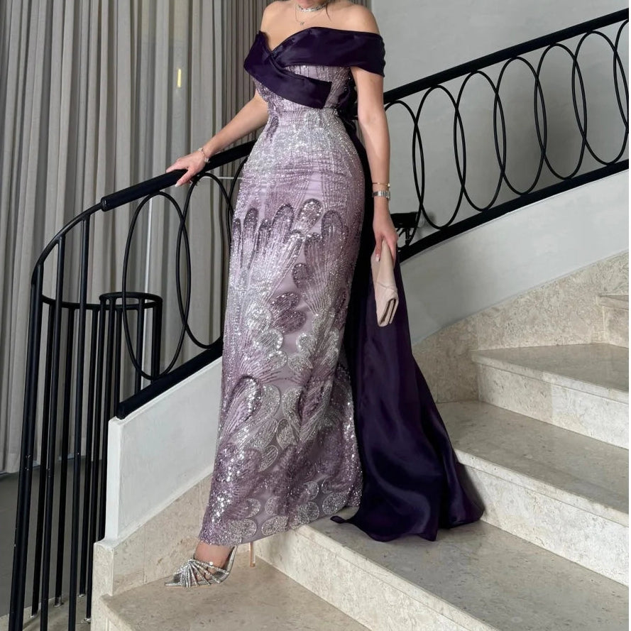 Women's Luxury Shiny Off-shoulder Mermaid Party Prom Gown Dress