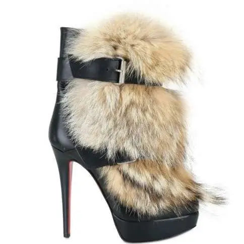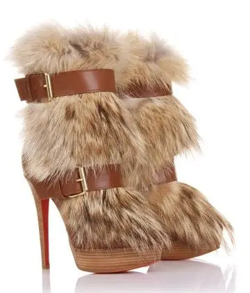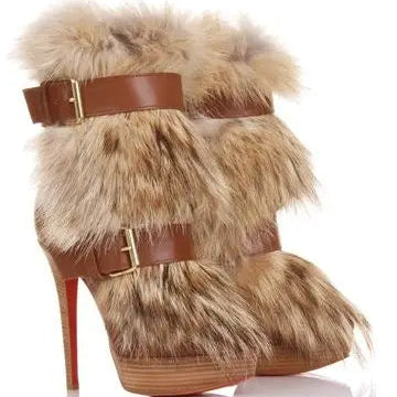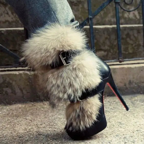 Ladies Winter Warm Casual Thick Sole Metal Buckle Furry Stiletto Boots