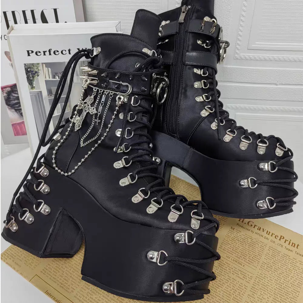 If you are looking for striking women's boots to pair with punk outfits, then this is for you. Made of a microfiber upper and a rubber outsole that ensures durability and a stylish look, these women’s boots have thick chunky heels and a platform that makes your footsteps comfortable. The rivets and the buckle straps make it a fabulous accessory. Elevate your style effortlessly!