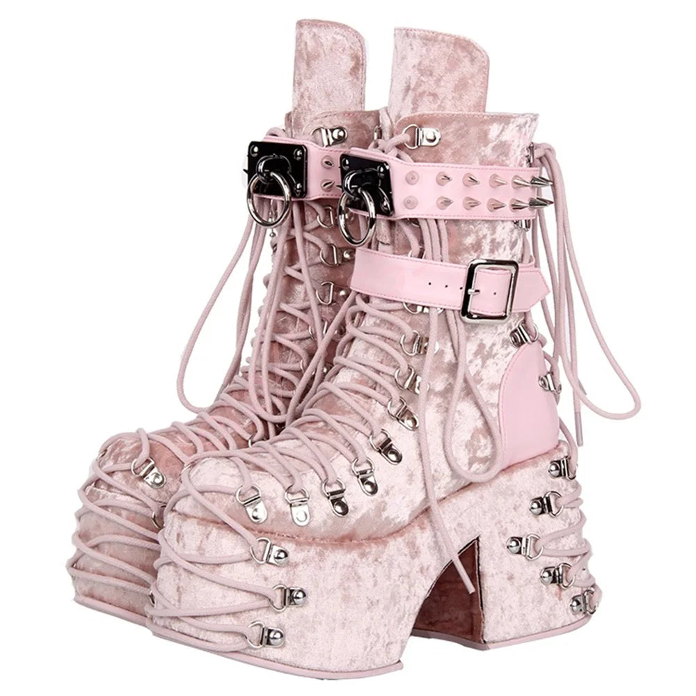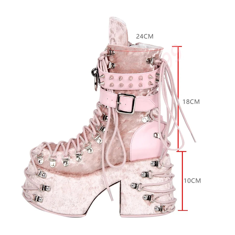 Model Number: Pink Platform Rivet Strappy Short Boots