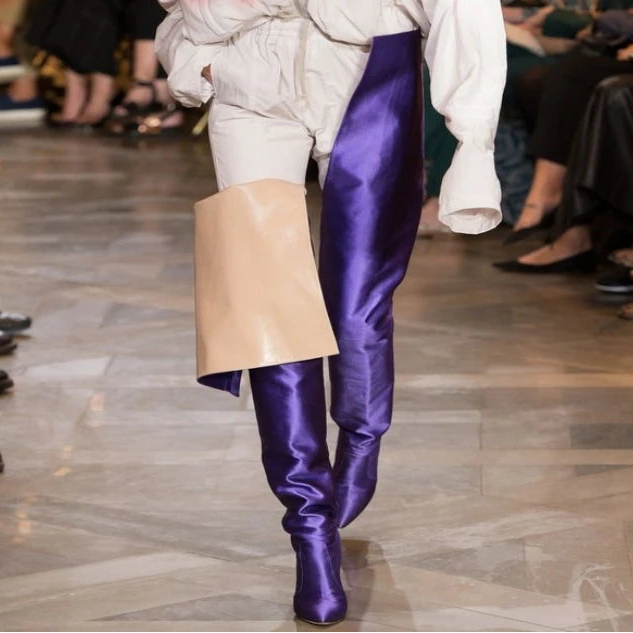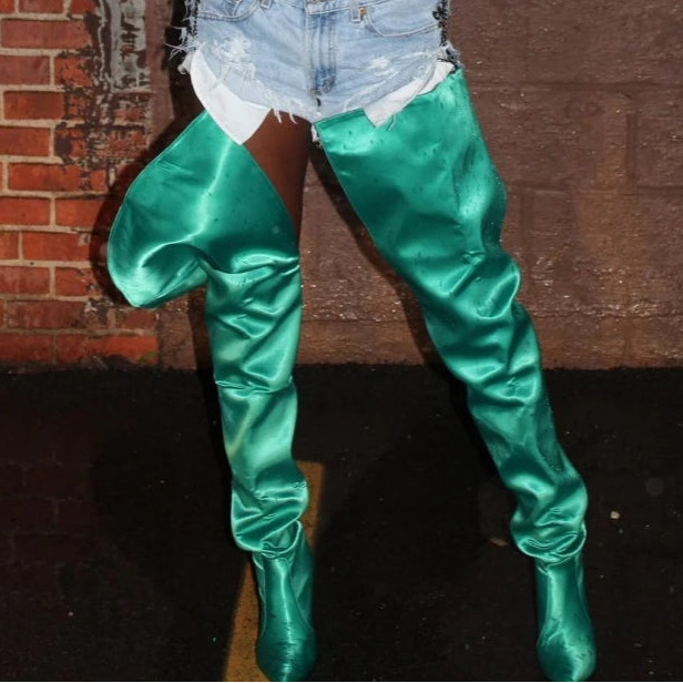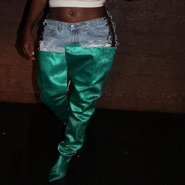 These fantastic women's thigh-high boots are designed keeping in mind the latest trends and to suit club partywear outfits. Featuring a satin upper and rubber outsole, it offers both durability and style. It is a fabulous accessory with pointed toes, thin high heels and a solid color finish that make you look great and stylish. A must-have addition to your footwear collection.