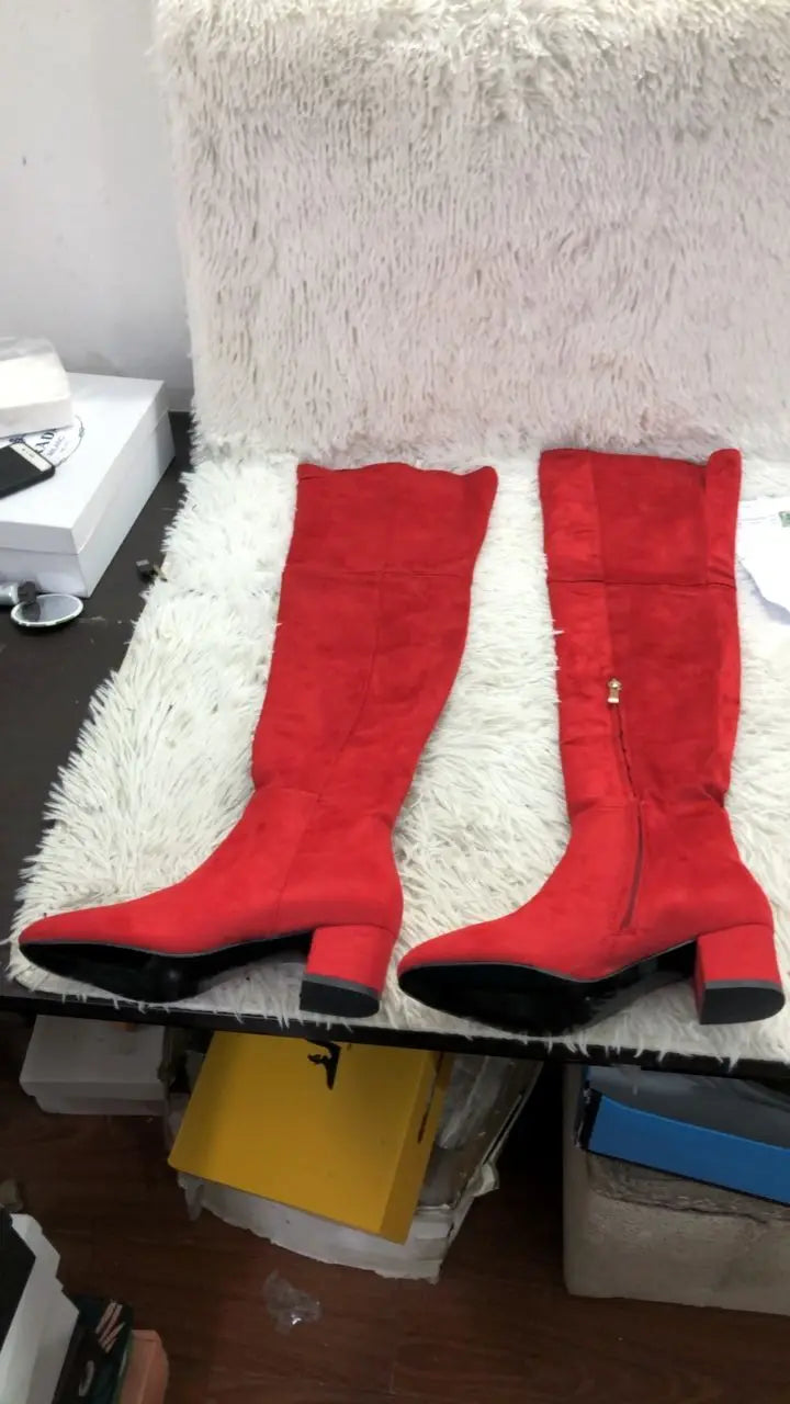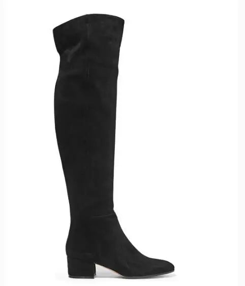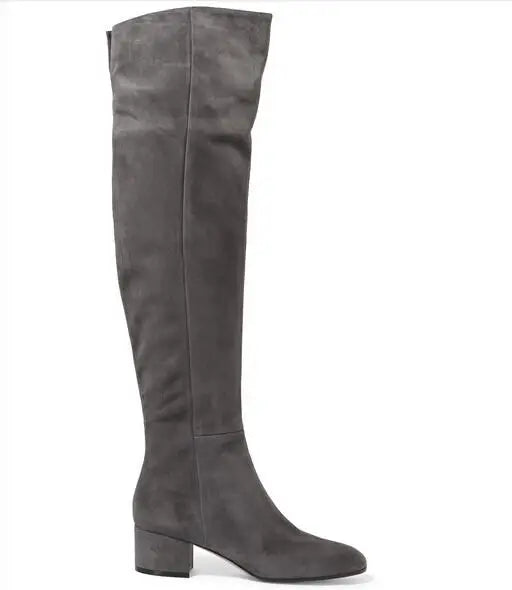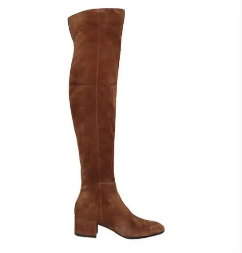 Women's Winter Stretch Suede Round Toe Side Zipper Over The Knee Boots