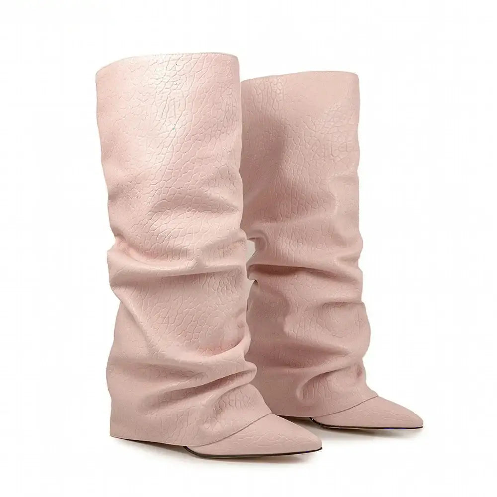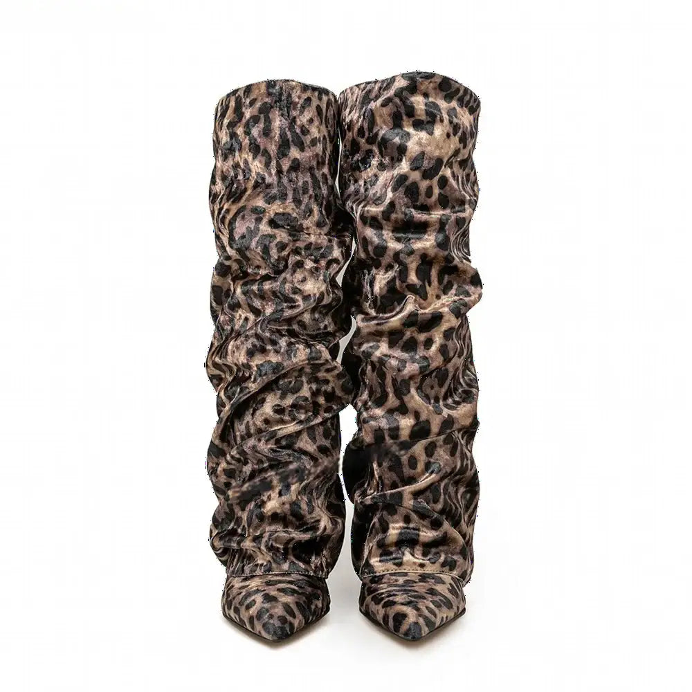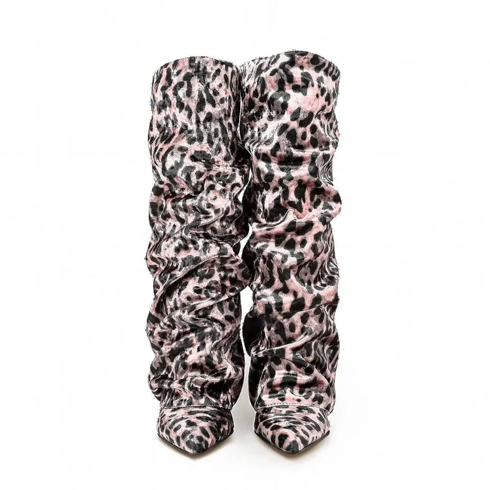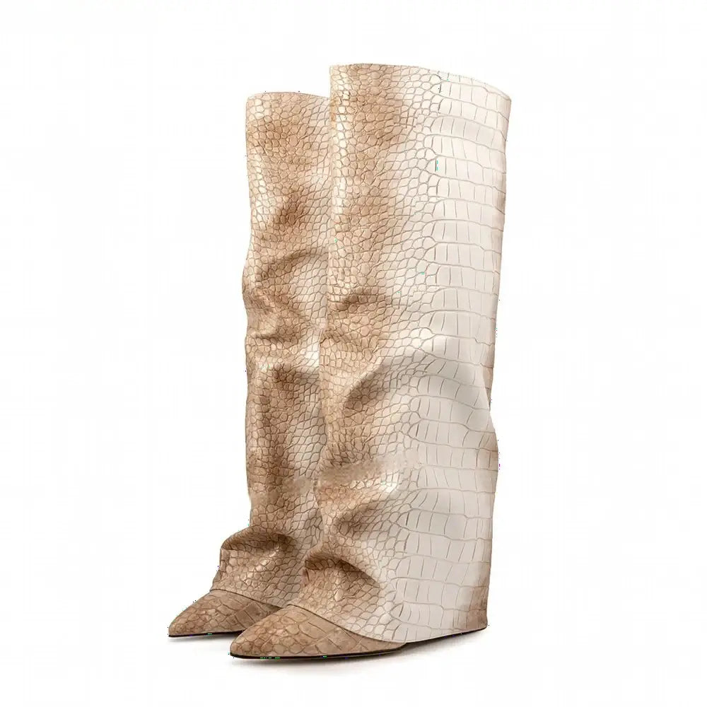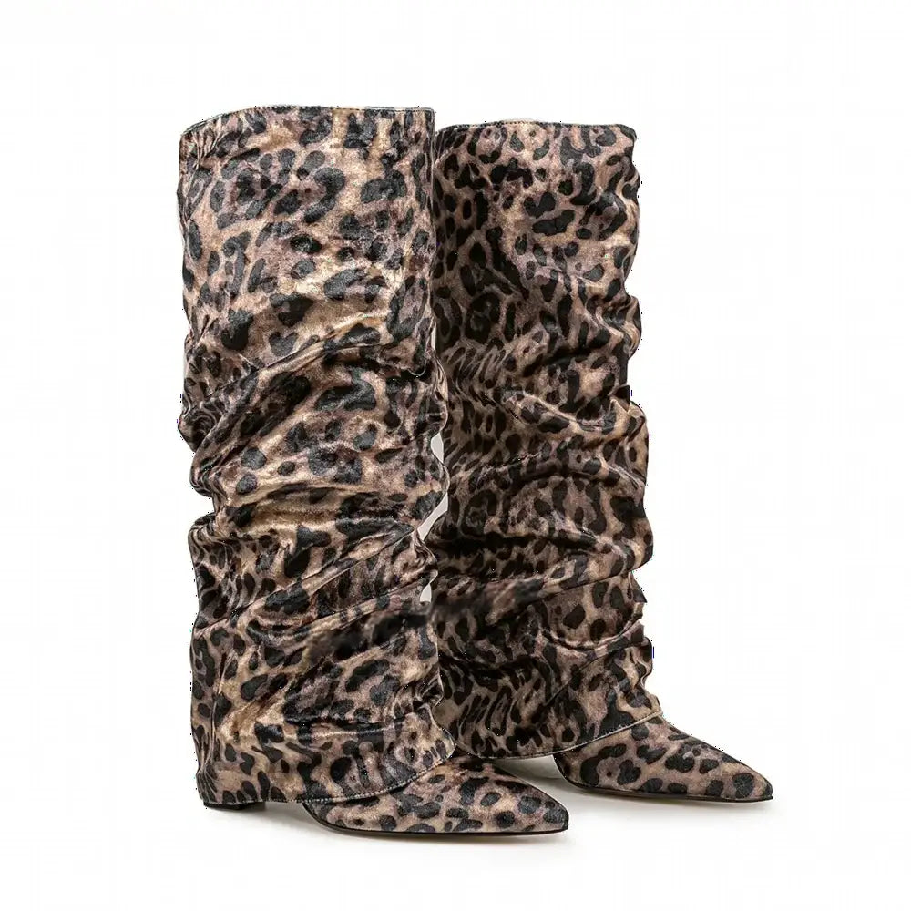 Women's Autumn Fashion Pointed Toe Wedge Heel Printed Knee-high Boots