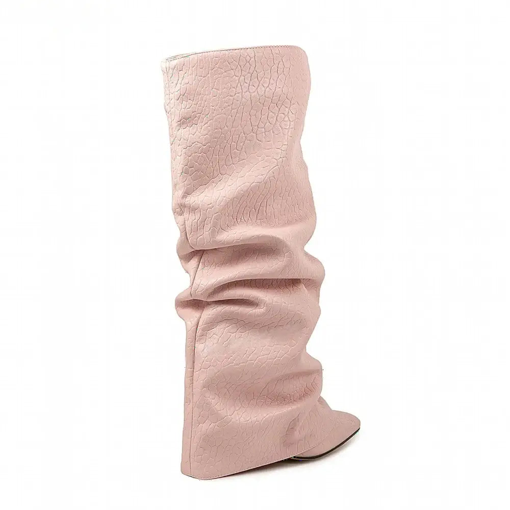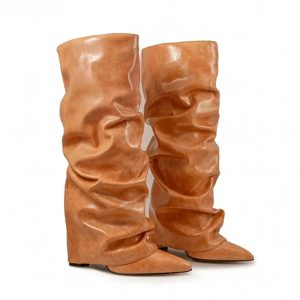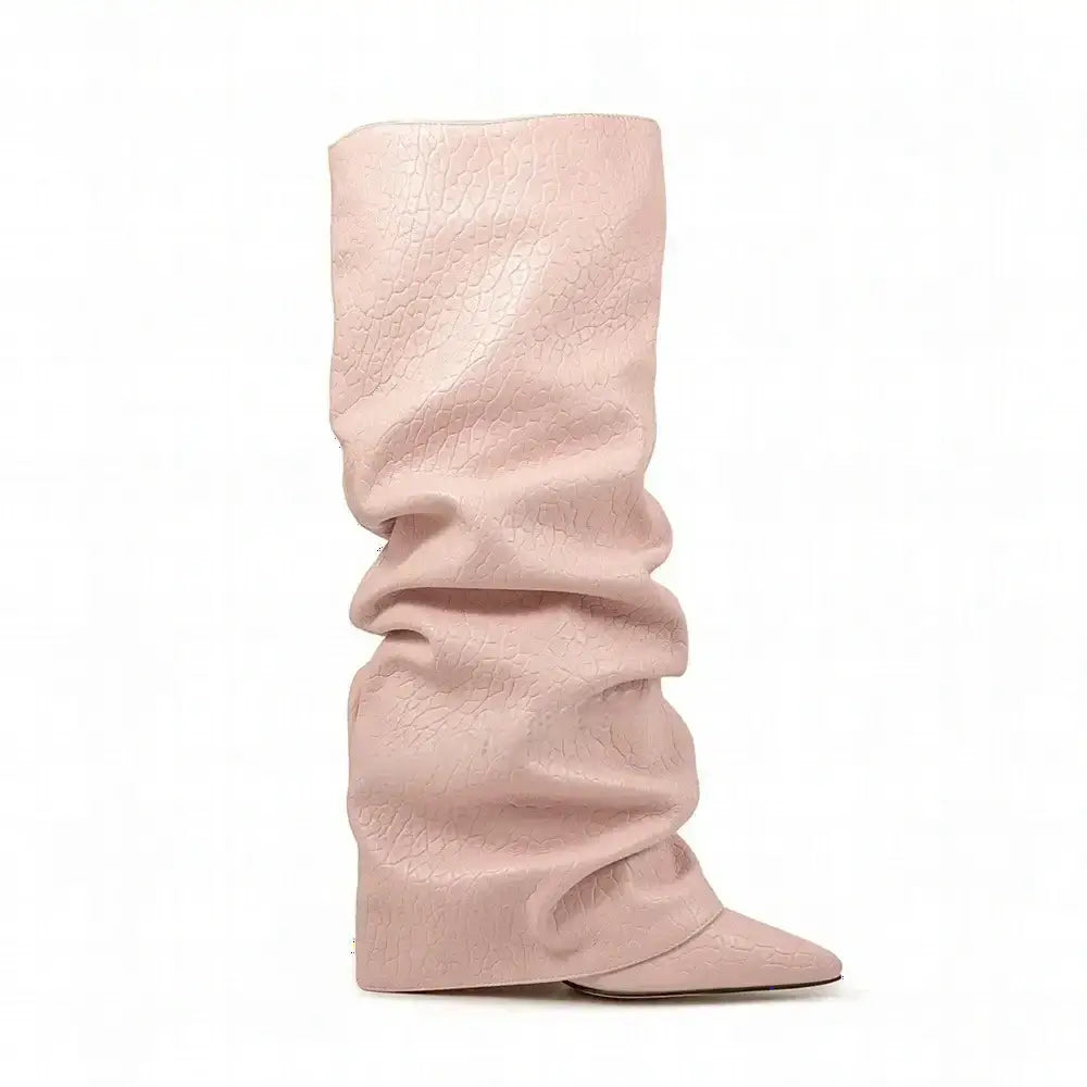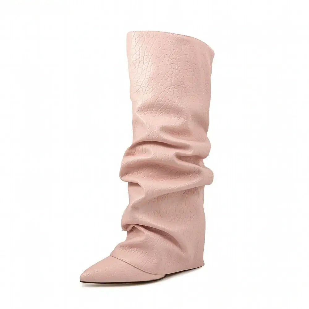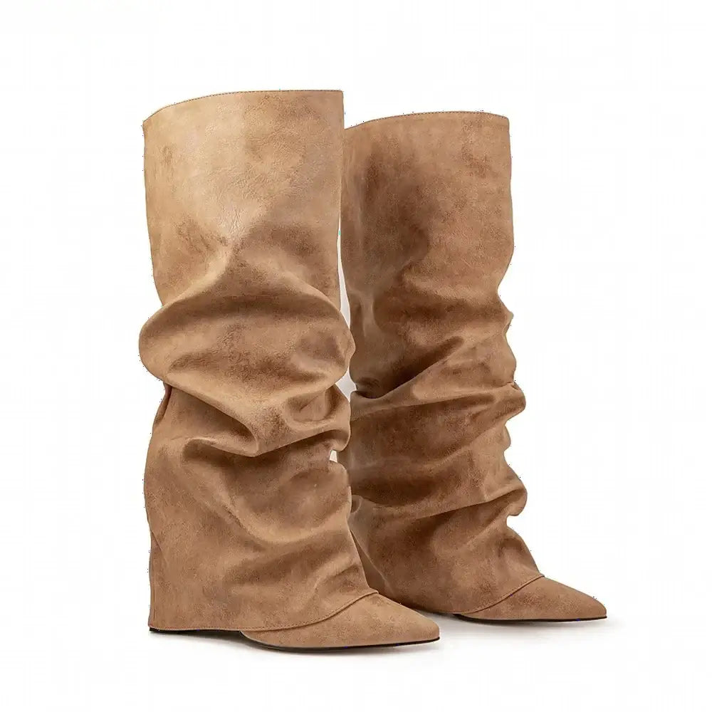 Women's Autumn Fashion Pointed Toe Wedge Heel Printed Knee-high Boots