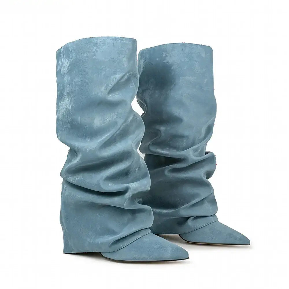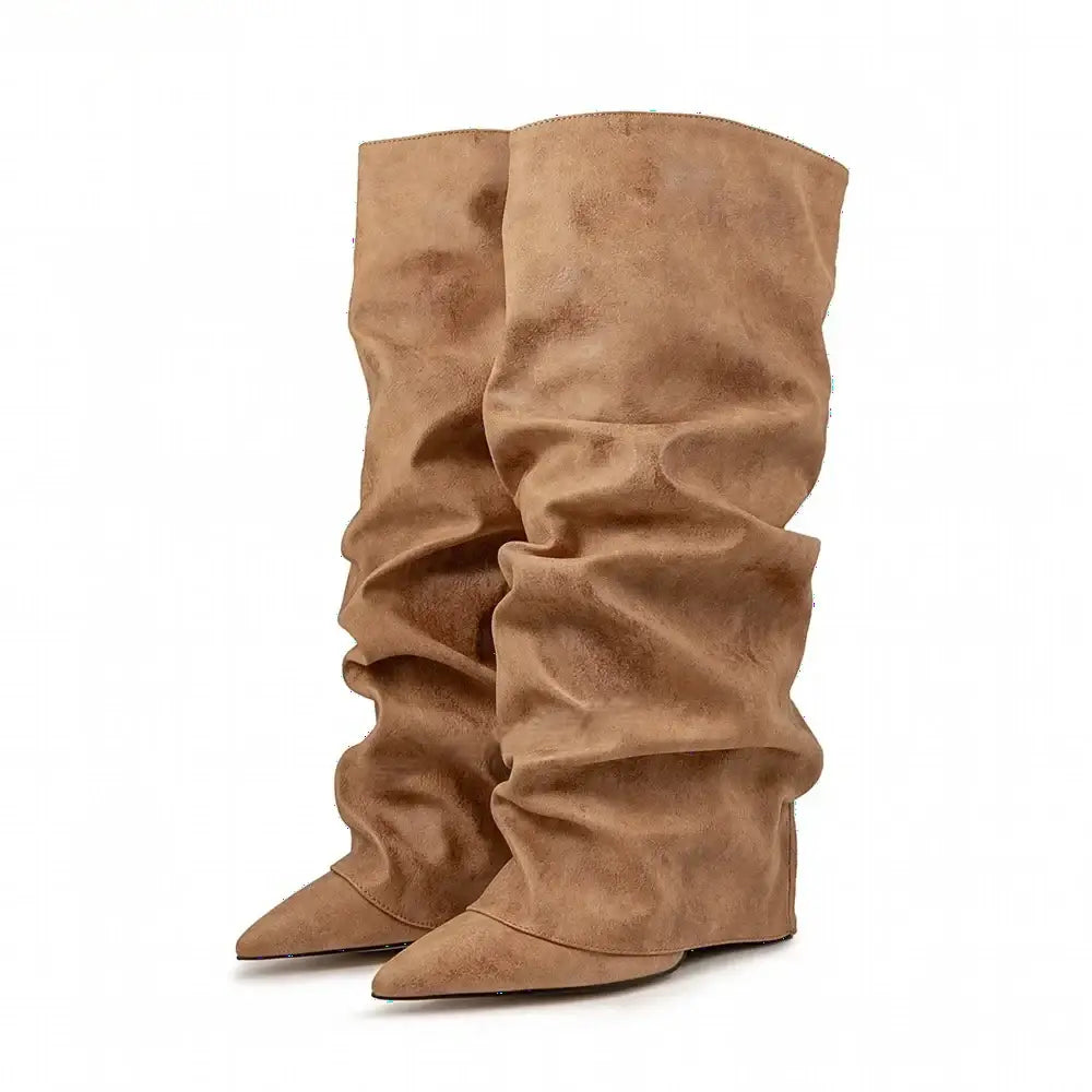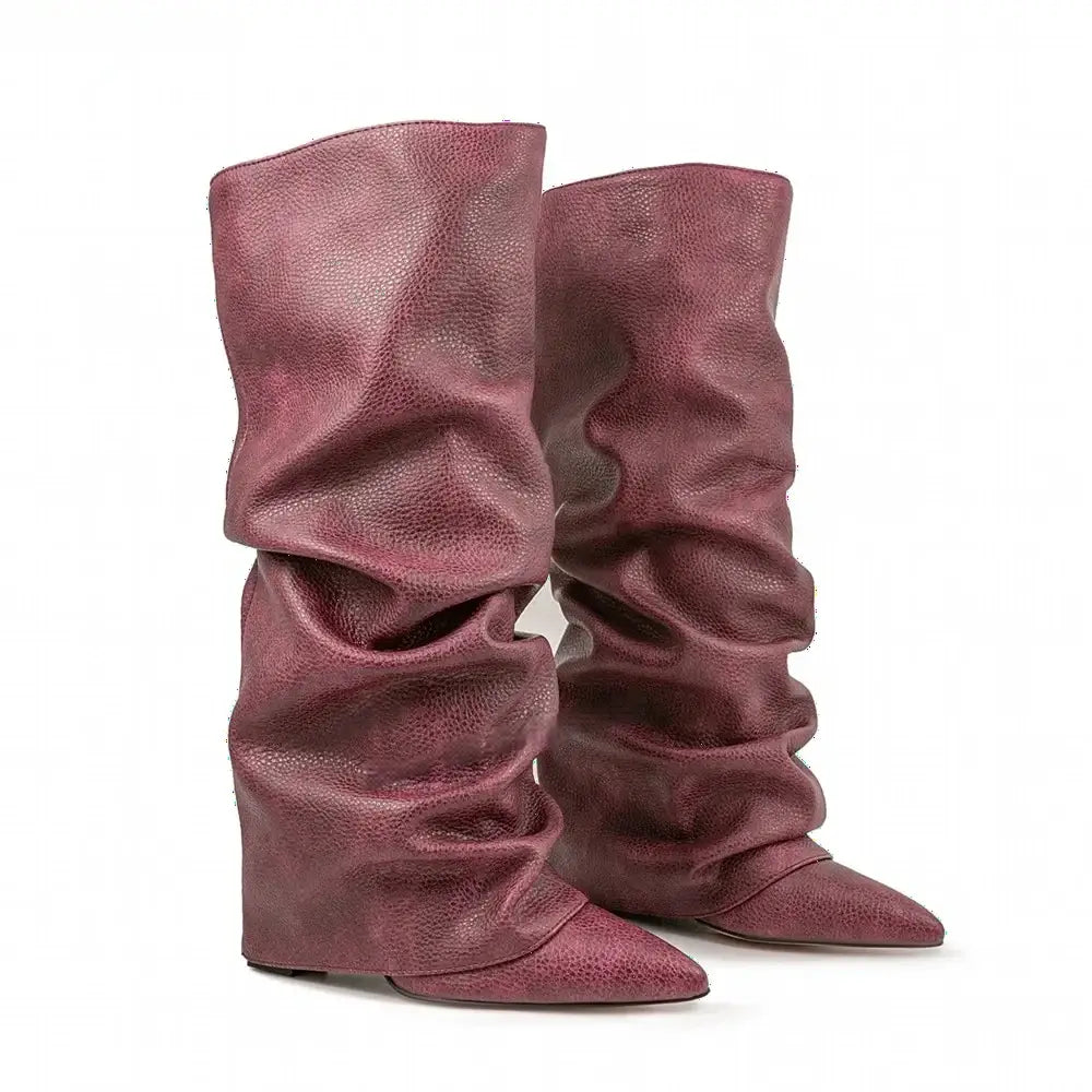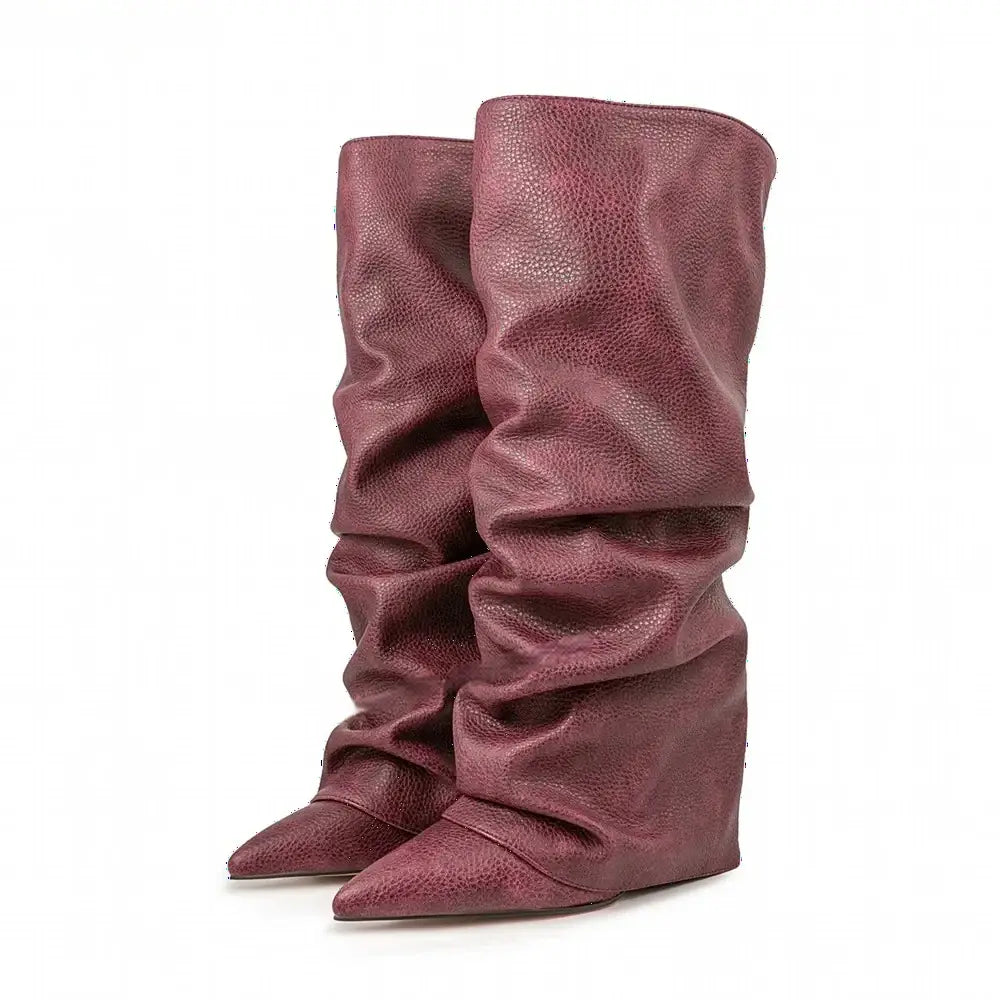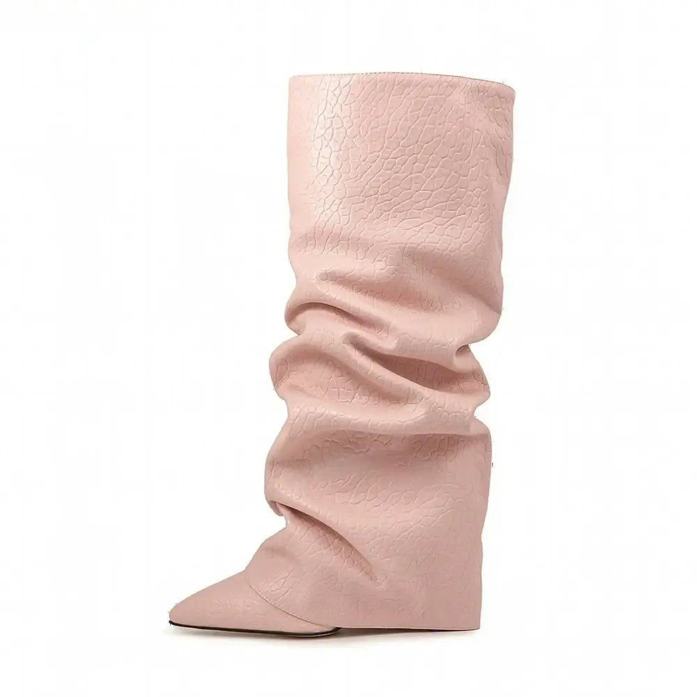 Women's Autumn Fashion Pointed Toe Wedge Heel Printed Knee-high Boots