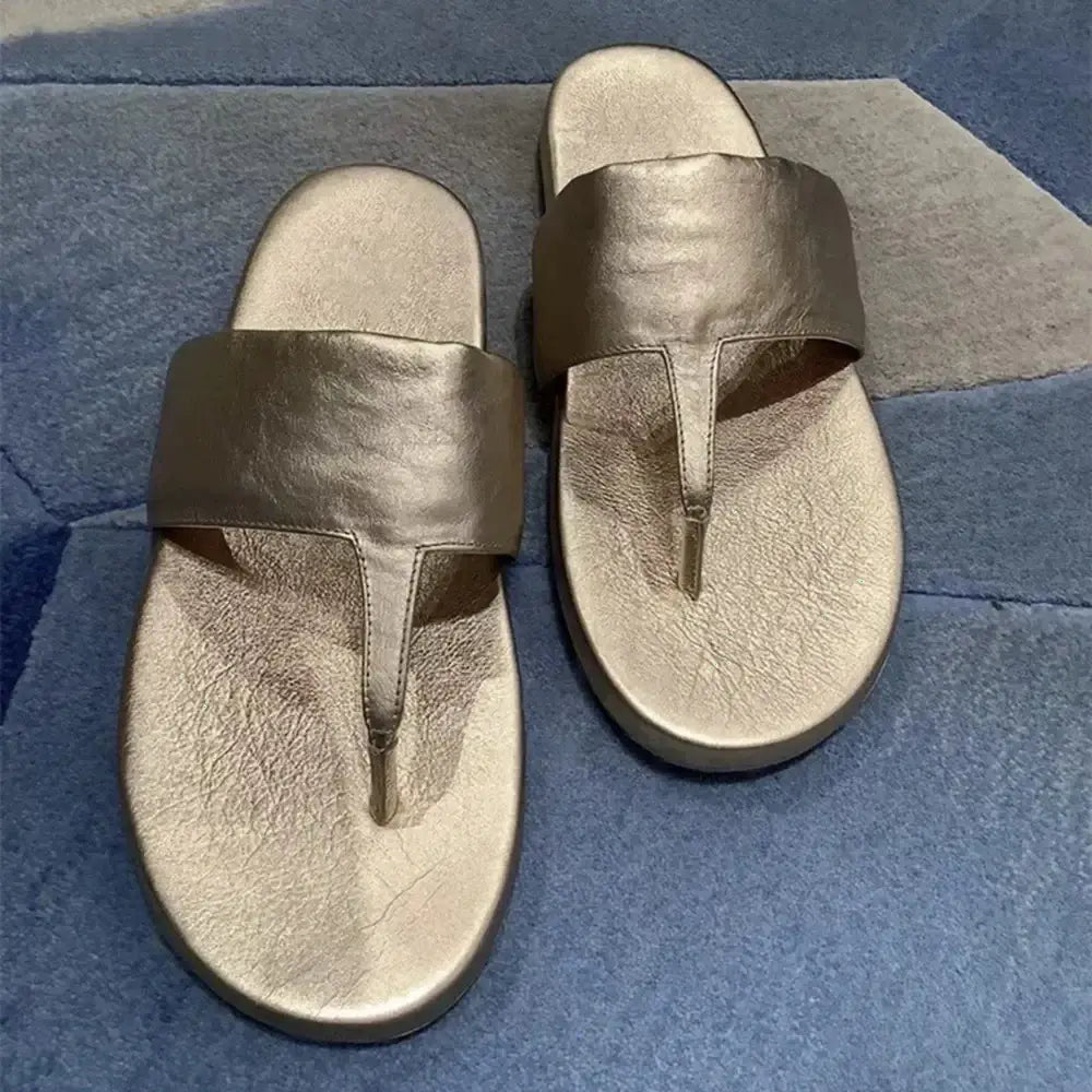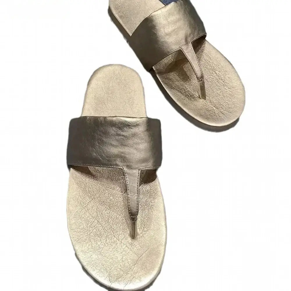 Women's Gold Retro Clip-toe Flat Shallow Pull-on Roman Flip-flops Sandals