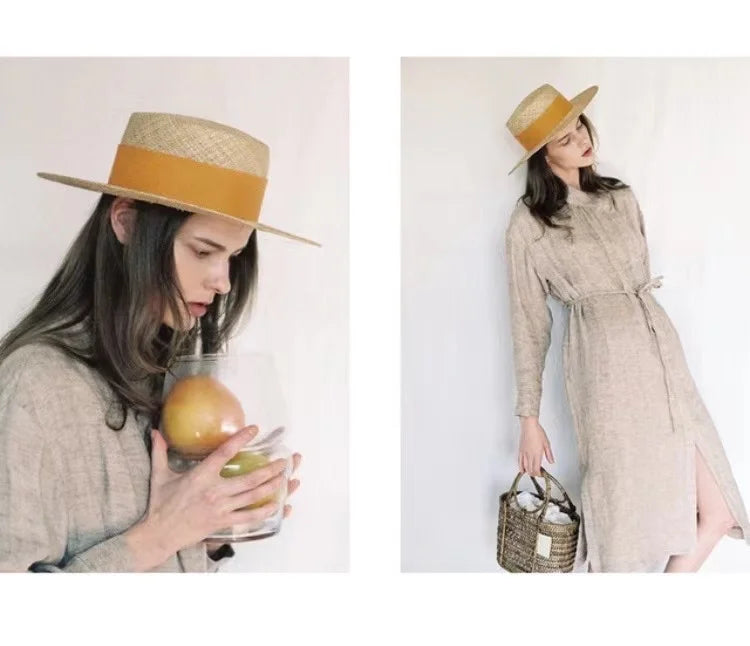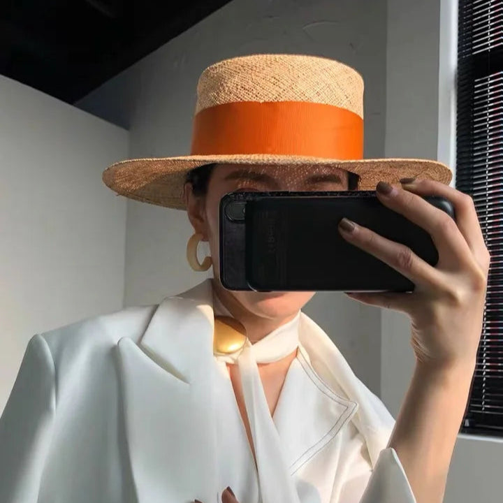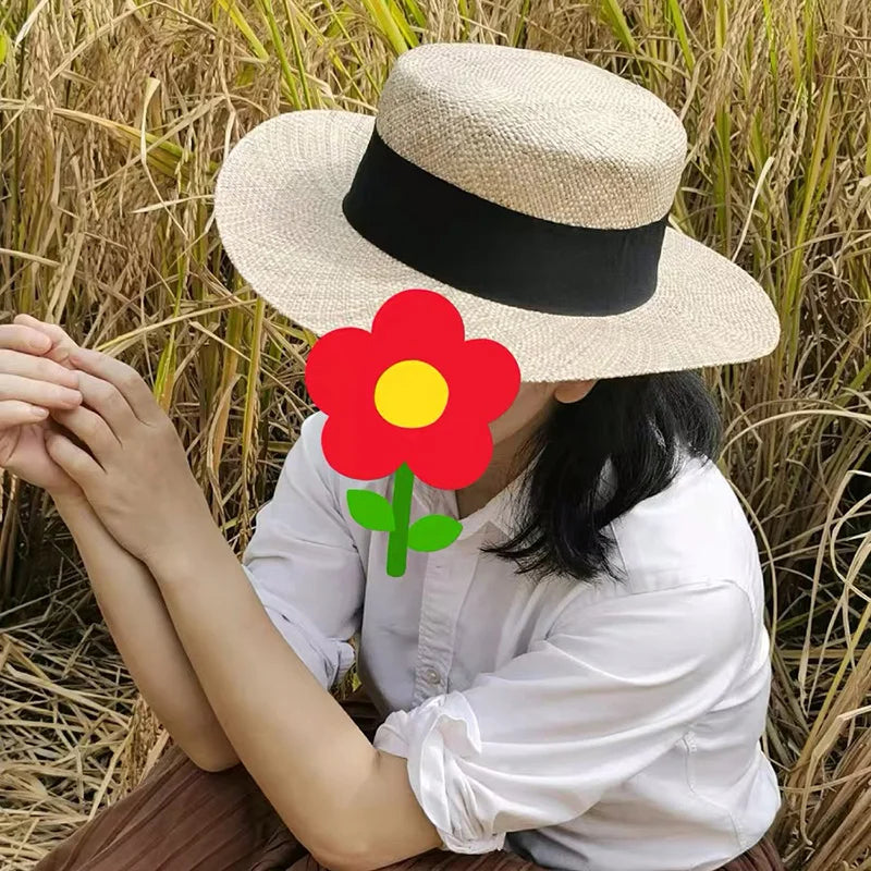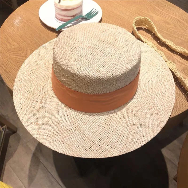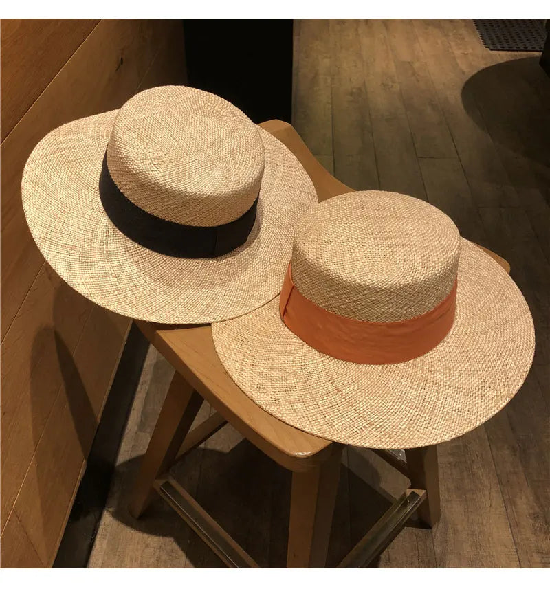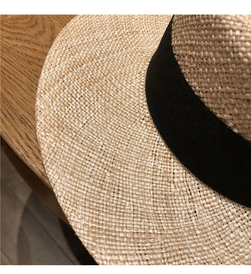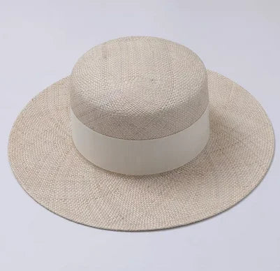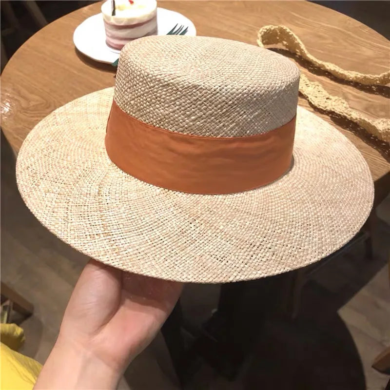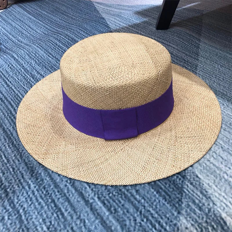 Handmade Philippine Treasure Grass Flat Top Straw Fedora Sun Hat for Women