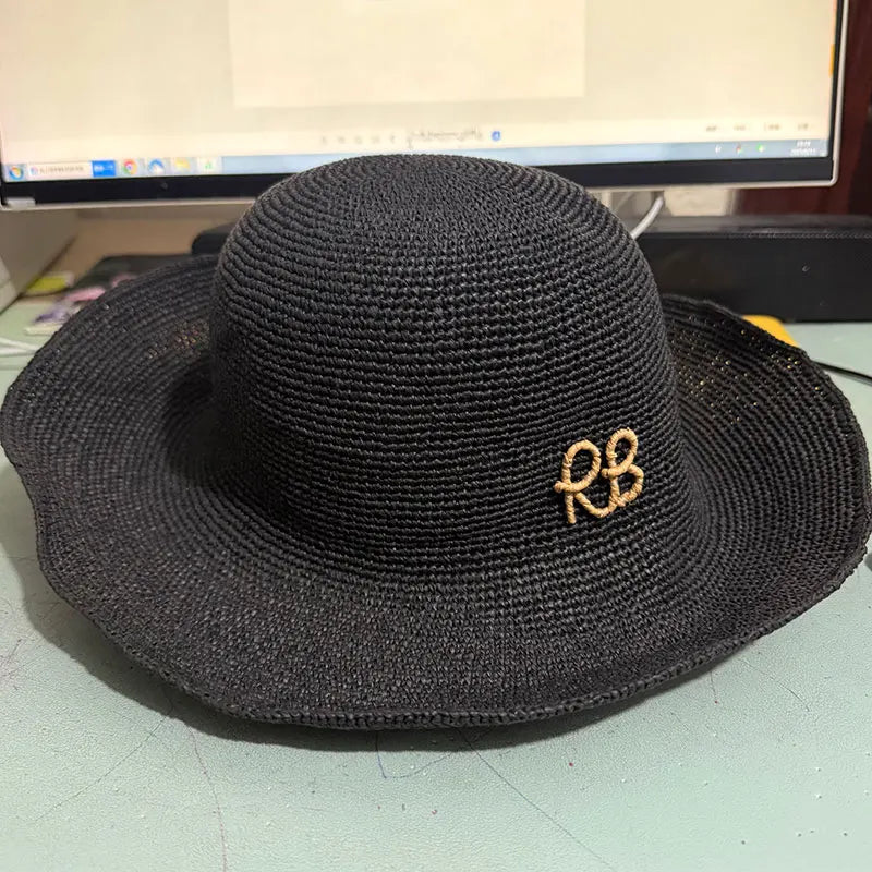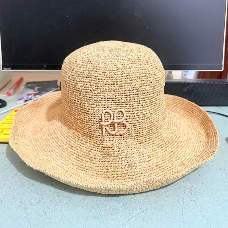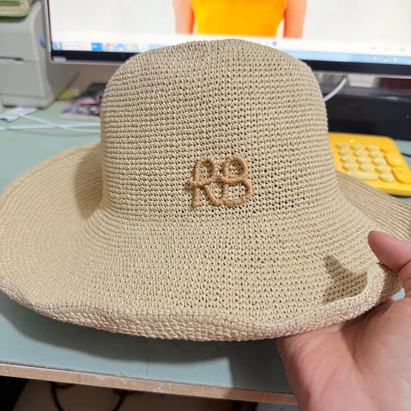 Summer Beach Style Paper Straw Large Brim Foldable Letter Decor Sun Hat For Women