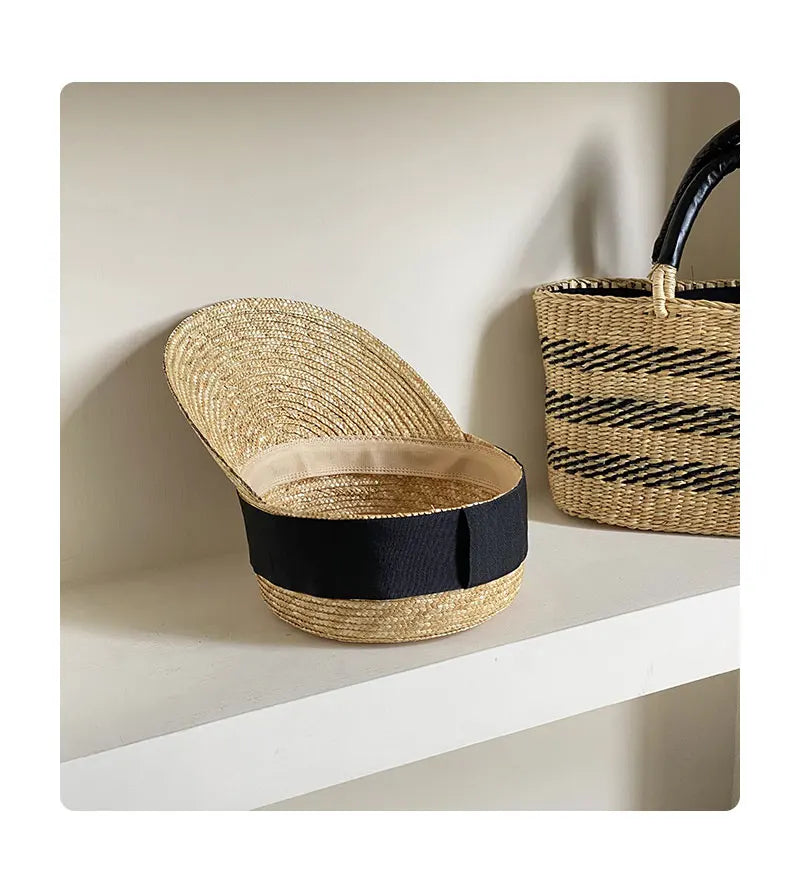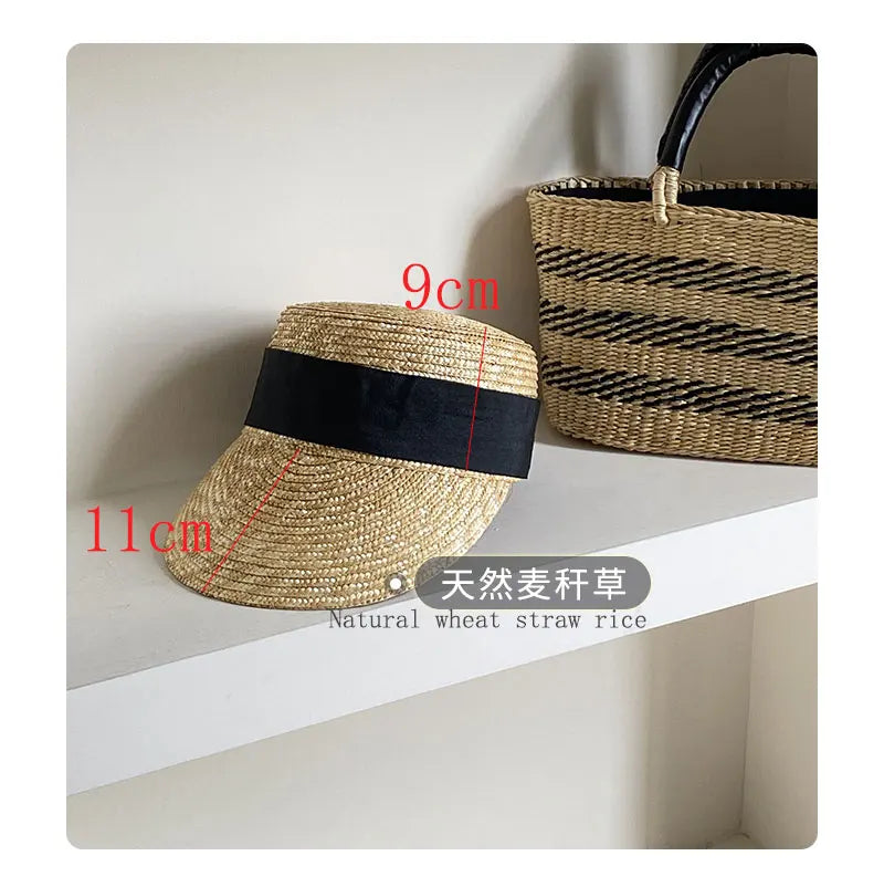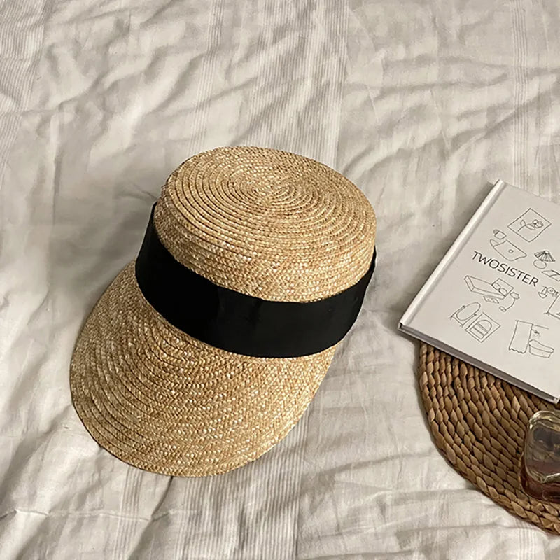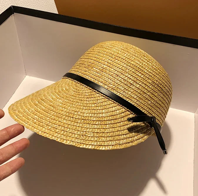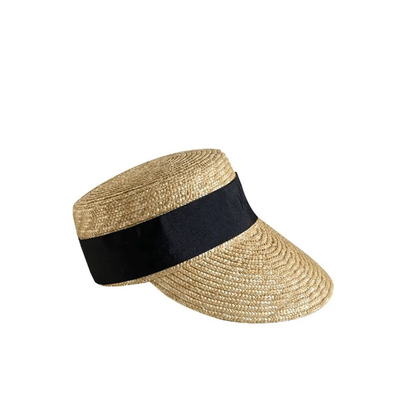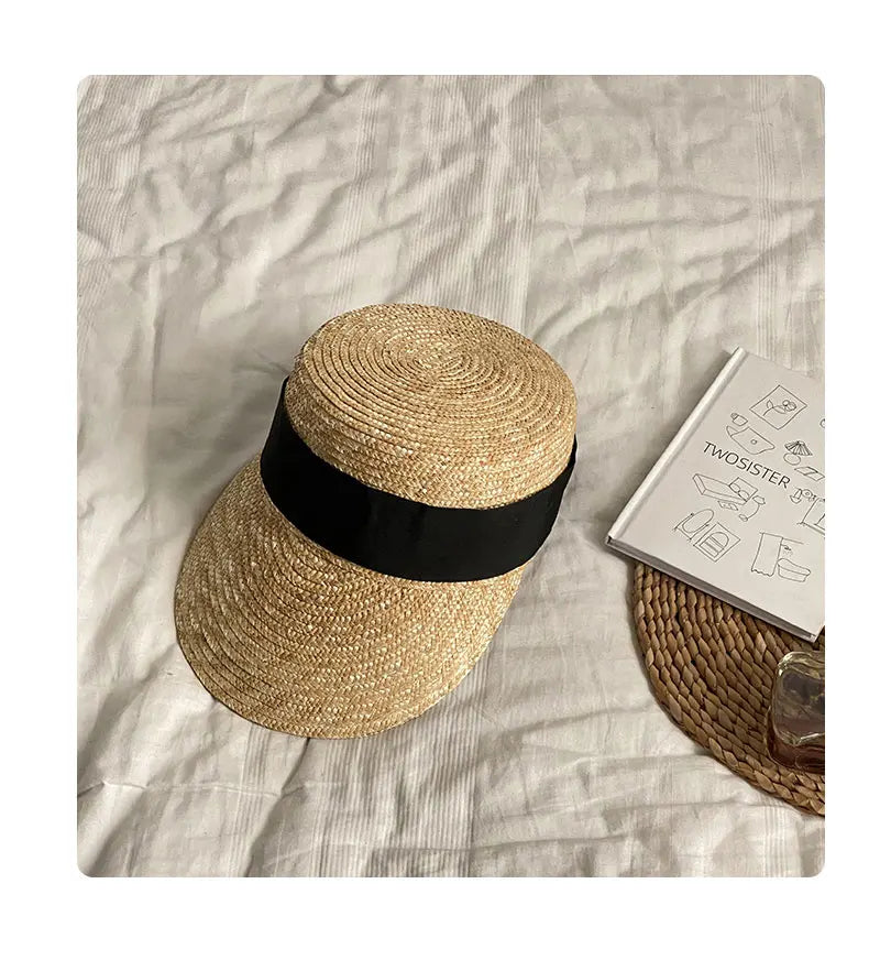 Summer Beach Style Visor Black Strap Straw Sun Hats for Women